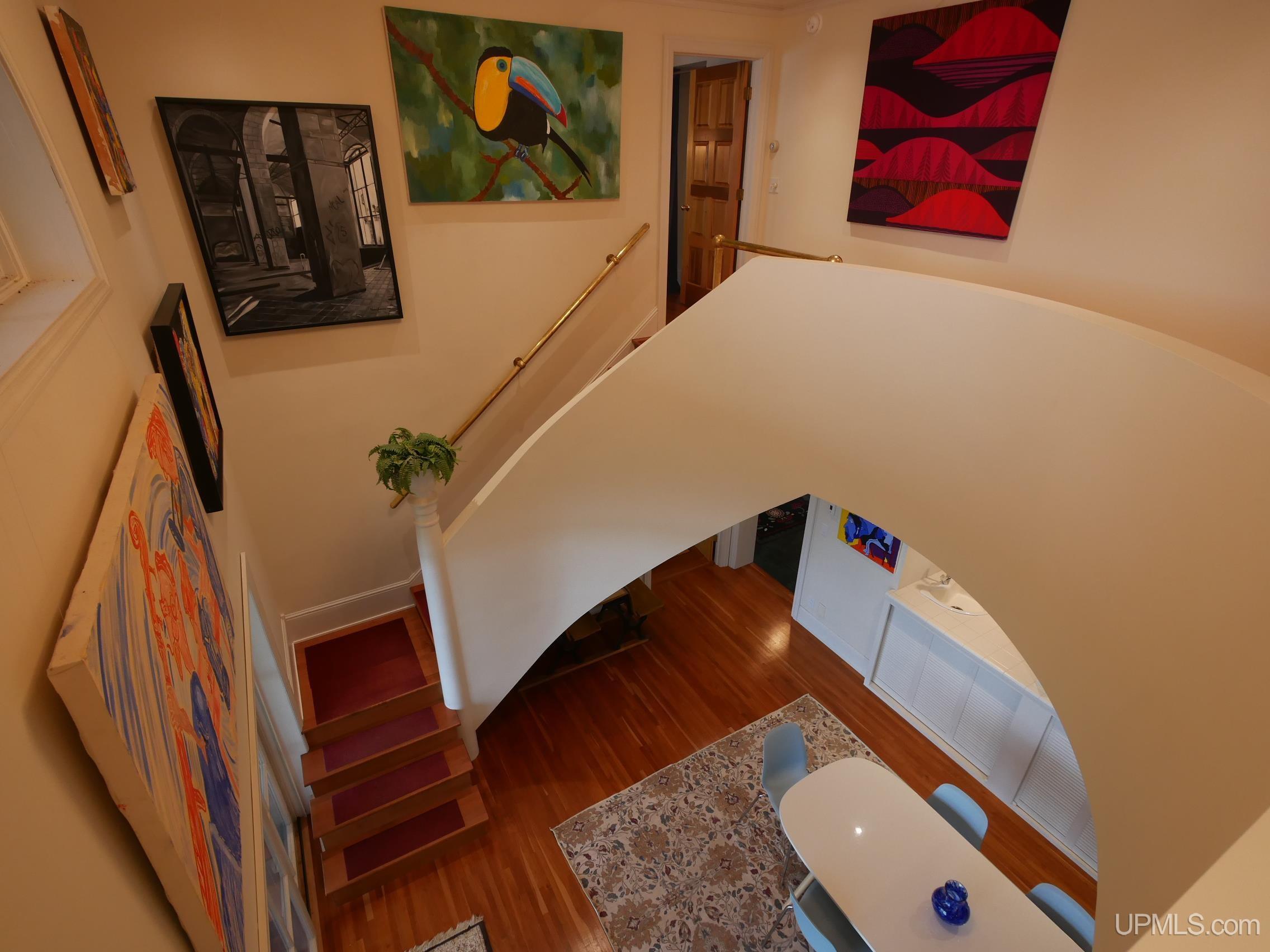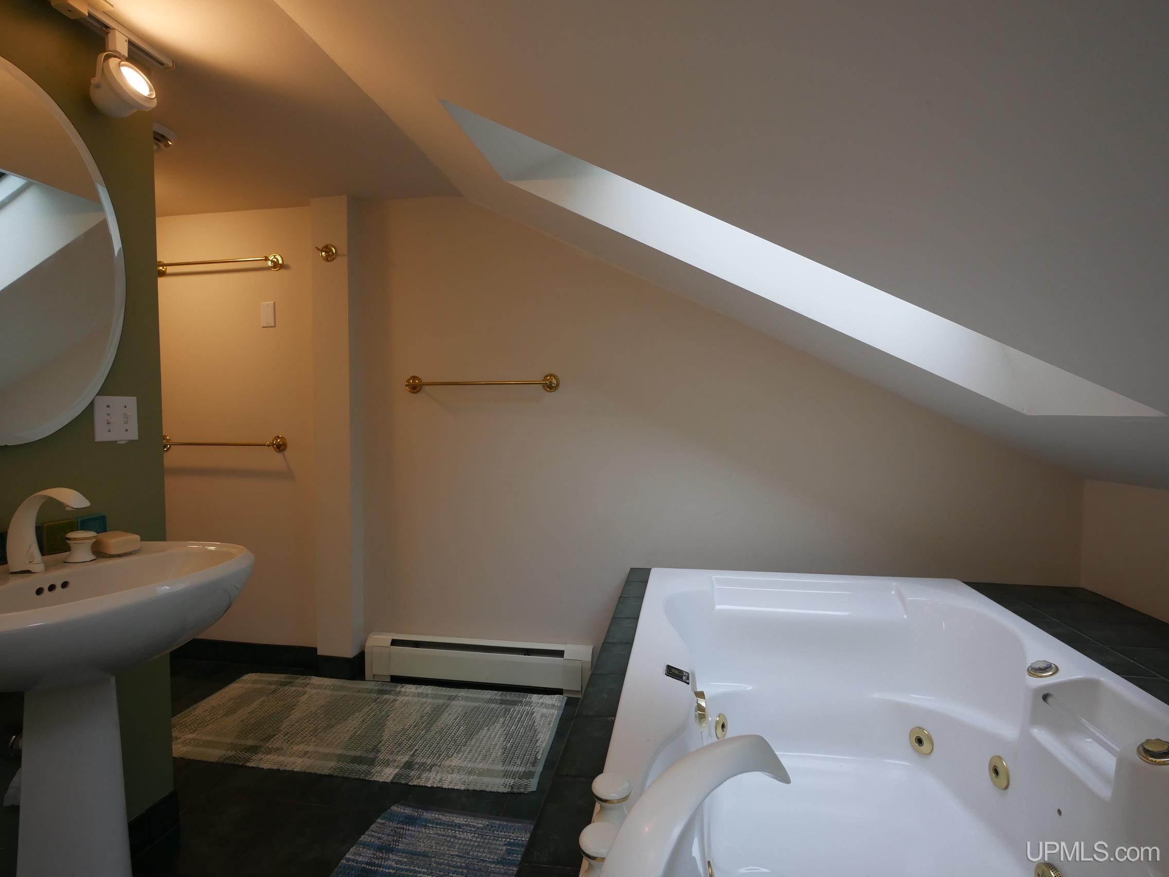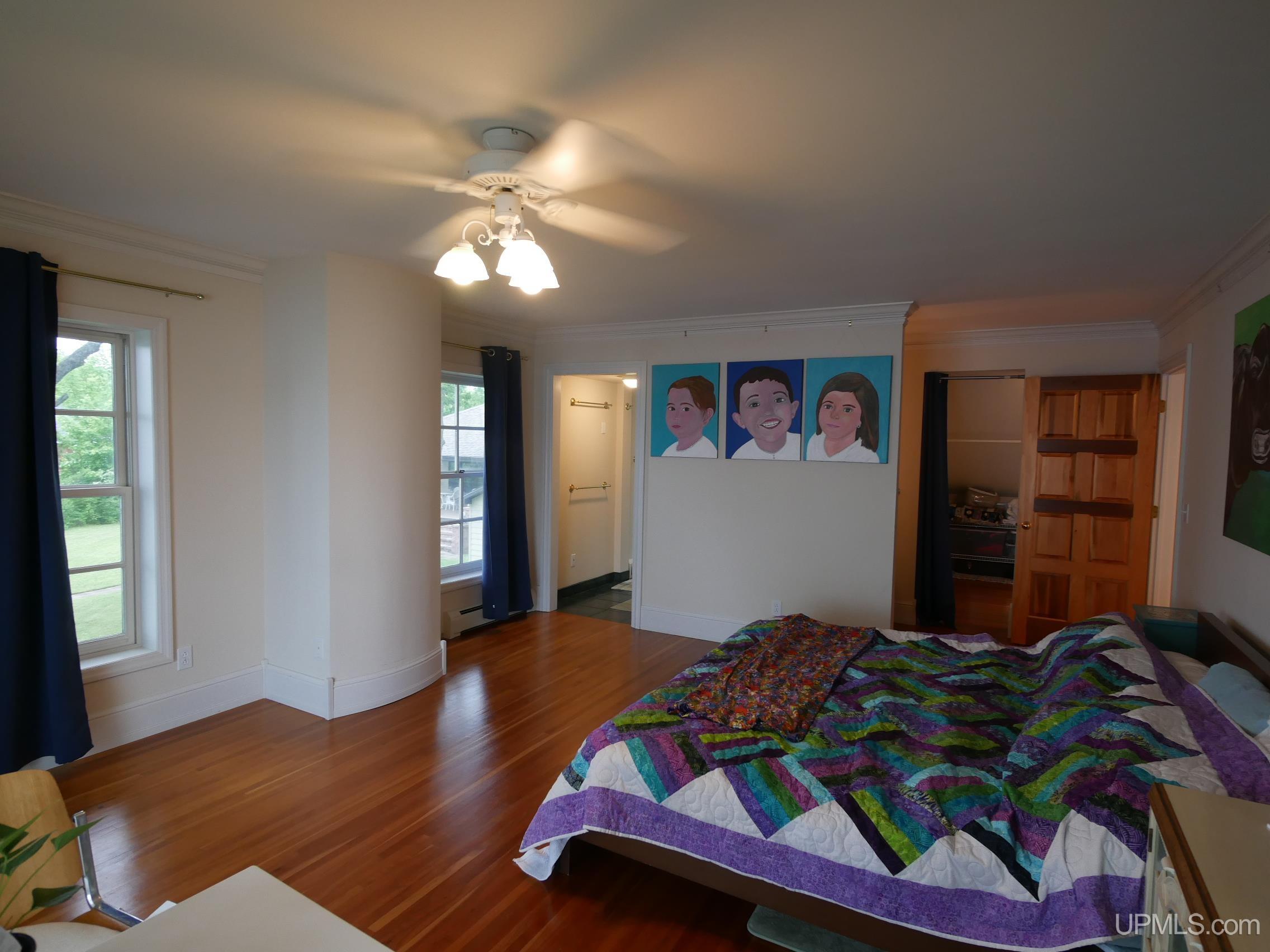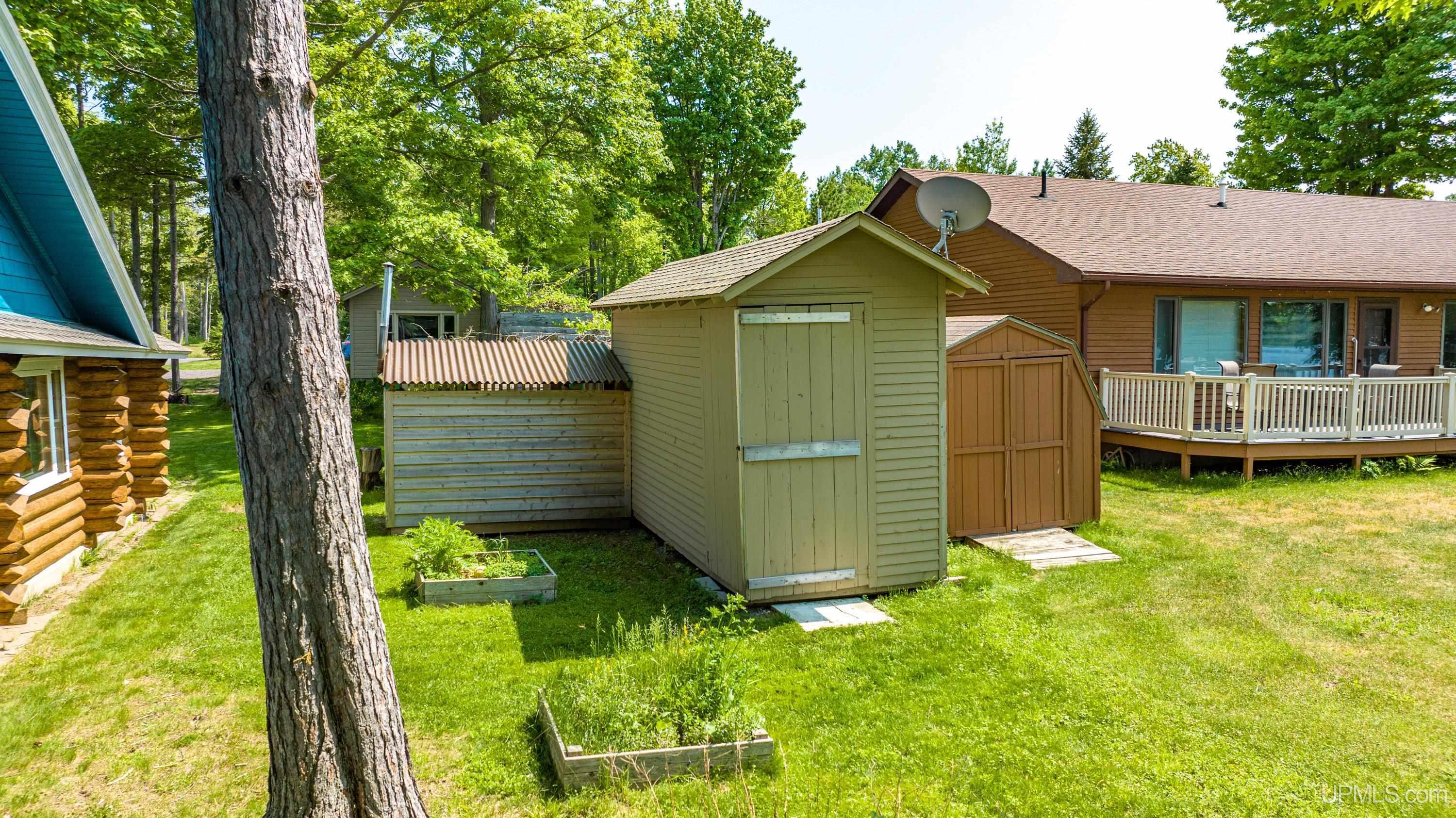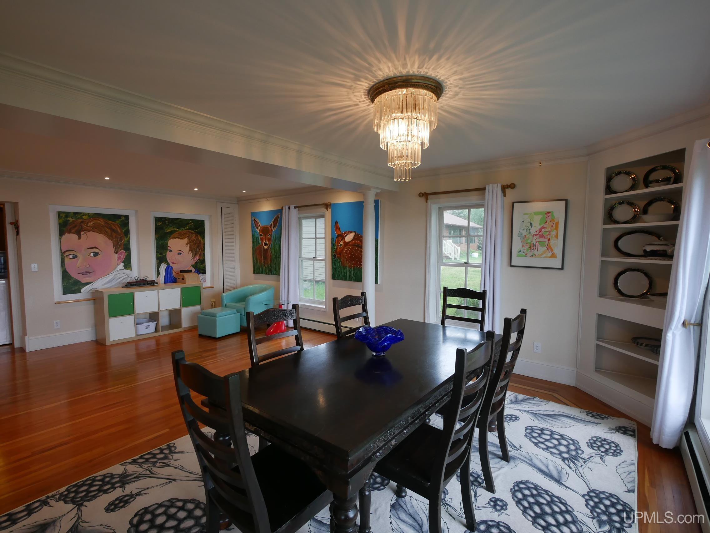This property presents an exceptional fusion of contemporary design and classic log cabin architecture, set on approximately 100 feet of Portage Lake waterfront at Half Moon Beach‹“Chassell Bay, just 9/- miles from Houghton and Michigan Tech University. The main floor showcases the original log cabin structure integrated with a modern kitchen and comfortable sitting area featuring a wood-burning fireplace. The kitchen seamlessly connects to a modern addition, offering abundant natural light and picturesque water views. The flexible open floor plan is ideal for living and dining arrangements, facilitating both relaxation and entertaining. Additional main level amenities include a formal living room with a white marble fireplace, office, foyer, three-quarter bath, sunroom, and laundry area. A curved, open staircase leads to the upper level, where the primary bedroom suite boasts a full bath, supplemental vanity, and spacious closet. The second bedroom includes a half bath, while the third shares a full bathroom; two bedrooms provide direct balcony access with tranquil lake vistas. Some of the notable finishes throughout the home consist of granite countertops, solid cherry flooring bordered with Birdseye maple and walnut, crown and picture molding, and extensive water views. Outdoor amenities feature lakeside decking and a cedar sauna (2016). Positioned near the road is a detached 2 car garage (constructed in 2019) with workshop potential and loft storage, complemented by a tandem two-car garage, garden shed, and additional storage building for recreational equipment. The owners have meticulously maintained the residence, including restoration and sealing of logs and exterior paint on the addition in 2019. The property is located on a quiet street with direct access to the trail from Chassell to Houghton. ---- NOTICE: Information is believed accurate but not guaranteed. Buyers must inspect & verify all property details. Buyers accept all risks of inaccuracies, including but not limited to, acreage, lot size/location, square footage, & utility availability/costs. Real estate taxes will be reassessed & may change significantly after sale; do not assume your tax bills will match the sellers. Taxes are not zero. GIS, apps and plat book pages/maps are not surveys. Audio/video recording may occur on the property; entry implies consent to recording. Buyer pre-approval or proof of funds documentation to be provided upon request. -----OFFERS: Please allow 72 hours for a response. Seller may set or change offer deadlines at any time with or without notice.