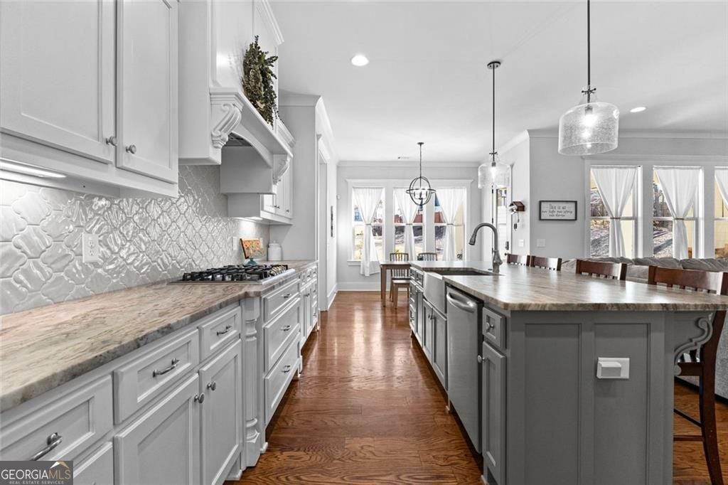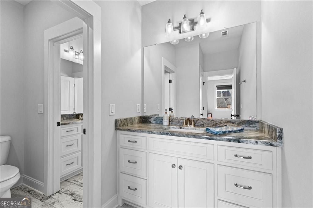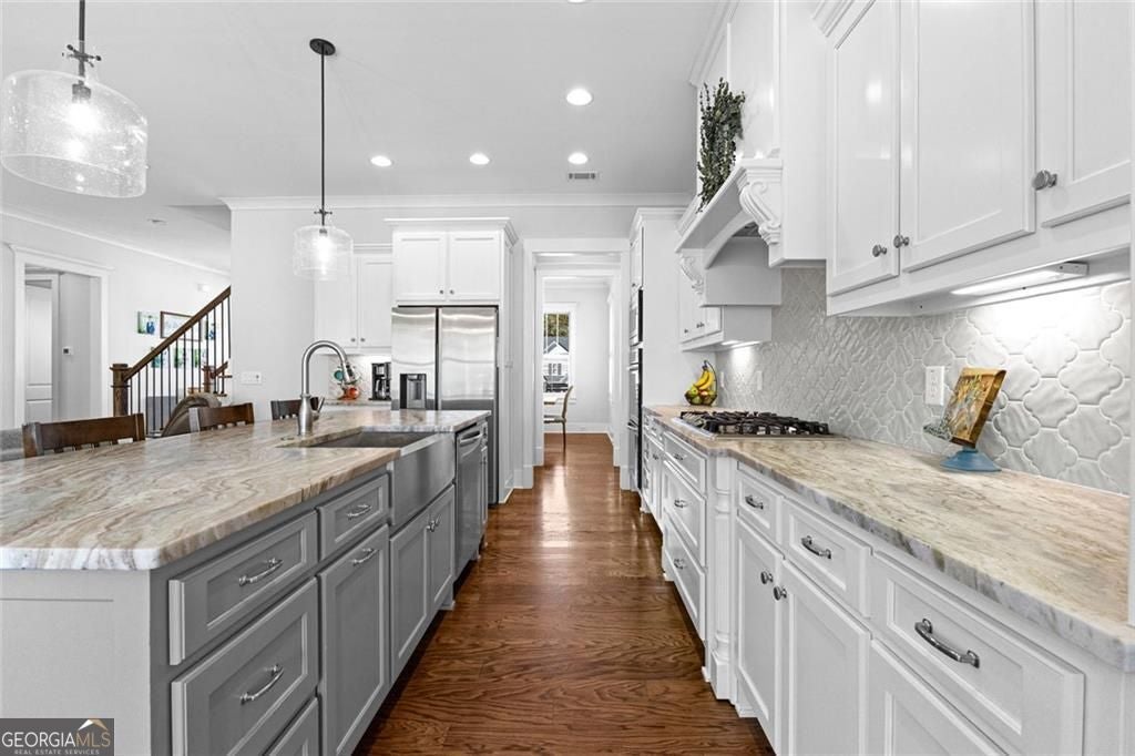 Live the Woodward lifestyle: 1 block from Barrett Park for daily play and fields, about 3 minutes to Woodward Academy Main Campus, and only 8 minutes to the airport for effortless travel. From the street, the homes wraparound porch, cedar columns, and iron rail detail set a refined tone. Inside, 10-foot ceilings and a fireside great room connect seamlessly to a flex dining/home office and a chefs kitchen with granite island, stainless appliances, and a barn-door pantry. The adjoining breakfast room opens to a grilling porch with storage.The main-level bedroom features two closets and a spa bath with a soaking tub. Upstairs, the second primary offers a massive private sitting area, custom his-and-hers closets, and a magazine-worthy bath with jetted tub, oversized seamless-glass shower with river-rock floor and custom niches, and a marble double vanity. Youll also find three additional bedrooms, two full baths, a loft, and multiple laundry location optionschoose the setup that fits your routine.Architect plans for an oversized great/keeping room are included if you crave even more living space. College Park currently limits any new construction to 3,800 sq feet but this approved option has city approval and pushes sq footage to/above 5,000 sq feet. Minutes to College Park Main Street, major employers, and interstatesthis is a polished, move-in-ready home in the heart of a coveted private-school corridor.