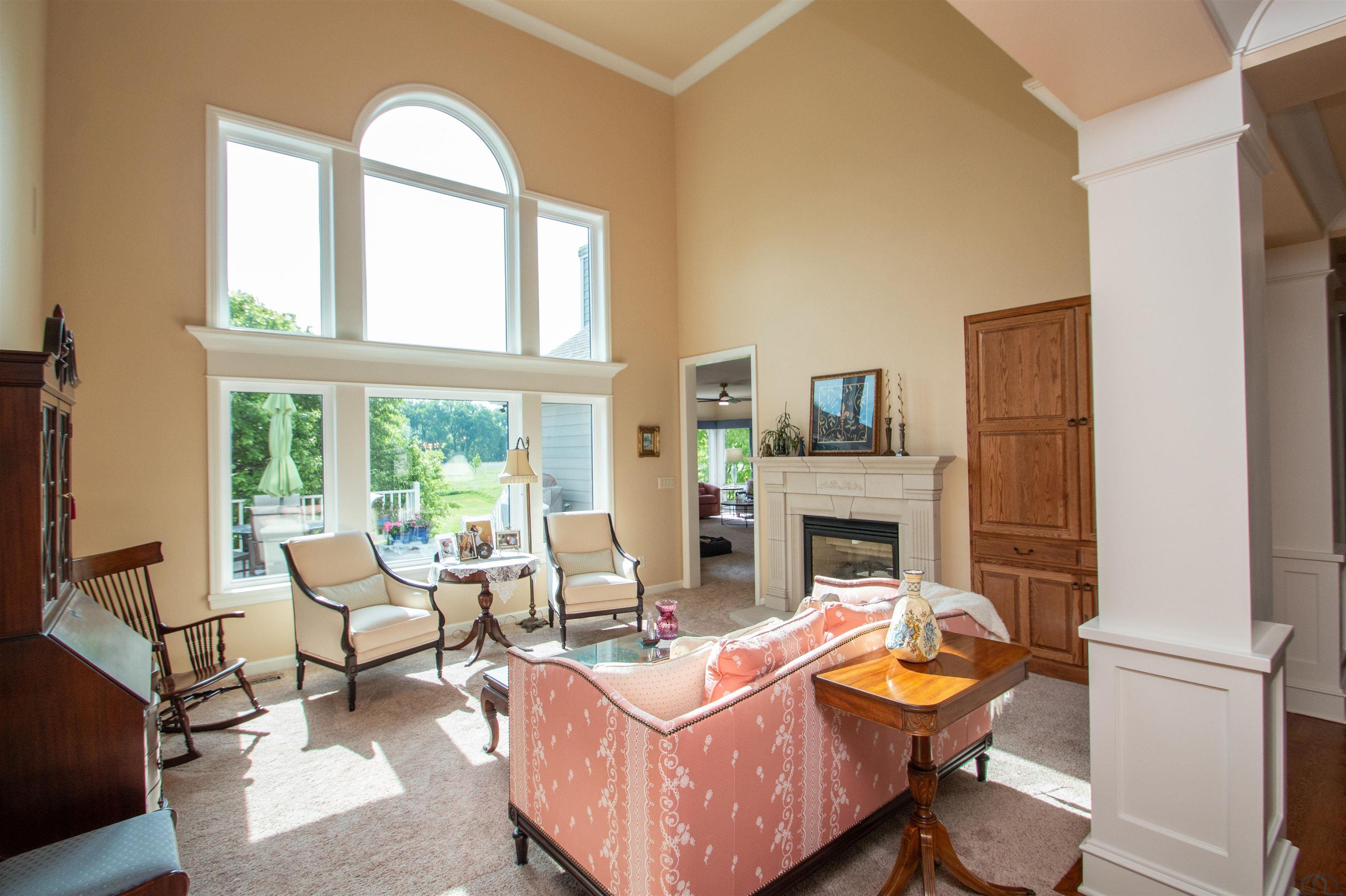 Welcome to this 1.5 story home with 5 bedrooms, 5 bathrooms, formal and casual living areas, an oversized 4 car garage, fresh landscaping, a huge deck all sitting on a 1.6 acre lot on the Preserve. A bubbling rocks water feature is in landscaping by front door. Double entry doors welcome you to 2 story open foyer with 2 coat closets, wood floor & staircase. Off foyer is formal dining with butlers pantry nearby. Stunning 2 story windows in the living room with 18 ft ceiling and gas FP. A casual family room on main has a gas FP, built ins, door to deck and corner windows. The eatin kitchen has oak cabinets, island, pantry, wood floor, desk area, gas stove, dbl ovens and 2 sinks. A second staircase upstairs is nearby. Coming in from the garage is a convenient 8x5 drop zone and 12x7 laundry room. The master bedroom has carpet & door to deck and the bathroom has heated floor, large tile shower, whirlpool tub, dbl vanity & 2 WIC. Upstairs there is a 10x14 loft area, 2 bedrooms each with a WIC, vanity and access to a shared 12 x 10 full bathroom (which has door to hall as well) and a 3rd bedroom also with WIC. The walkout lower level has lots of spaces to entertain or relax. The first family room has carpet, a gas FP, built ins, and daylight windows. This is open to the wet bar area with tile floor, cabinets, mirrored backsplash, granite counters, bar sink, DW and a nearby frig. A second family room has carpet. Walkout door to the patio. The current theater room could also be used as an office (projector included). The 5th bedroom has carpet, egress, and dbl closet and has a door to the 9x10 3/4 bathroom which also has door to hall. The current workout room has carpet, dbl closet and sauna (this room could be a BR). A 5x5 half bath completes this level. Relax by the new fire pit. Sprinkler covers 2/3 of yard. New deck 2020. 2 new water heaters 2021. One new Lennox furnace & 2 new AC units. Pet fence installed. Ask for Extra Feature sheet for all the recent improvements.