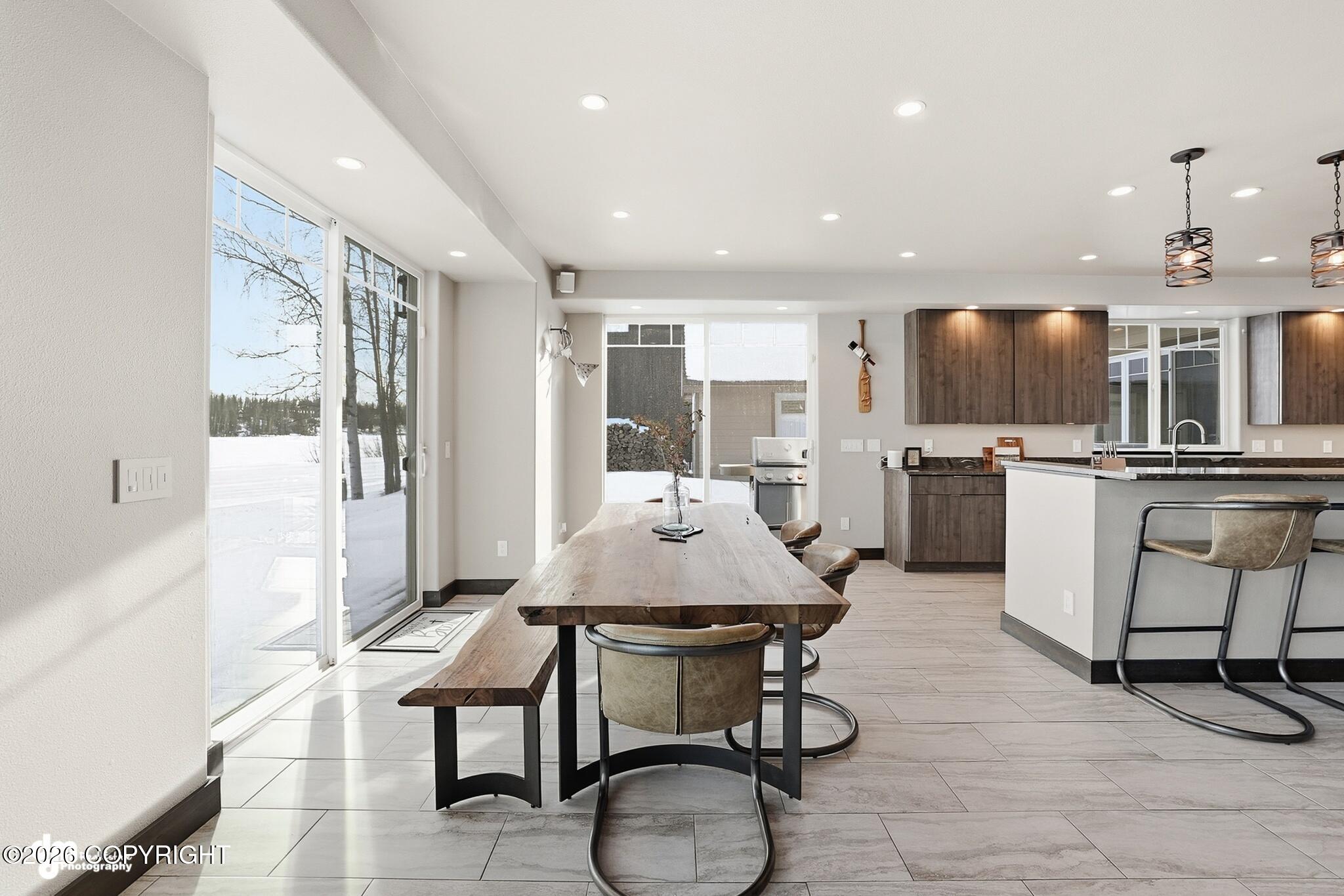 Experience luxury lakefront living on the shores of Longmere Lake in this 100% custom-built home offering 5,676 SF with 5 bedrooms, 6 baths-including 3 private ensuites. This home blends elevated comfort with unforgettable views. The primary suite on the main level is a true retreat, showcasing killer views & a spa-inspired bath complete with walk-in double shower, soaking tub & walk-in closet. The open-concept living, dining & kitchen areas are flooded with natural light & framed by breathtaking lake views. The living room boasts 24' vaulted ceilings, custom granite stairs with chiseled edges & a stunning full-height stone fireplace that anchors the space with warmth and style. The chef's kitchen is equally remarkable, featuring high-end features, bar top seating, 2 dishwashers, a side-by-side full freezer & refrigerator unit, an induction cooktop, and an oversized walk-in pantry. Enjoy over 1,400 SF of deck with a hot tub, plus a 960 SF private dock for ultimate lakefront living. Additional features include a main-floor office with French doors, spacious great room with wet bar, two laundry rooms, attached 4-car garage & a detached 1,320 SF shop with 12' x14' overhead doors. Exceptional craftsmanship, storage galore & premier lakefront lifestyle - this home is truly special!