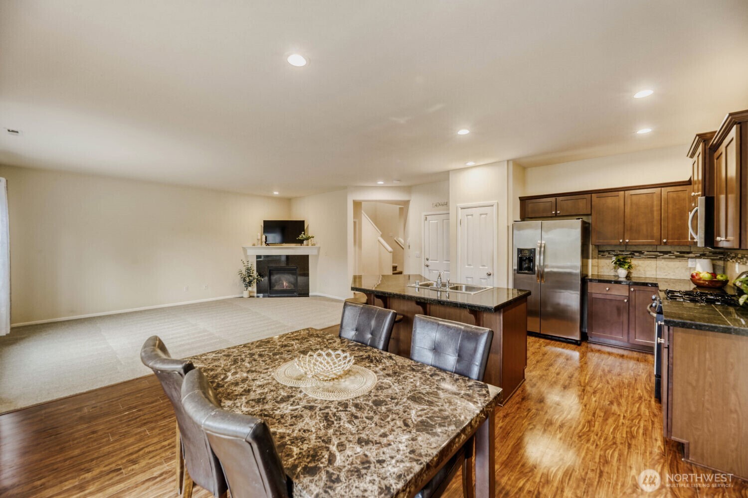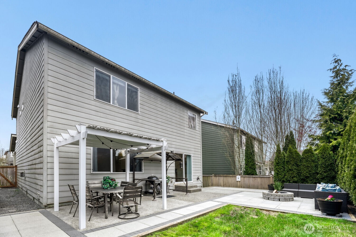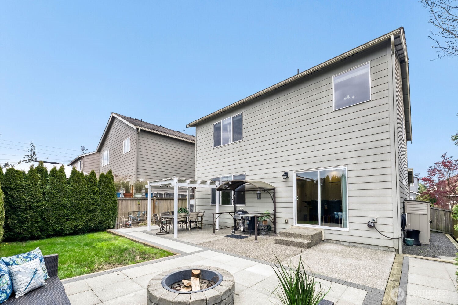 Welcome to this beautifully maintained 2013 home in desirable Lake Stevens, offering just over 2,000 square feet of comfortable and functional living space. This 3-bedroom, 2.5-bath home features an open-concept layout that seamlessly connects the living room, dining area, and kitchen—perfect for both everyday living and entertaining. The inviting living room is anchored by a cozy gas fireplace, creating a warm and welcoming atmosphere. The kitchen is designed with both style and practicality in mind, featuring granite tile countertops, a spacious island with seating, and a generous pantry for all your storage needs. Upstairs, the oversized primary suite is a true retreat, complete with a luxurious 5-piece en suite bathroom and a large walk-in closet. Two additional bedrooms are impressively sized, along with a convenient office nook for remote work or study.Additional highlights include a designated laundry area with extra storage space and a fully finished 2-car garage equipped with built-in storage and a workbench. Step outside to discover a truly special backyard—featuring an extended patio, privacy landscaping, a custom fire pit, and a covered BBQ station—perfect for relaxing or entertaining year-round.Ideally located near the Lake Stevens trail system, and just minutes from shopping, dining, COSTCO and everyday conveniences, with easy access to I-5 and Highway 9 for a smooth commute.