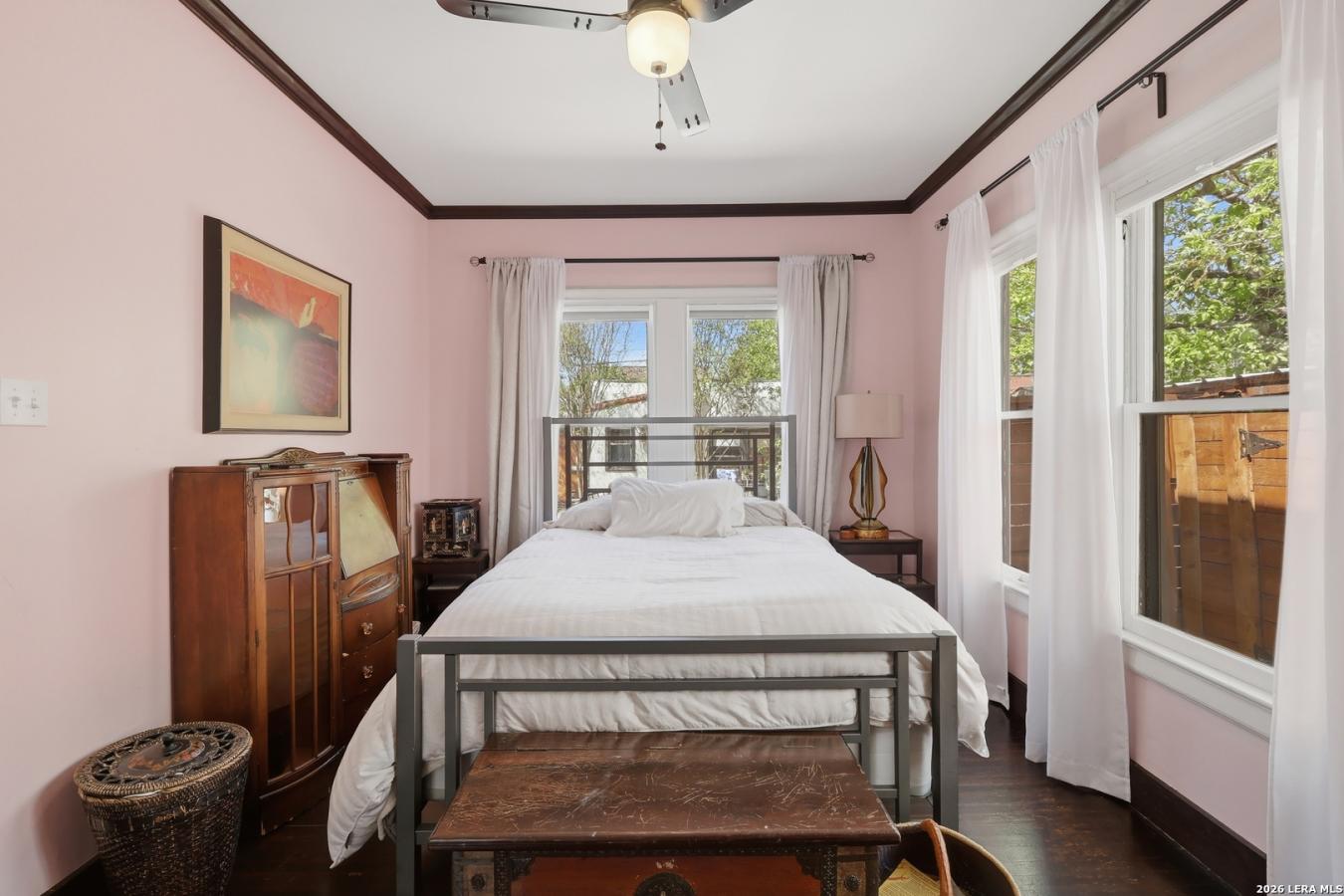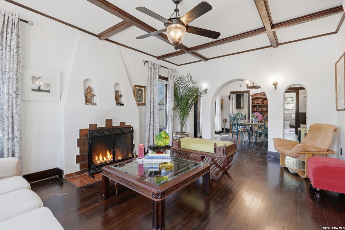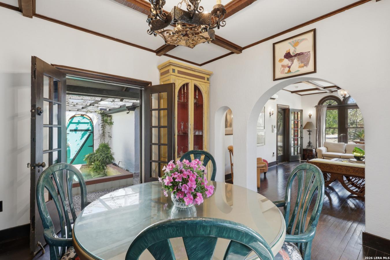 A Spanish Eclectic treasure built around a private central courtyard and koi pond, 315 Club Drive is the kind of home that stops you at the threshold. Handcrafted stucco arches and mission tile set the tone as you enter the century-old property, which offers two bedrooms, two full baths, and an office/flex room or third bedroom adjoining the primary suite.
