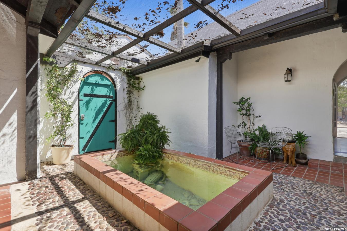 A Spanish Eclectic treasure built around a private central courtyard and koi pond, 315 Club Drive is the kind of home that stops you at the threshold. Handcrafted stucco arches and mission tile set the tone as you enter the century-old property, which offers two bedrooms, two full baths, and an office/flex room or third bedroom adjoining the primary suite. The main house is built around the private courtyard, where the tranquility of the koi pond slows you down and makes you feel as if the rest of the world is miles away. Step into the backyard, and a Keith Zars pool brings a contemporary resort sensibility to the grounds in perfect harmony with the homes character. The carriage house elevates the property further still, offering a kitchenette, full bath, and laundry-a private guest suite or artists retreat with complete independence from the main residence. Beyond the gate lies one of San Antonios most beloved historic neighborhoods, the Monticello Park Historic District, where wide, tree-lined streets and a genuine sense of community have drawn mayors, physicians, artists, and professionals since the 1920s. Minutes from The Pearl, downtown, and Woodlawn Lake Park-yet with a stillness and charm that feels worlds away from ordinary. Rooted in the Spanish colonial tradition of turning life inward-toward beauty, shade, and stillness-the inside/outside architecture of this home speaks a language that simply cannot be replicated in new construction. Properties like this rarely come to market. Fewer still have been loved this well. 301 Club isnt simply a house-its a lifestyle, a legacy, and an invitation to live beautifully. SQUARE FOOTAGE: 1,367 MAIN HOUSE 323 CASITA