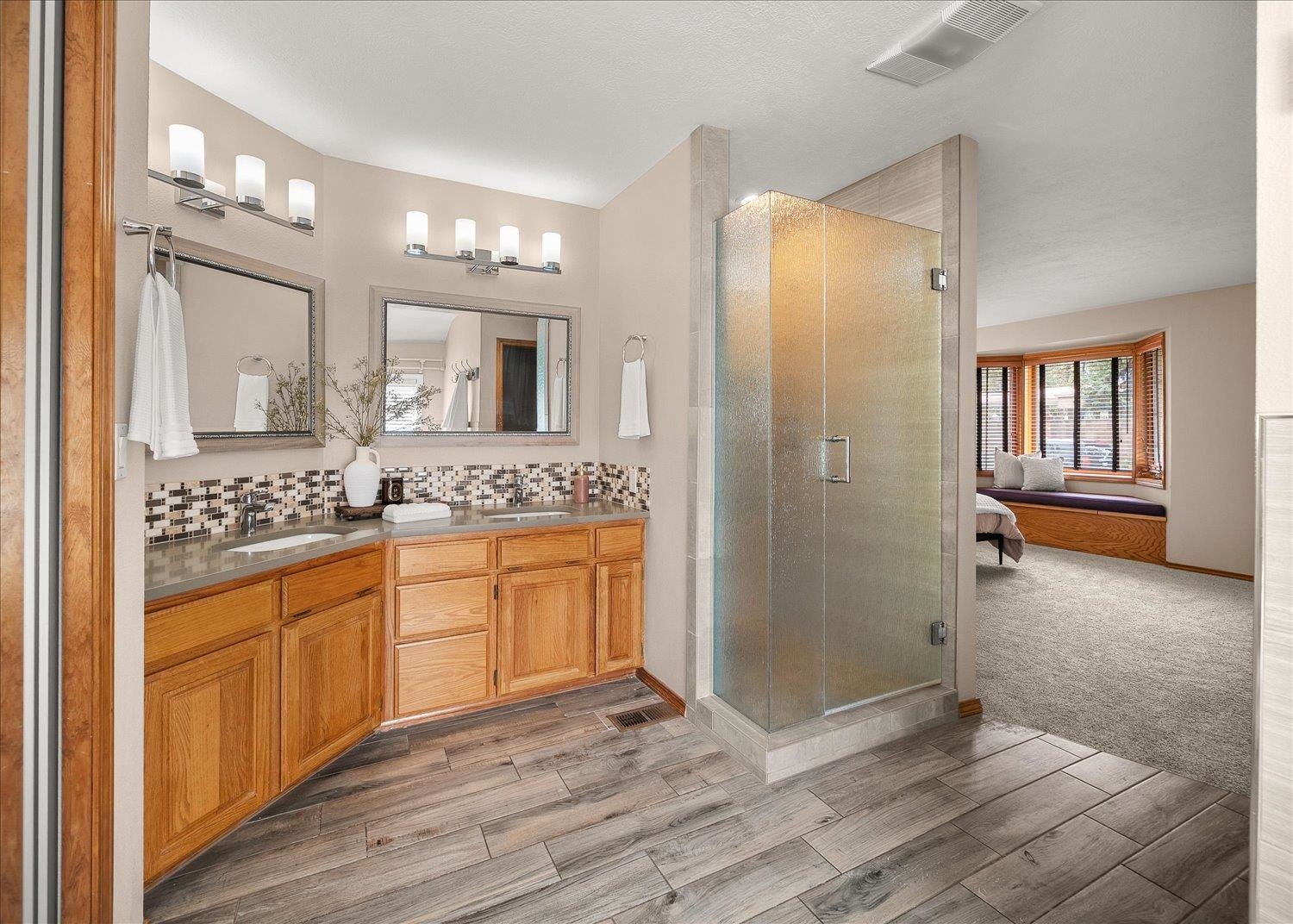 Beautiful High Drive Rancher located on a private 4-home lane that includes an easement path to Manito CC! Enjoy main-floor living featuring soaring cathedral ceilings, newly installed carpet, and formal living and dining area with wet bar.