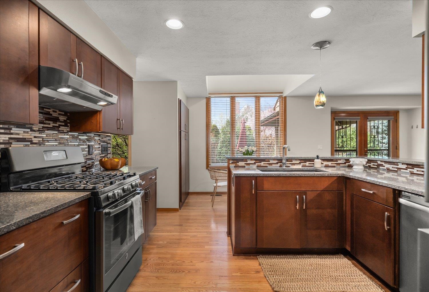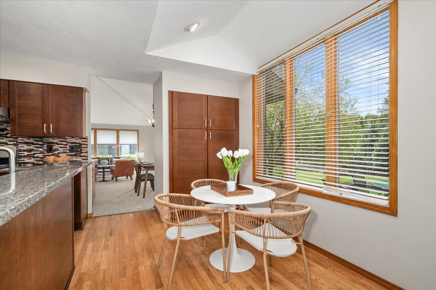 Beautiful High Drive Rancher located on a private 4-home lane that includes an easement path to Manito CC! Enjoy main-floor living featuring soaring cathedral ceilings, newly installed carpet, and formal living and dining area with wet bar. Kitchen features double ovens, gas cooktop range, eating bar, and informal eating area open to the main-floor family room with a gas fireplace and built-in bookshelves. The spacious primary suite features double sinks, separate shower area, and soaking tub. Main floor utilities. Retreat to the covered deck to relax or just a short distance to Rocket Market, Manito County Club, the bluff, and more! HOA covers lawn mowing and street snow removal.