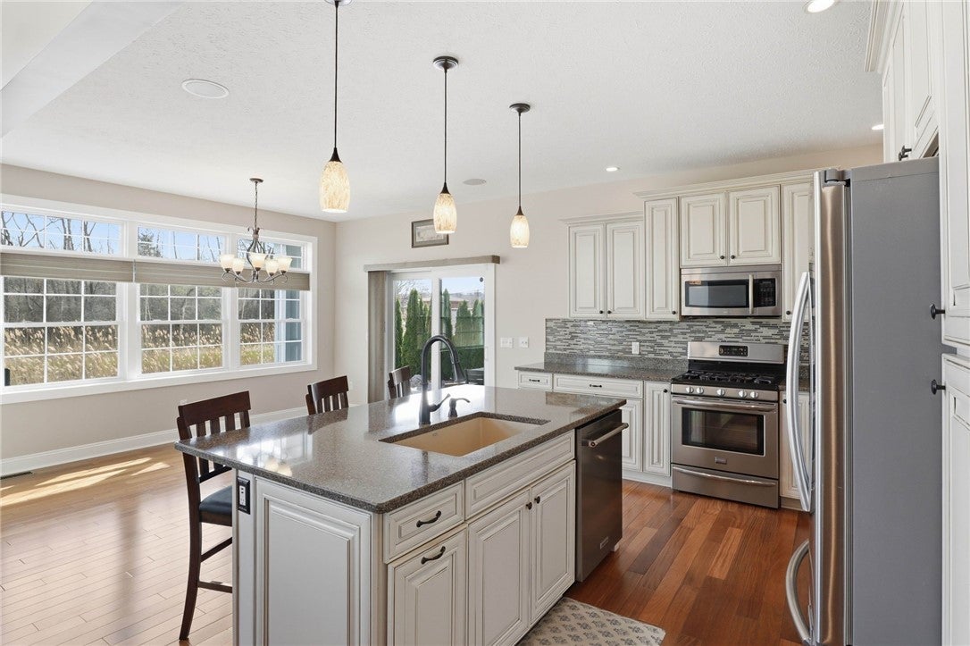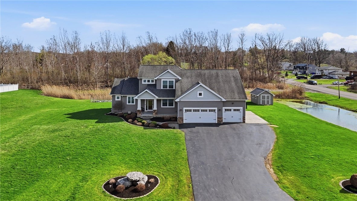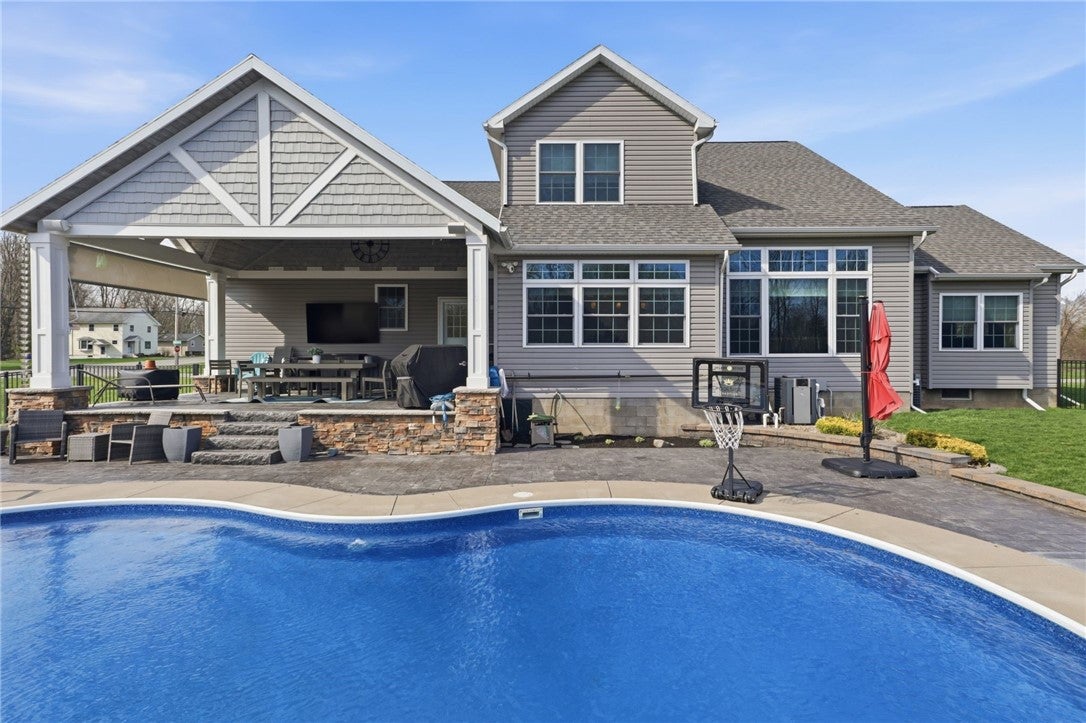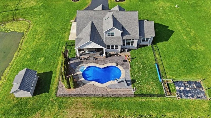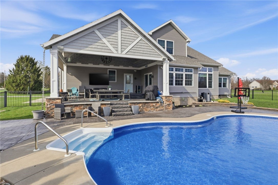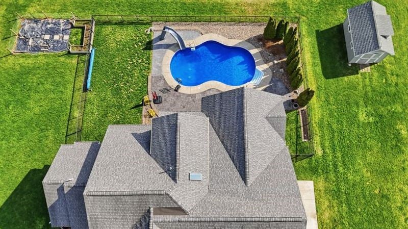 Built in 2013, this beautifully designed 4-bedroom, 4-bath home offers 2,975 sq ft of thoughtfully planned living space and a 4-car garage. The main level features a spacious primary suite, convenient first-floor laundry, an additional full bath, and a private office, perfect for today’s flexible lifestyle. A stunning foyer welcomes you in, complete with built-in organization, while large windows flood the living room with natural light. The kitchen is a true showstopper, boasting a large island and generous dining area with ample seating options for entertaining. Upstairs, you’ll find three spacious bedrooms plus a versatile bonus room. The finished basement adds even more living space, including a full bath, ideal for guests or recreation. Step outside to your own backyard oasis, featuring a huge covered porch and an in-ground heated salt water pool, perfect for relaxing or hosting all summer long. Sq Ft (2,975) differs from tax records (2,225) due to additional bonus room/bedroom Delayed negotiations until 4/20 @ 12pm.