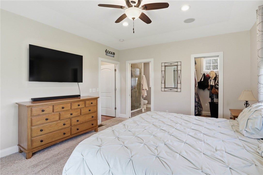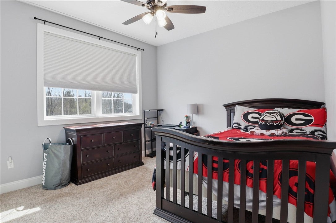 Like-new home in the sought-after Hawks Landing community! This stunning 4-bedroom, 3.5-bath residence offers the perfect blend of comfort, quality, and thoughtful design. The main level features a spacious primary suite with a large custom closet that conveniently connects to an oversized laundry/mud room. The open-concept living area includes a gorgeous kitchen with granite countertops, a large island, under-cabinet lighting, and a bright, inviting great room with soaring ceilings and a gas fireplace with remote control. A large window above the fireplace is beautifully fitted with a custom motorized shade. Upstairs, youll find a guest suite with a private bath and an additional bedroom that shares a combined full bathroom with an oversized bonus/media room that could serve as a fourth bedroom or flexible living space. Enjoy outdoor living on the screened back patio complete with a porch swing and custom sunshades, overlooking a level, fenced backyard with extensive professional landscaping. The yard showcases gorgeous plants and trees, retaining walls, a buried downspout system with pop-up drains, a stone-lined drainage ditch, low-voltage landscape lighting and a French drain directing water to a natural drainage area. Additional upgrades include temperature-controlled foundation vents. Enjoy added peace of mind with a whole-home generator. This home truly offers beauty, comfort, and security--inside and out. *Additional Professional Photos Coming Soon*