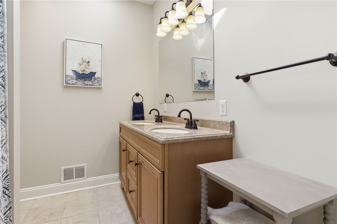 Beautifully Maintained 4 Bedroom Brick Home Featuring Updates Throughout! Gleaming hardwood flooring throughout the main level, spacious formal living room & dining room, updated gourmet center island kitchen boasting granite tops, white cabinetry, tile backsplash, stainless appliances open to the relaxing family room with access to the rear covered deck, main floor powder room & laundry room, the upper level features a primary suite complete with 2 huge walk-in closets & updated luxury bathroom featuring a free standing bathtub, double sink vanity & walk-in shower, 3 additional generous sized bedrooms & updated full hall bathroom complete the upper level, expansive finished walk-out lower level featuring a wet bar, fully equipped kitchen, full bathroom & storage, lush landscaping offering great curb appeal, 3 car attached garage, backyard oasis featuring a fenced-in rear yard with inground pool, hot tub, stone paved patio with firepit conveniently located to all amenities!