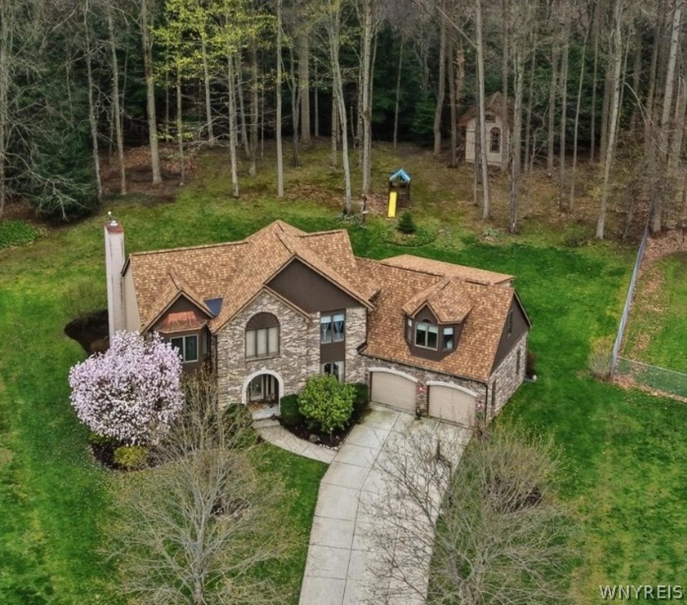 What makes 10 Tiffany Lane in Elma, NY, a luxury standout? A custom-built home with soaring ceilings, a recently updated designer kitchen, a spa-like en suite, and a private wooded backyard on a quiet cul-de-sac in Iroquois School District. Welcome to 10 Tiffany Lane in Elma, NY, where bold architecture meets refined living in one of the areas most desirable settings. Positioned on a quiet cul-de-sac and backing onto protected forever wild woods, this custom-built home offers a rare level of privacy, space, and presence that todays buyers are actively searching for. From the moment you step inside, the home makes an impression. A grand staircase, rich custom woodwork, and a bright, open foyer set the tone for a space that feels both elevated and inviting. The main living area is a true showpiece, featuring soaring vaulted ceilings, oversized windows that flood the home with natural light, and a stunning fireplace that anchors the room with warmth and elegance. At the heart of the home is the recently updated chefs kitchen, designed with both style and function in mind. Thoughtfully upgraded with quality finishes and a layout that flows effortlessly into dining and living spaces, this is where everyday living and entertaining come together seamlessly. The home offers four spacious bedrooms, including a luxury-inspired primary suite with a spa-like en suite that feels like a private retreat. Every detail throughout reflects exceptional care and pride of ownership. Step outside to a beautifully designed patio and a private backyard with no rear neighbors, just peaceful wooded views that create a quiet, escape-like setting. Additional highlights include a brand new roof, reinforcing the homes move-in-ready appeal. Located in the highly sought-after Iroquois School District, with a Lancaster address and the benefit of Elma taxes, this home offers both lifestyle and long-term value. This isnt just a home. Its a statement. And its one you need to see in person.
