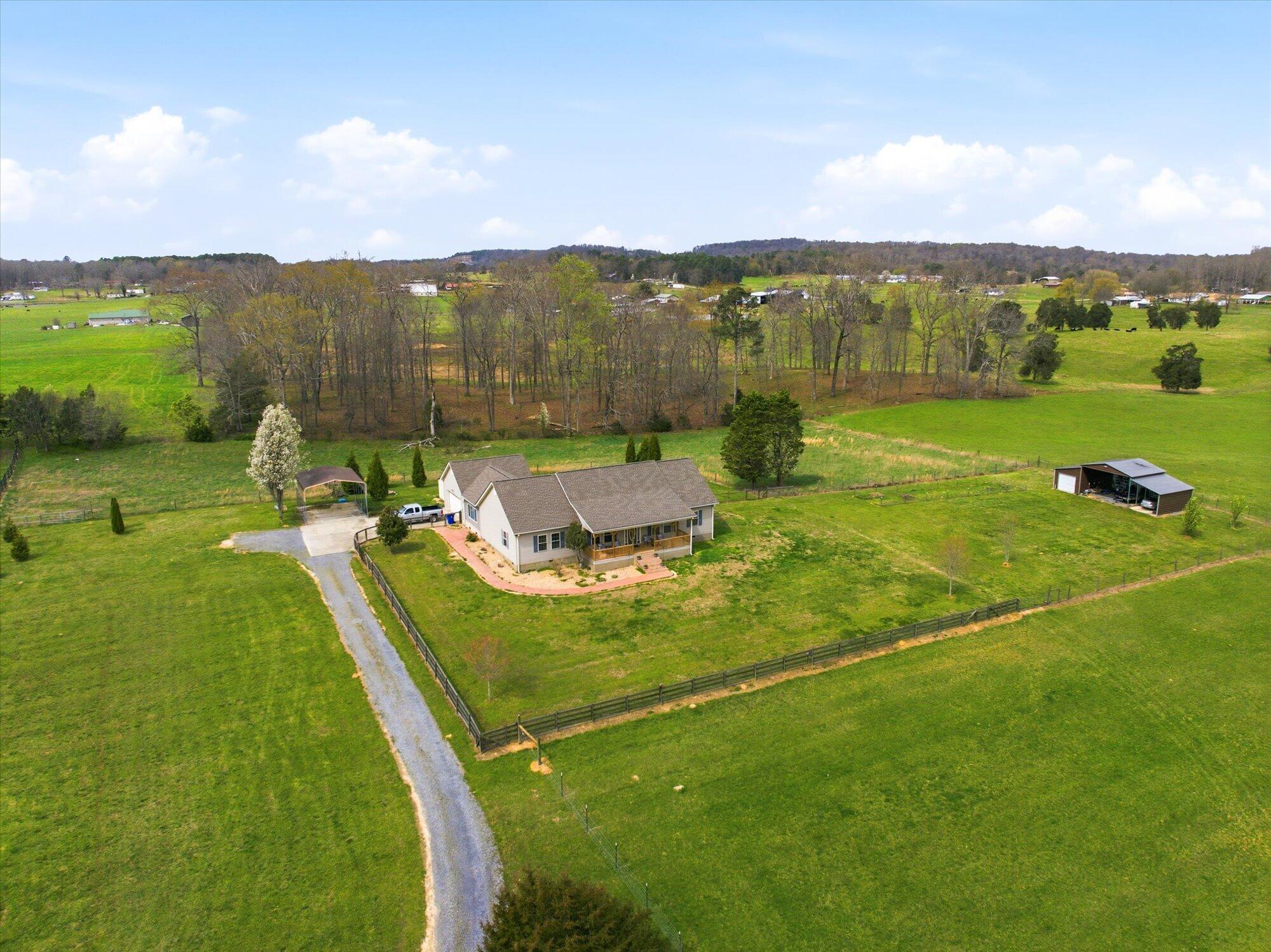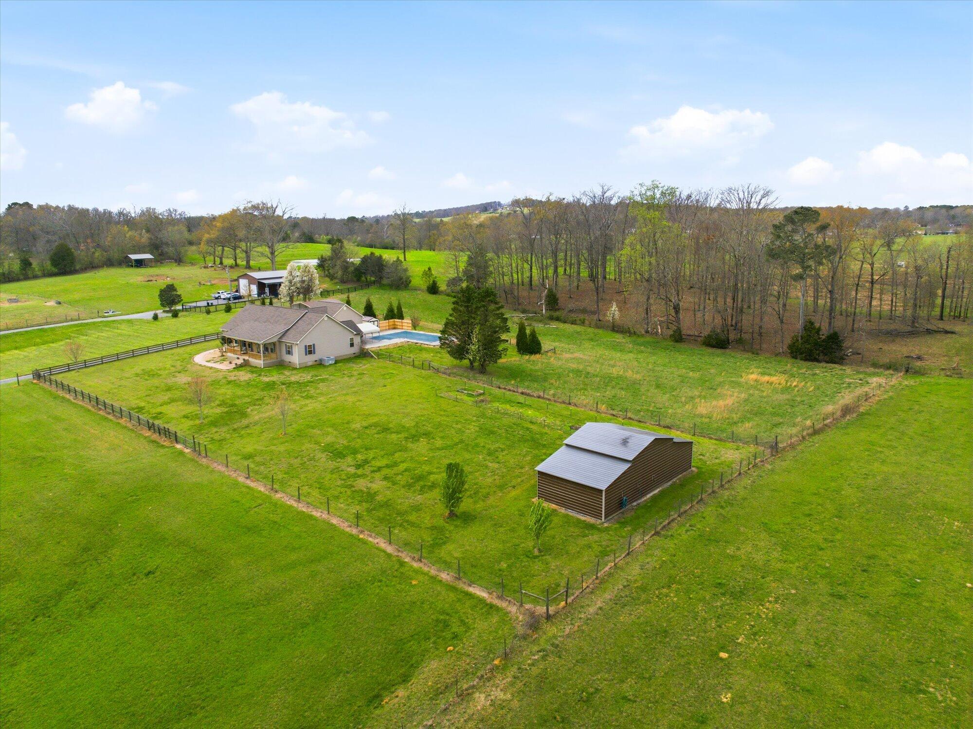 Welcome to 680 Horton Rd SE, Cleveland, TN -- where refined country living meets thoughtful upgrades on 6.15 acres of scenic Southeast Tennessee countryside. Surrounded by neighboring properties with horses and cattle, this setting offers the space, privacy, and rural charm buyers are searching for. This 4-bedroom, 2.5-bath home features 2,232 square feet of single-level living, designed for comfort and functionality. A spacious den provides the perfect space for entertaining, game days, or relaxing evenings, while the 2-car attached garage adds everyday convenience and storage. Step outside to your private backyard retreat -- a covered in-ground saltwater pool complete with fiber-optic lighting for evening ambiance and a robotic cleaner for effortless maintenance. A dedicated shed keeps pool equipment and supplies neatly organized. The acreage is equally impressive and well-equipped. The property includes multiple fenced areas suitable for pastures, ideal for livestock, and an outbuilding with both water and electricity, offering flexibility for a workshop, hobby space, or agricultural use. An RV carport with 5-amp electric hookup provides added versatility for travel or guests. Youll also enjoy two pear trees and one peach tree, adding charm and seasonal harvest potential. Inside, efficiency and comfort are at the forefront with a new propane vent-free fireplace featuring remote temperature control, a propane on-demand tankless water heater, and a 4-ton heat pump for reliable year-round climate control. Additional major features include: Roof approx 5-6 years old, New front deck (April 2025), 350-gallon underground propane tank, 1,000-gallon septic tank with above-ground access cap (pumped Summer 2025). This property offers the rare combination of acreage, infrastructure, and lifestyle amenities -- all in a well-maintained, move-in-ready home. 680 Horton Rd SE is country living done right.