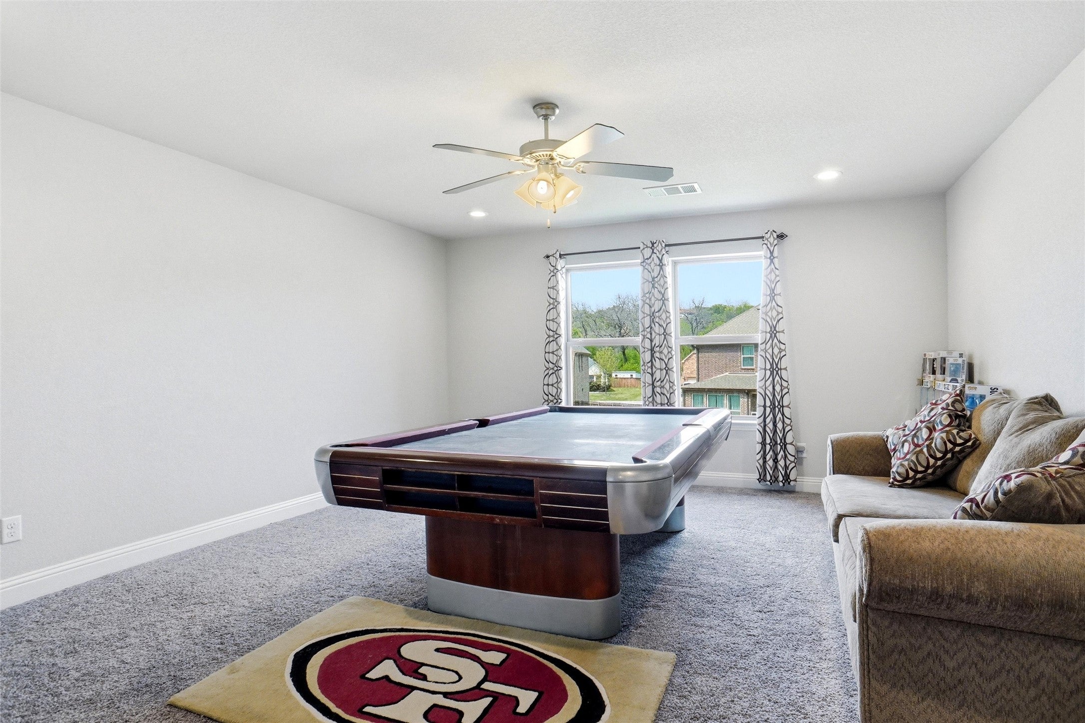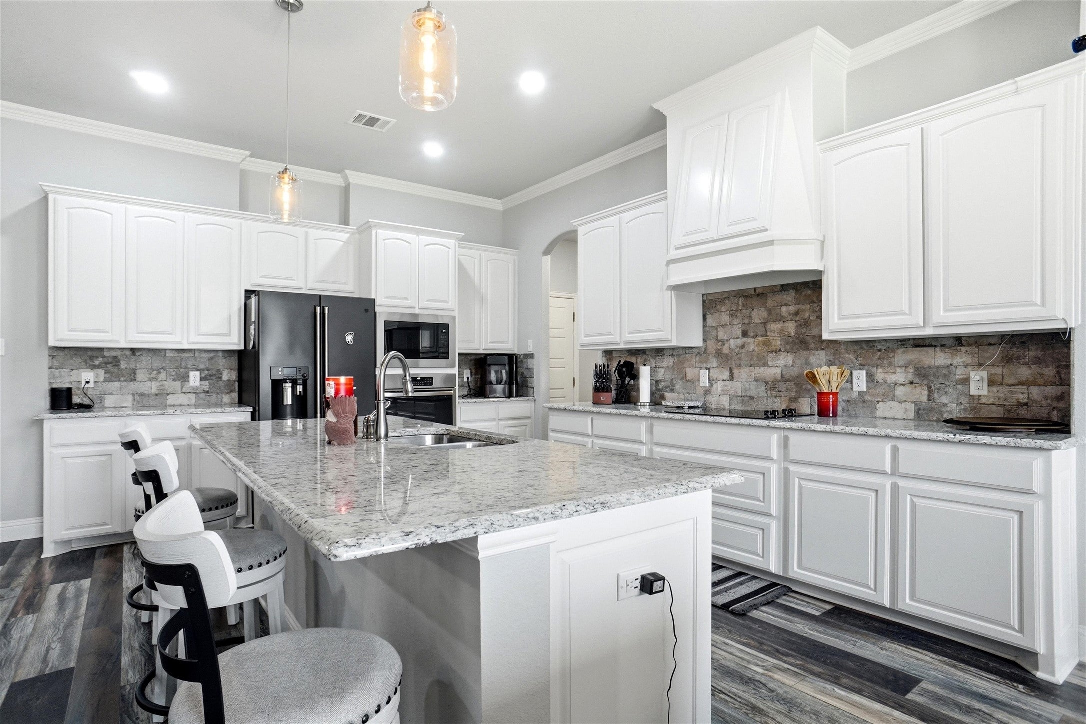 Welcome to this beautifully designed 4 bedroom home featuring a versatile flex room that can easily serve as a study or 4th bedroom, plus a large upstairs bonus room with a half bath—ideal for guests, a game room, or additional living space.The open-concept floor plan offers seamless flow between the kitchen, dining, and family room, creating a perfect space for entertaining. The family room is anchored by a cozy wood-burning fireplace, while the kitchen boasts granite countertops, a large center island, and ample workspace. The private primary suite is thoughtfully designed with dual His-Her vanities, a relaxing garden tub, and a walk-in ceramic tile shower. Granite countertops are also featured in the master bath and utility room, adding a touch of elegance throughout. Additional highlights include a functional mudroom with a built-in bench, a covered broom-finished concrete patio for outdoor enjoyment, and a fully landscaped yard complete with sod, sprinkler system, bushes, a tree, and a 6-foot privacy fence. Ideally located, this home is within walking distance to Willow Park North shopping, nearby parks, and scenic trails, and just one exit away from HEB—offering unmatched convenience for everyday living. With easy access to I-20, commuting and errands are a breeze. Don’t miss the opportunity to make this exceptional property your next home! more photos coming soon