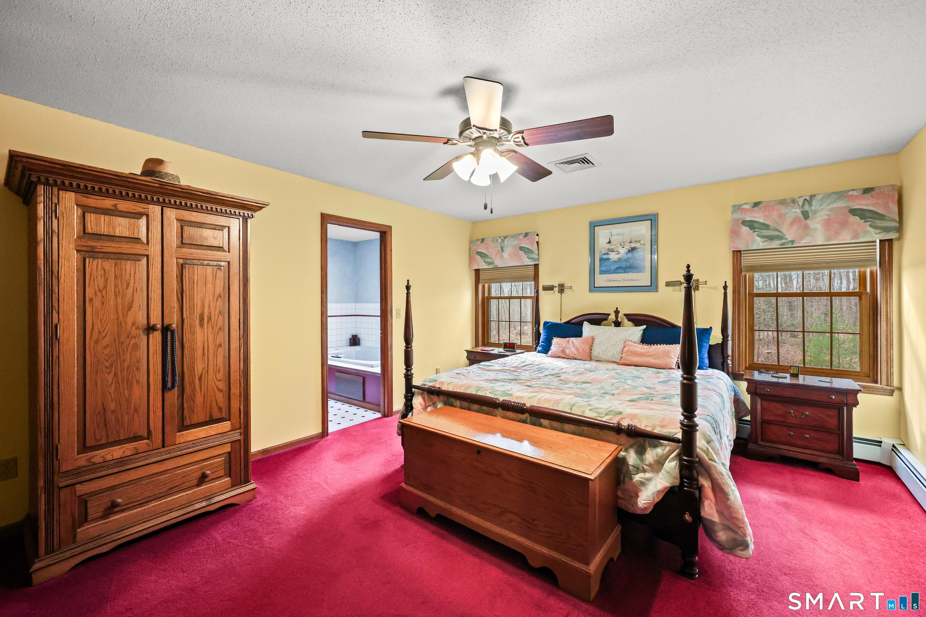 Peaceful quiet rural 1 acre surroundings is just one of the many desirable features found w/ this Hebron cape cod styled home. Loving maintained by the original owners this 1769 SF 7 room 3 Bedroom-2.5 Bath w/full dormer is located in the Gilead section of Hebron in close proximity to several large farmland & open space land tracts. The extended first floor plan features a country sized kitchen w/daily dining area, food prep island, Corian counters w/tile backsplash, hardwood floors, sliders to private rear patio, pantry, & full complement of kitchen appliances to convey! Adjoining the kitchen is a spacious 17.9 x12.4 formal dining room for special occasions with w/hardwood flooring. The formal living room offers a full wall of built in shelving, wall to wall carpeting, French doors, & is well suited to use as a home office. A smart well planned & appointed first floor family room features a masonry fireplace w/woodstove insert w/palladia topped flanker windows, hardwood floors, Overhead light/fan, and sliders with access to private ground level paver patio. The second-floor plan features a Primary BR Suite w/full bath offering double vanity basins, a jacuzzi tub, & shower stall. Two additional bedroom & full hall baths complete the second floor living areas. This home has a Weil McLain boiler/hot water, central/ac, underground utility service, paved driveway, paver walkways,2 Two car attached garage, & storage shed! EZ commute to Hartford, Manchester, Willimantic, & UCONN.