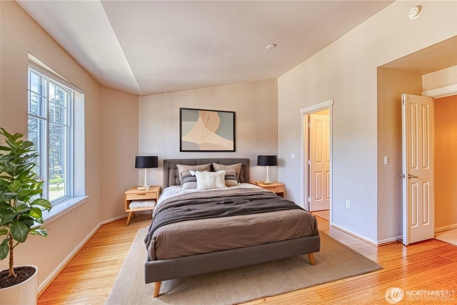 Welcome to this beautifully bright SATOMI townhome in desirable Lakemont! This home features soaring vaulted ceilings and an open-concept layout that creates a light, airy, and inviting atmosphere. The kitchen is thoughtfully designed with granite countertops, gas range, a functional prep island, and a dining area overlooking peaceful greenbelt views. Custom bamboo flooring enhances both the main level and the primary suite, adding warmth and style throughout. Conveniently located near I-90, offering an easy commute to the Eastside and Seattle. The home also includes a spacious tandem 2-car garage with additional storage space. Enjoy the benefits of a well-managed HOA with a strong owner-occupancy rate 75%, with no rental cap. Monthly dues include water and sewer. Ideally situated close to parks and scenic trails, perfect for outdoor enthusiasts. Award winning Issaquah school district! Pre-inspected for peace of mind.