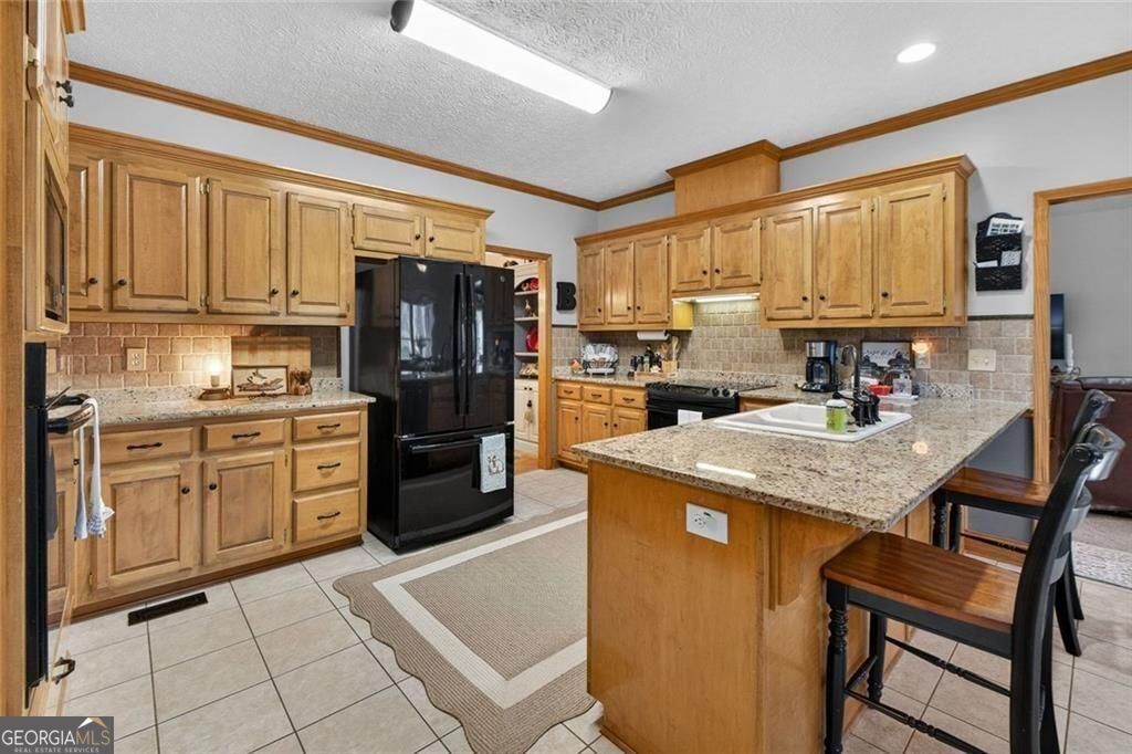 Timeless elegance meets modern comfort in this 4 bedroom, 3 1/2 bath home. You are greeted with elegant landscaping and stamped walkway that lead up to your stunning front door. A two-story foyer with hardwood stairs, black railing, and crown molding sets the tone, while the great room's cathedral ceiling and gas fireplace create a welcoming centerpiece. The formal living and dining rooms feature tray ceilings and custom moldings, perfect for entertaining. The kitchen is both stylish and functional, with white cabinetry, granite counters, stainless steel appliances, tile backsplash, a wood-topped island, pantry, and butler's pantry with wine fridge. A bright office with French doors, drop zone off the garage, and a large bonus room upstairs (ideal as a 5th bedroom) add versatility. The primary suite offers a cathedral ceiling, jetted garden tub, tiled shower, double sinks, recessed lighting, and a custom walk-in closet. Finished basement boasts a large family room, recreation area, wet bar, built-ins, surround sound, full bath, and ample storage. Outdoor spaces include a deck, stamped concrete patio, and serene wooded backyard.