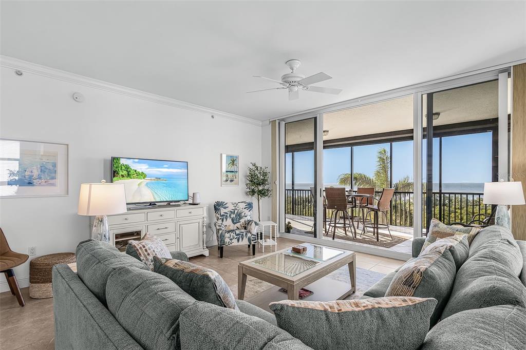 Stunning Gulf of Mexico beachfront views define this turnkey 4th-floor end-unit condo — a beautifully renovated coastal retreat designed for comfort, style, and effortless living. This fully updated 2-bedroom, 1.5-bath residence features tile flooring throughout and thoughtful designer touches, including plantation shutters and chic coastal furnishings.