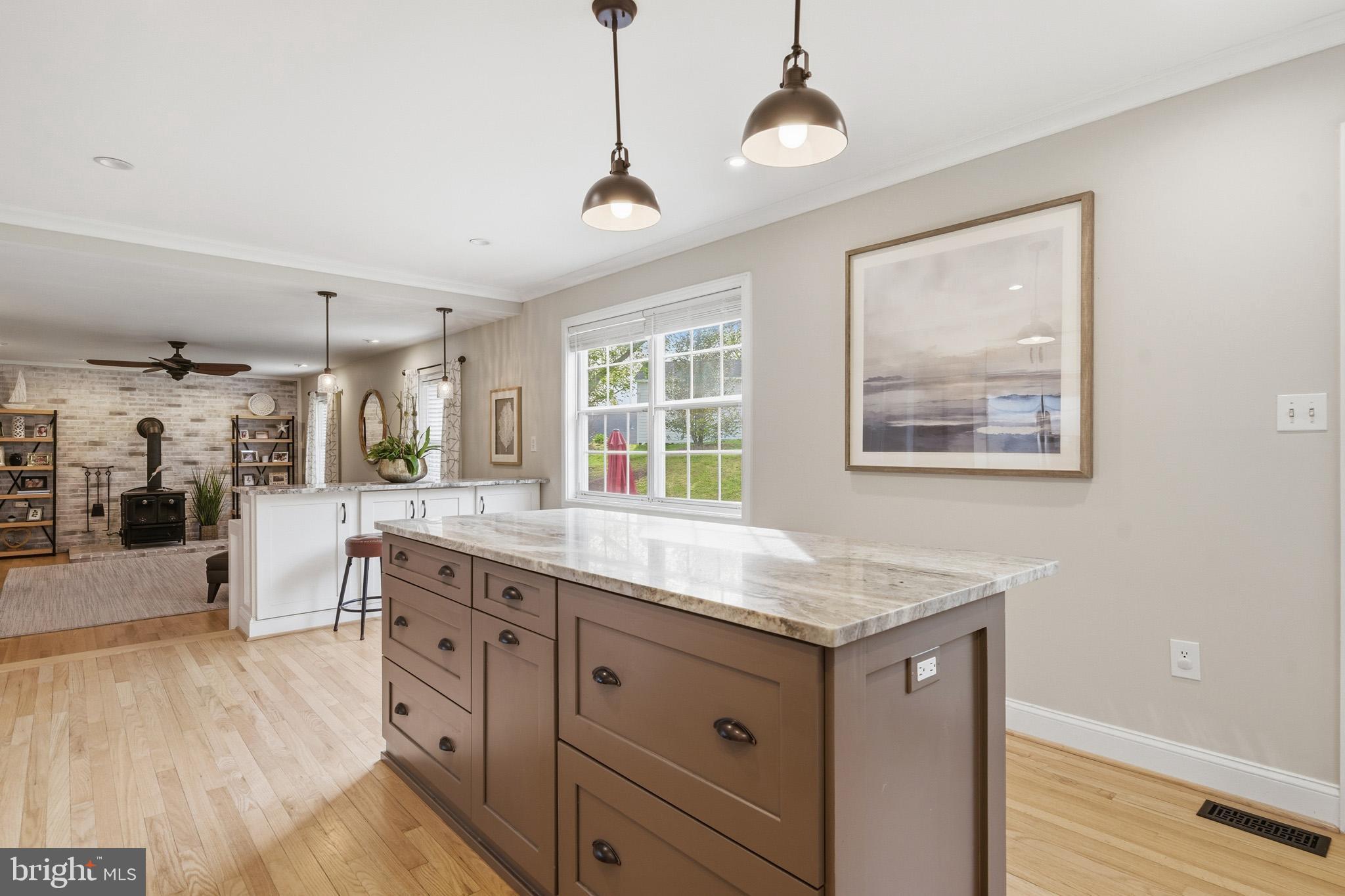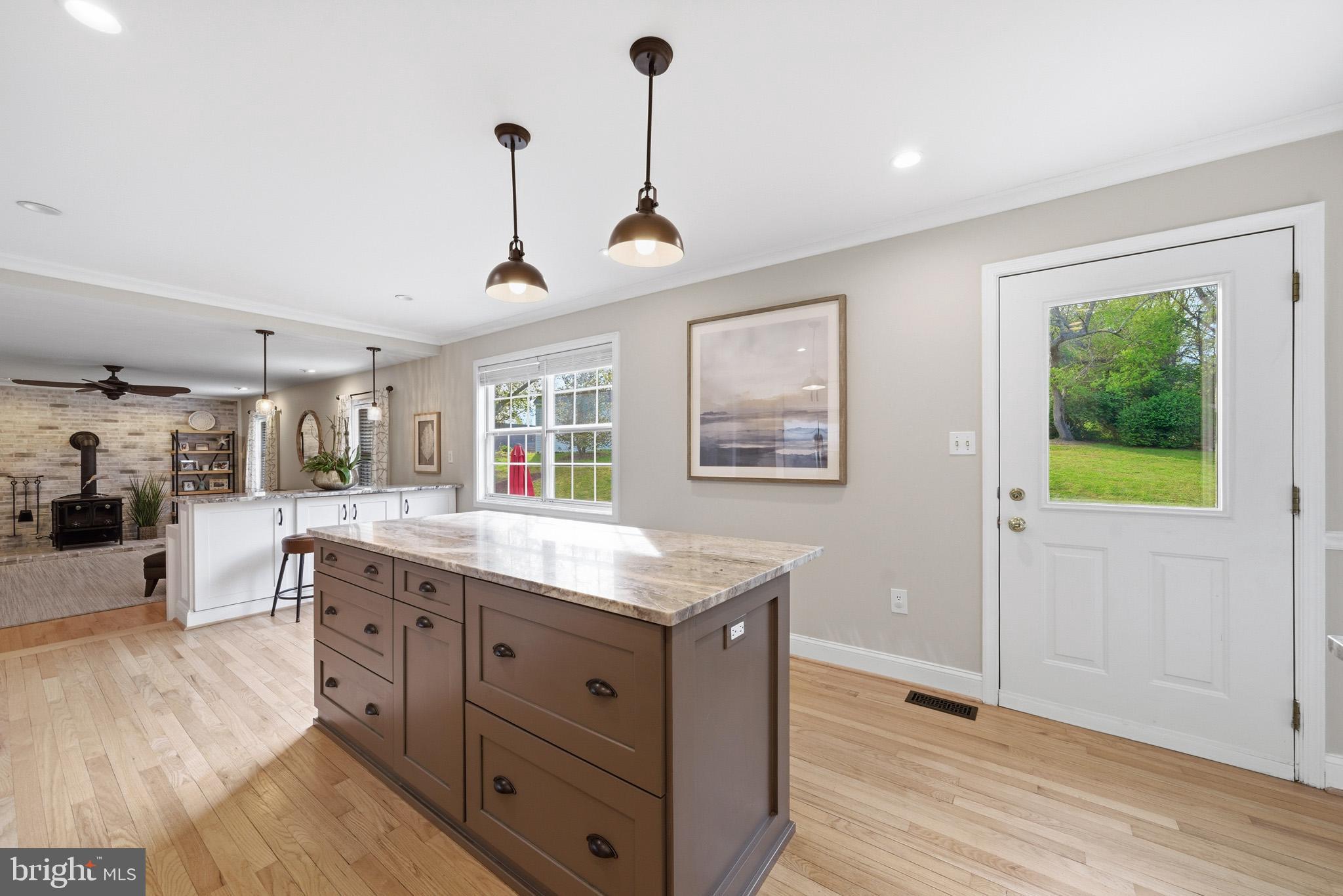 STUNNING AND SERENE IN OWINGS! Perched in a gorgeous setting in Owings, this beautifully maintained 4-bedroom, 3.5-bath Colonial sits on a private 1-acre setting that offers both space and a sense of escape.From the moment you arrive, the inviting front porch and updated front door create a warm, welcoming first impression. Inside, the main level truly stands out, with refinished natural oak floors flowing throughout and a layout that feels both open and intentional—perfect for everyday living and effortless entertaining.The kitchen has been thoughtfully updated with stunning fantasy brown granite countertops, stainless steel appliances, and newer cabinetry, blending style and function in all the right ways. Just off the kitchen, the living space is anchored by a wood stove set against a beautifully whitewashed brick backdrop, adding character, warmth, and a cozy focal point. A well appointed half bath adds to the updated style of this floor.Upstairs, you’ll find three comfortable bedrooms, including a primary suite with its own private bath which is completely renovated, creating a peaceful retreat at the end of the day. An updated hall bathroom and bedroom level laundry room complete the upstairs.The finished basement expands the home’s versatility, offering a rec area with built-ins, a wet bar for entertaining, and a private den/bedroom that works perfectly as an office, hobby room, or guest space, along with a full bath and additional storage.Out back, the tiered yard creates a natural, usable landscape that feels both private and inviting, while the gravel patio area is ideal for relaxing evenings or gathering with friends.Blending thoughtful updates, timeless character, and a beautiful setting, this home delivers the kind of lifestyle that’s hard to find and easy to fall in love with.New Windows being Installed in the Coming weeks!Schedule your private tour today; this wont last long.