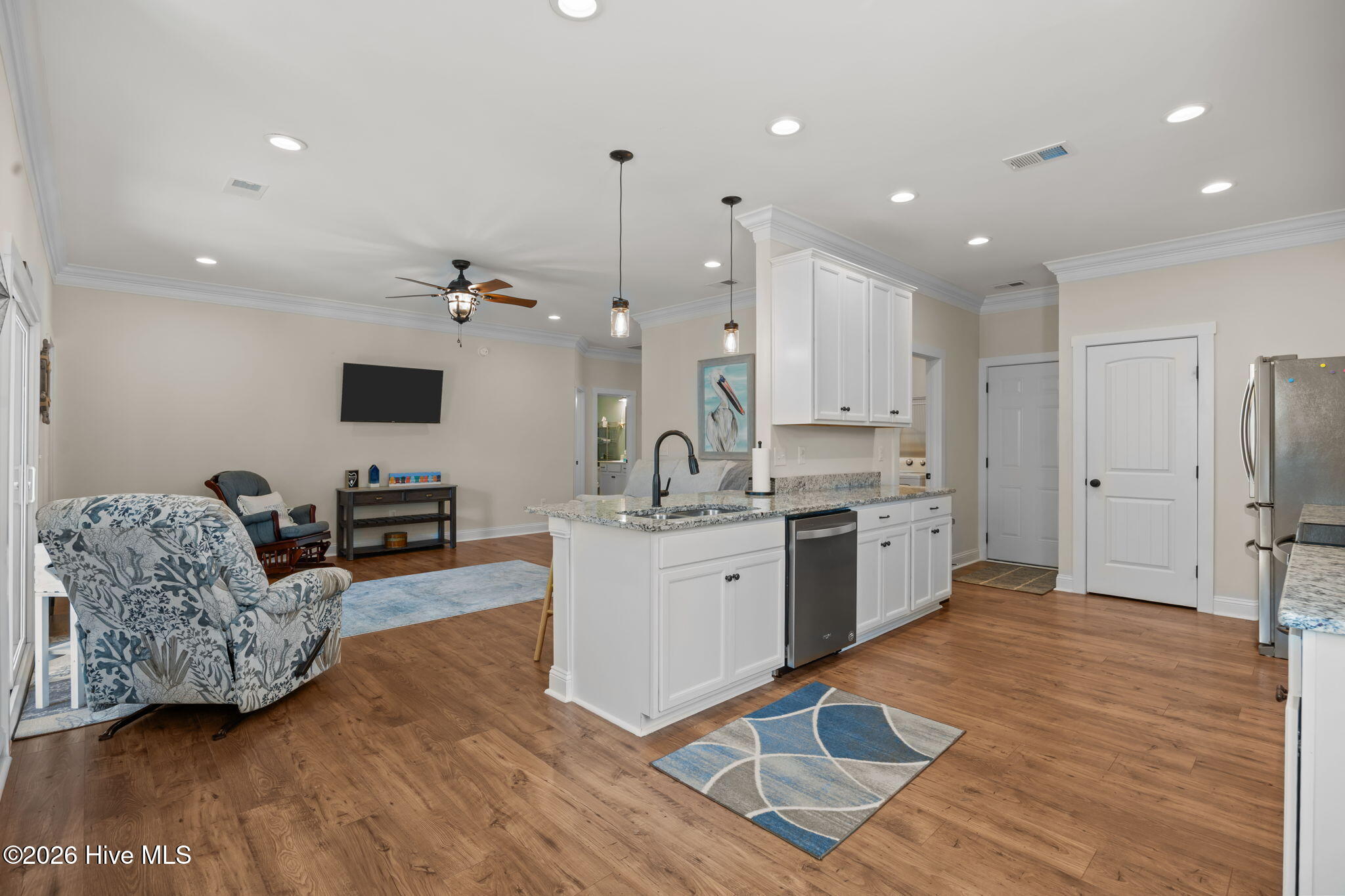 Like new 3 bed/2 bath with 2 car garage sits on the quiet end of the island. Open floor plan with 9 ft ceilings and extensive molding work throughout. The kitchen has granite, stainless steel appliances, and pantry. The Master Suite has step-in shower and a separate toilet room. Selling furnished with the exception of barstools at kitchen counter.