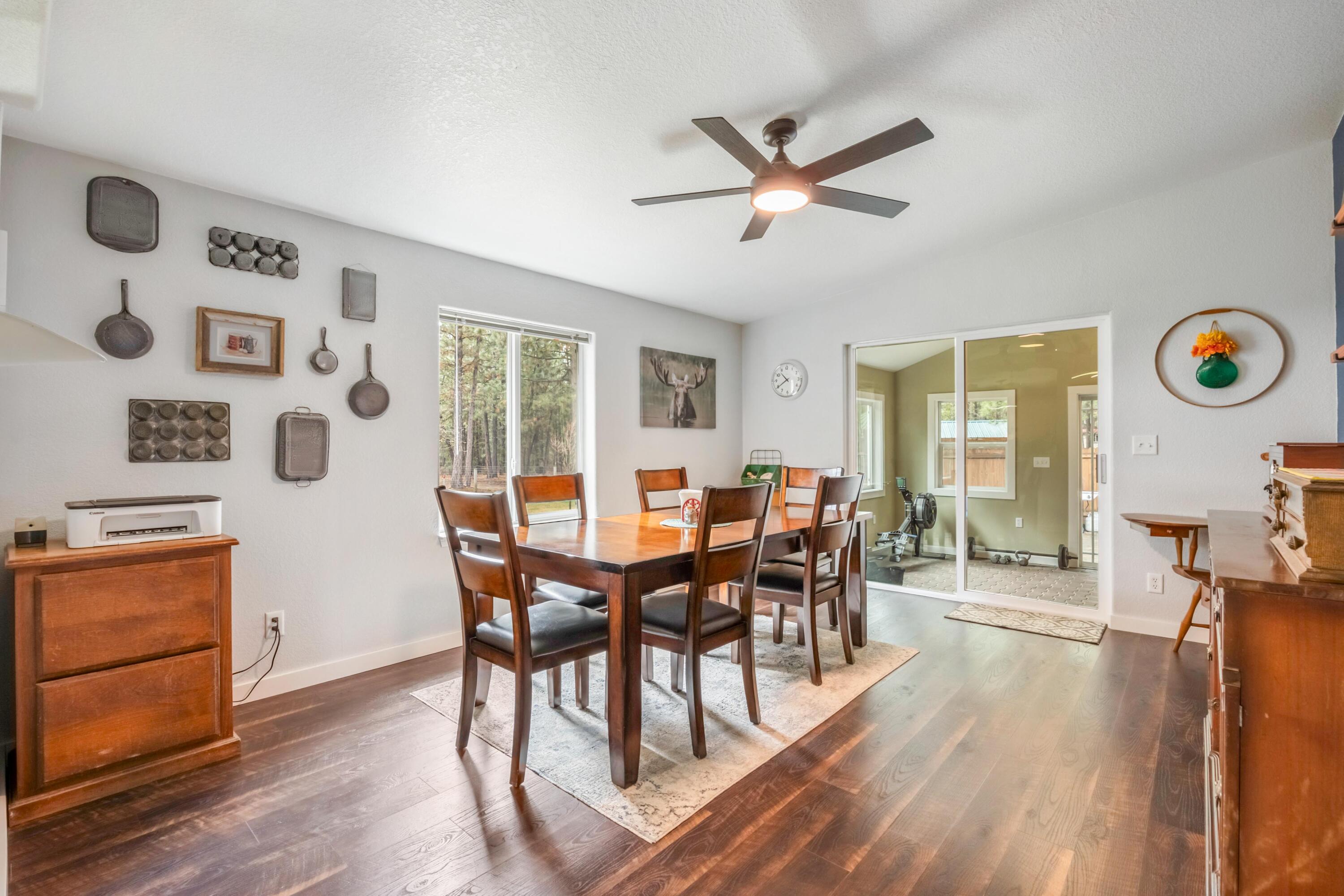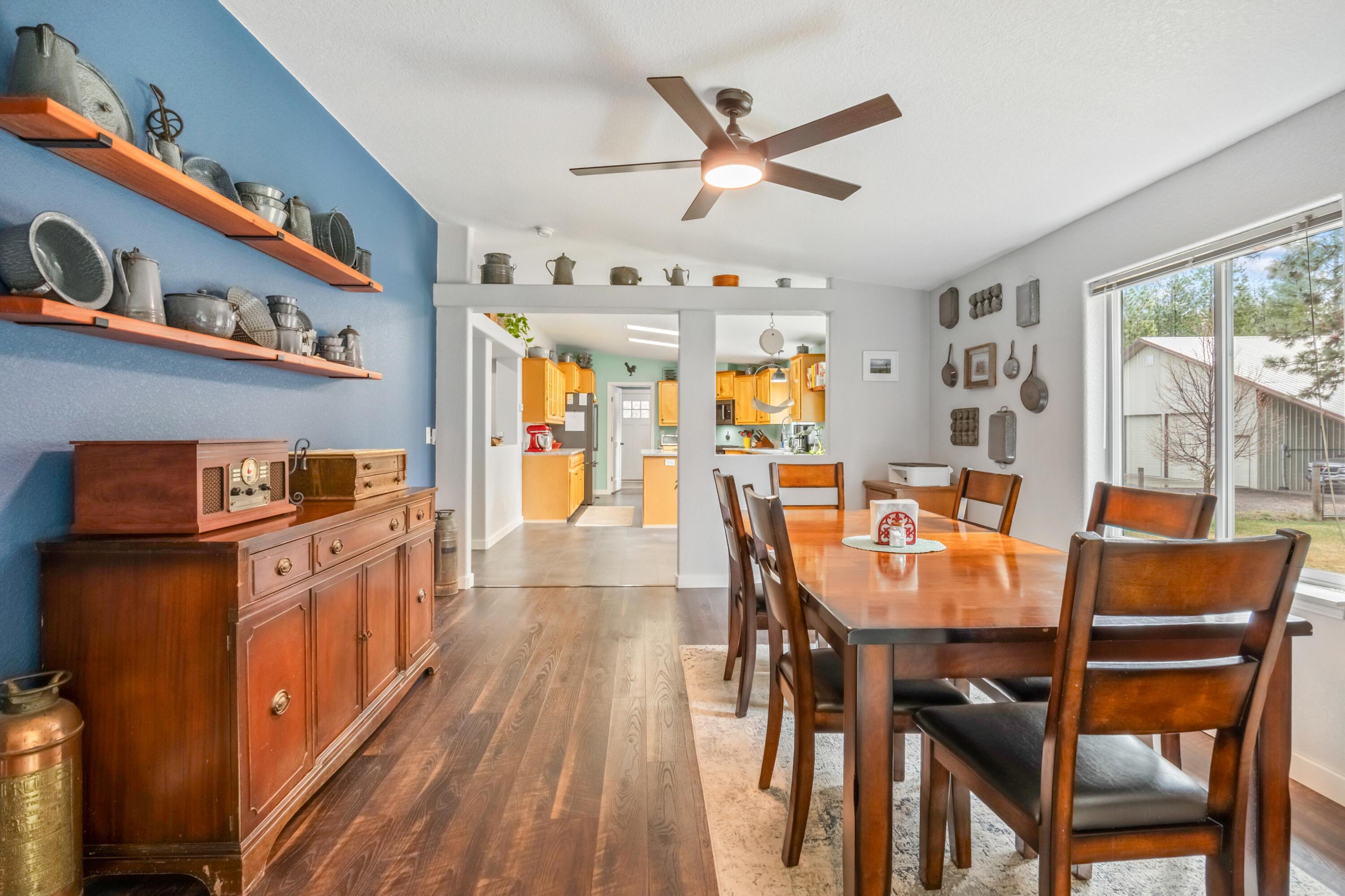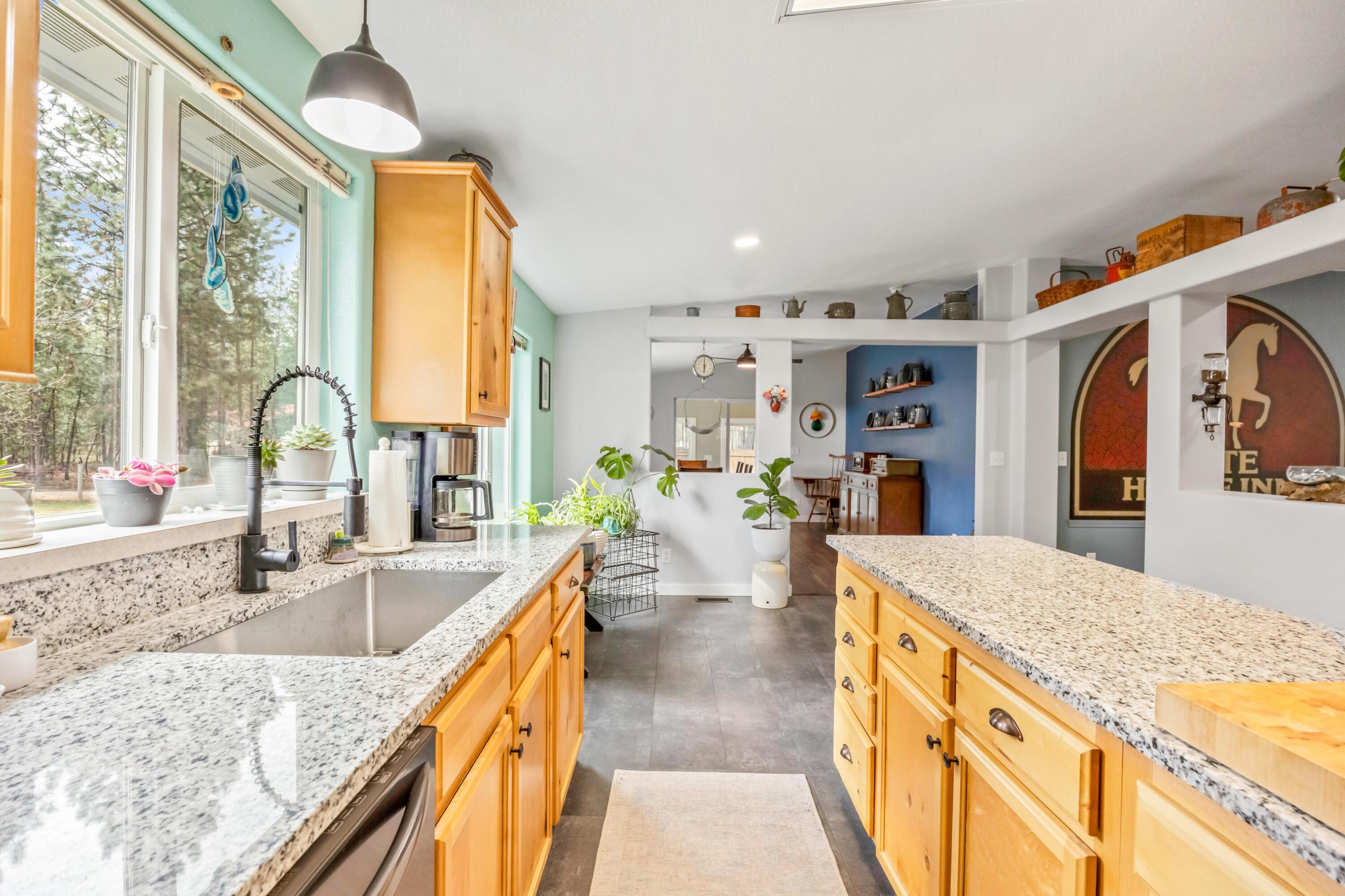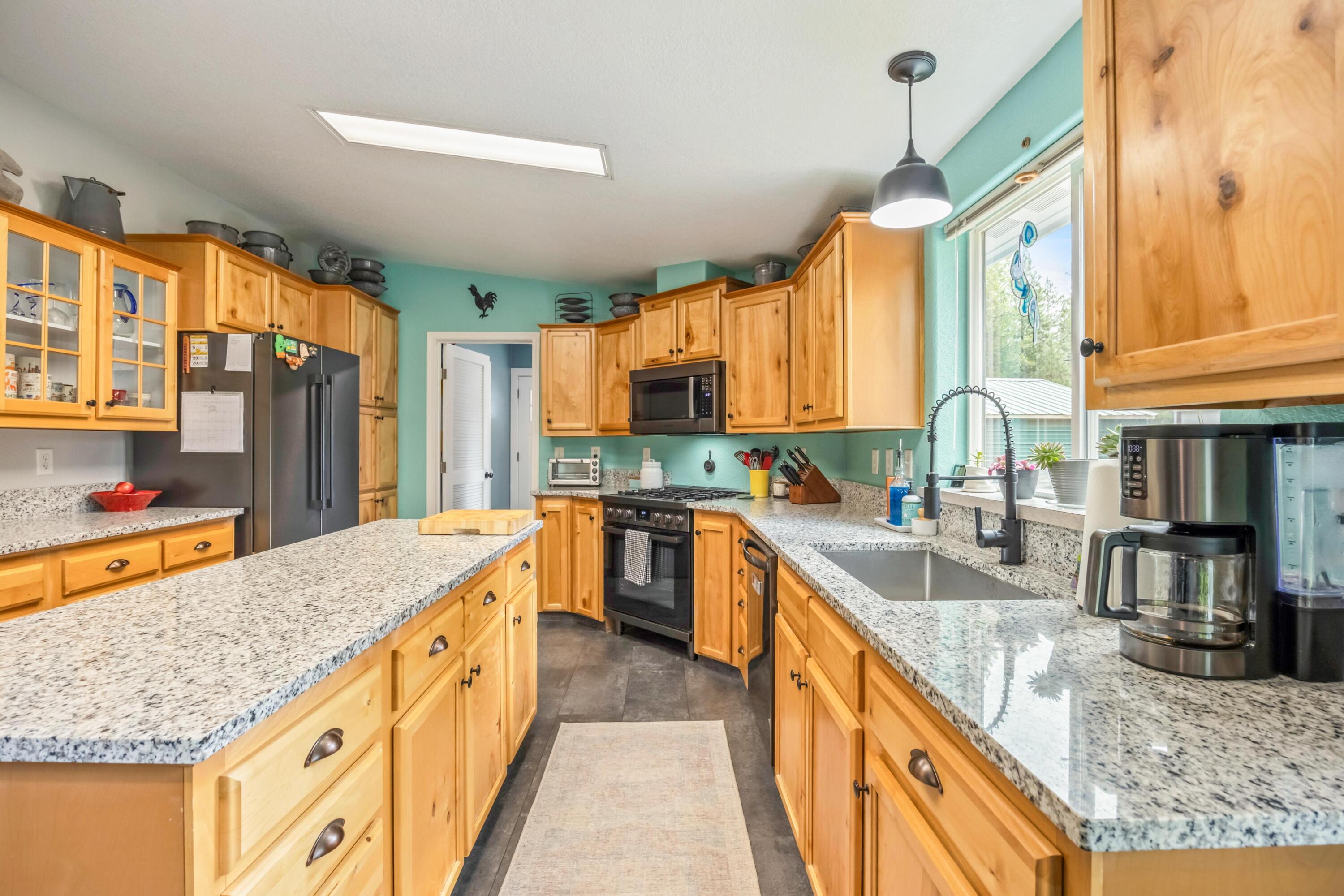 One-level home on 9.95 acres in the desirable Ponderosa Pines. This beautifully updated property features granite countertops, updated appliances including a propane cooktop, and new flooring throughout. The spacious primary suite offers a stunning, fully updated bathroom designed for comfort and style. A functional laundry room includes a convenient half bath. Outside, the property is set up for both lifestyle and utility with a greenhouse, established garden area, woodshed, and a large 1,920 sq ft shop equipped with 220 electrical service--perfect for projects, storage, or hobbies. The backyard includes a sprinkler system to keep the landscape maintained with ease. A rare opportunity to enjoy updated living with acreage, privacy, and versatile outbuildings in a peaceful setting.