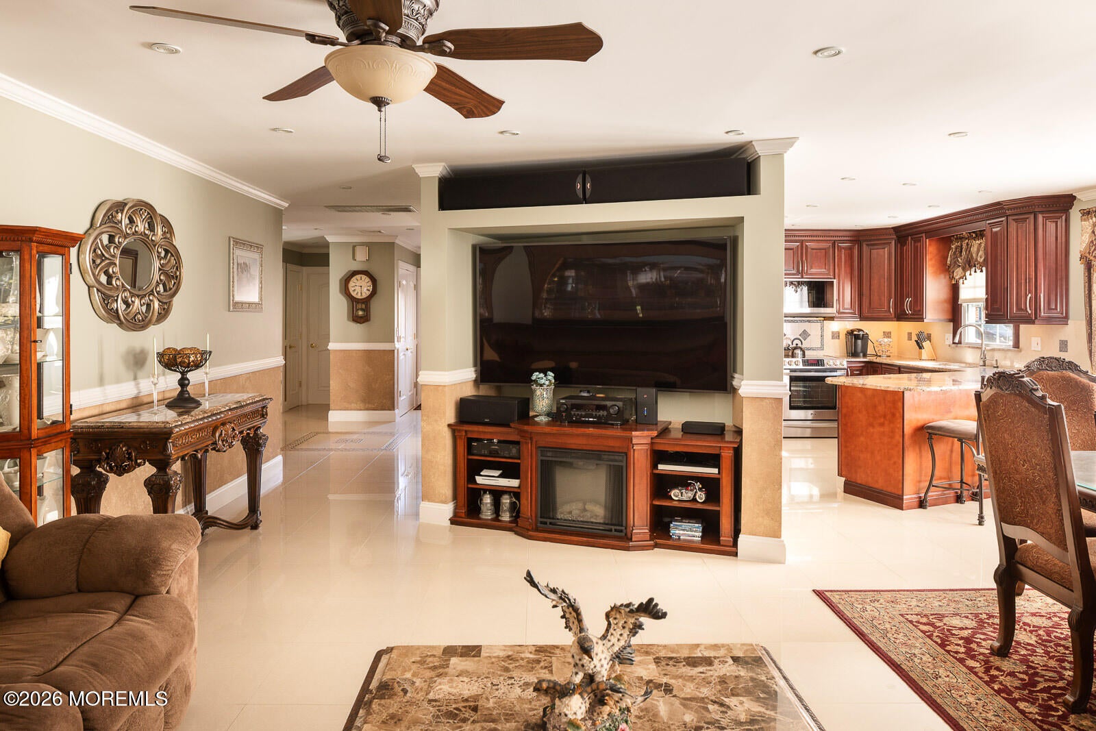 YOUR CUSTOM DREAM HOME IS HERE! UNBELIEVABLY BEAUTIFUL WITH COUNTLESS CUSTOM FEATURES (NOTE CUSTOM FEATURE LIST IN DOCUMENT SECTION OF LISTING. This Emerson model offers a spacious entry foyer with 1/2 moon accent dresser and picture, large living room, with built-in 78 Samsung TV and electric fireplace fully equipped eat-in spectacular custom kitchen cabinetry and granite counters with seating, opens to dining room great room living room, luxurious primary bedroom suite with private fully tiled bath and custom glass enclosure and walk-in closet, guest bedroom and custom tiled bath, spacious laundry room w/ cabinetry & one car garage..MUST SEE! SEEN THE BE APPRECIATED...NO DISAPPOINTMENTS IN THIS CUSTOM BUILT INTERIOR