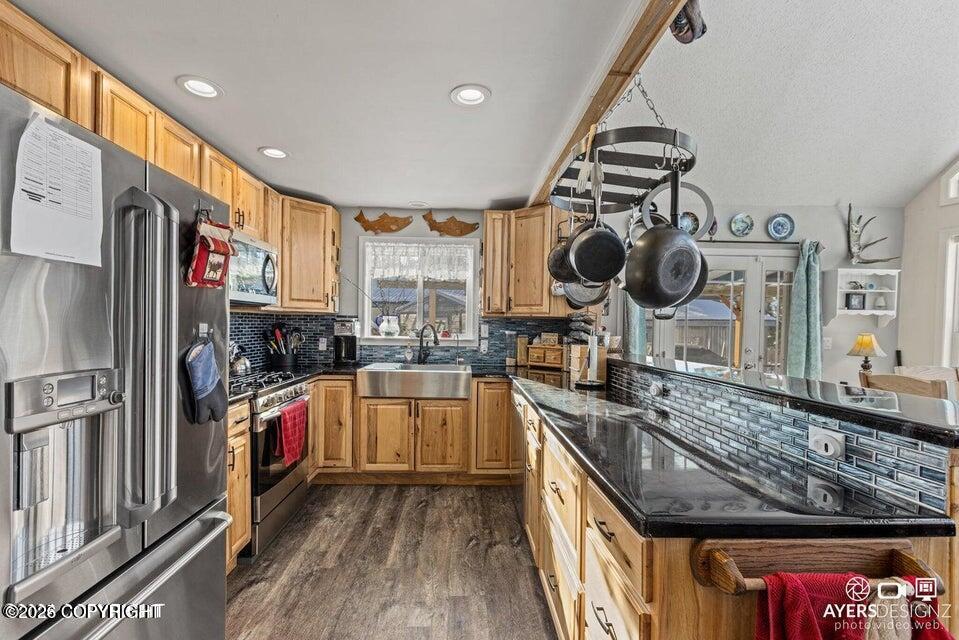 Welcome to your waterfront paradise nestled along the charming canal, offering seamless access to the legendary KENAI RIVER! Located in the gated community of Kenai Keys, this home features 3 bedrooms and 1¾ baths, ensuring comfort for all. This home offers, year-round living, a newly remodeled kitchen, and a full wall of windows with ample natural light.