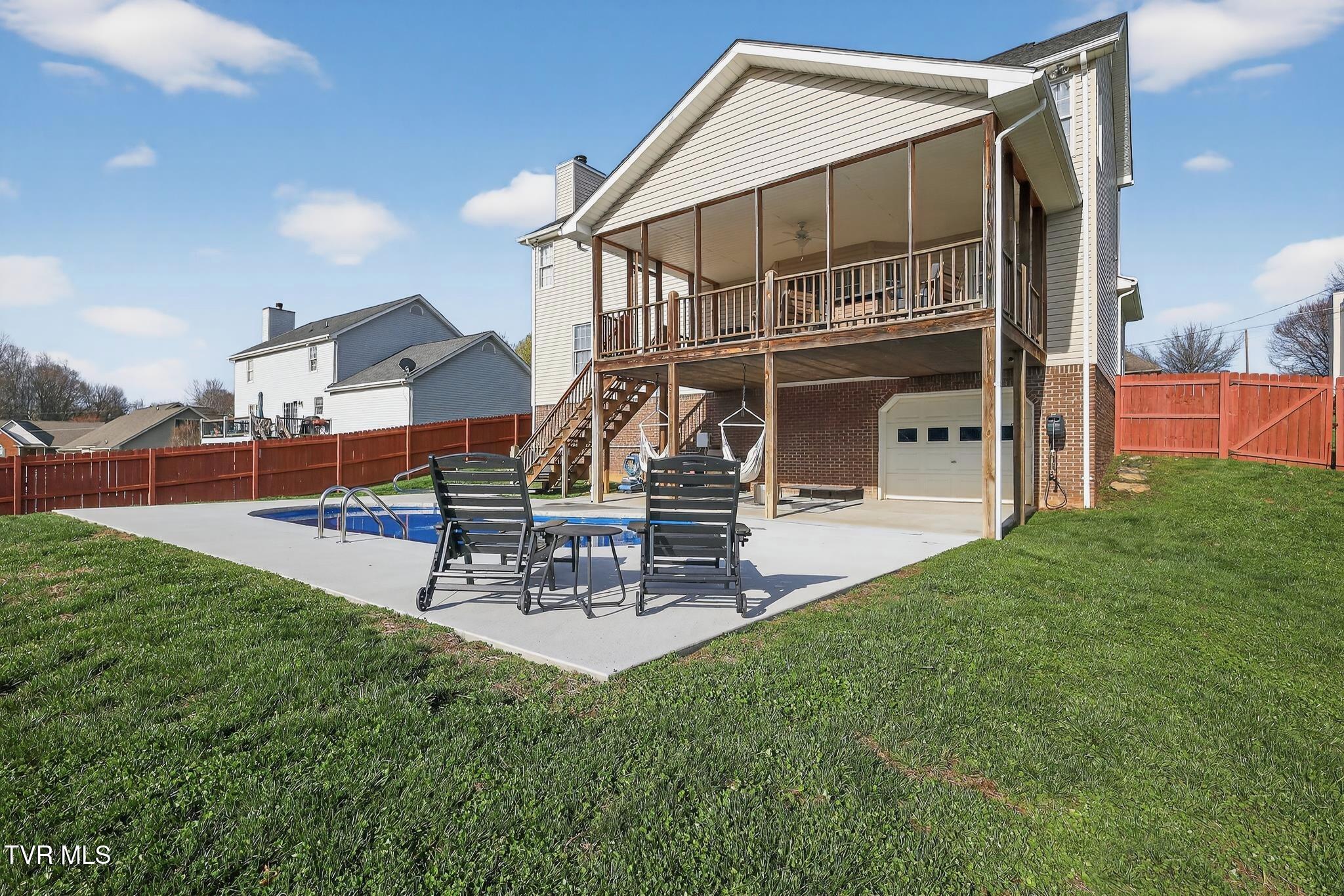 Wonderful family home in beautiful Hillendale Estates in Gray, Tennessee! Centrally located between Kingsport and Johnson City and seconds to Daniel Boone High School.Home features a large eat in, renovated kitchen with a large island and pantry, separate formal dining area with tray ceilings, a half bath and cozy living room with gas logs. Upstairs, you'll find the large primary bedroom with an even bigger primary bathroom and soaking tub. Walk in closet with two additional closet spaces available. Brand new LVP flooring in both full bathrooms and laundry room. Three additional bedrooms, full bathroom and a laundry room complete the second level. Two car garage on main level and additional garage space with outdoor access located in the basement. Finished room in the basement is perfect for a flex space that can be used for a play room, additional bedroom, office, workout room and even more! Two brand new HVACs have been installed making the home more energy efficient.You'll love the view of the large, beautifully manicured yard and pool while sitting on the large back porch year round. The in-ground, heated salt water pool was installed in 2024 and is extremely low maintenance. It comes with a winter safety cover, dolphin automatic vacuum and pool alarm for added safety.The backyard is fully fenced in as well which is perfect for entertaining!This well maintained home - with storage galore - is ready for a new family to make wonderful new memories. Also, no city taxes!All info taken from tax records and third party. Buyer/Buyer's to Verify