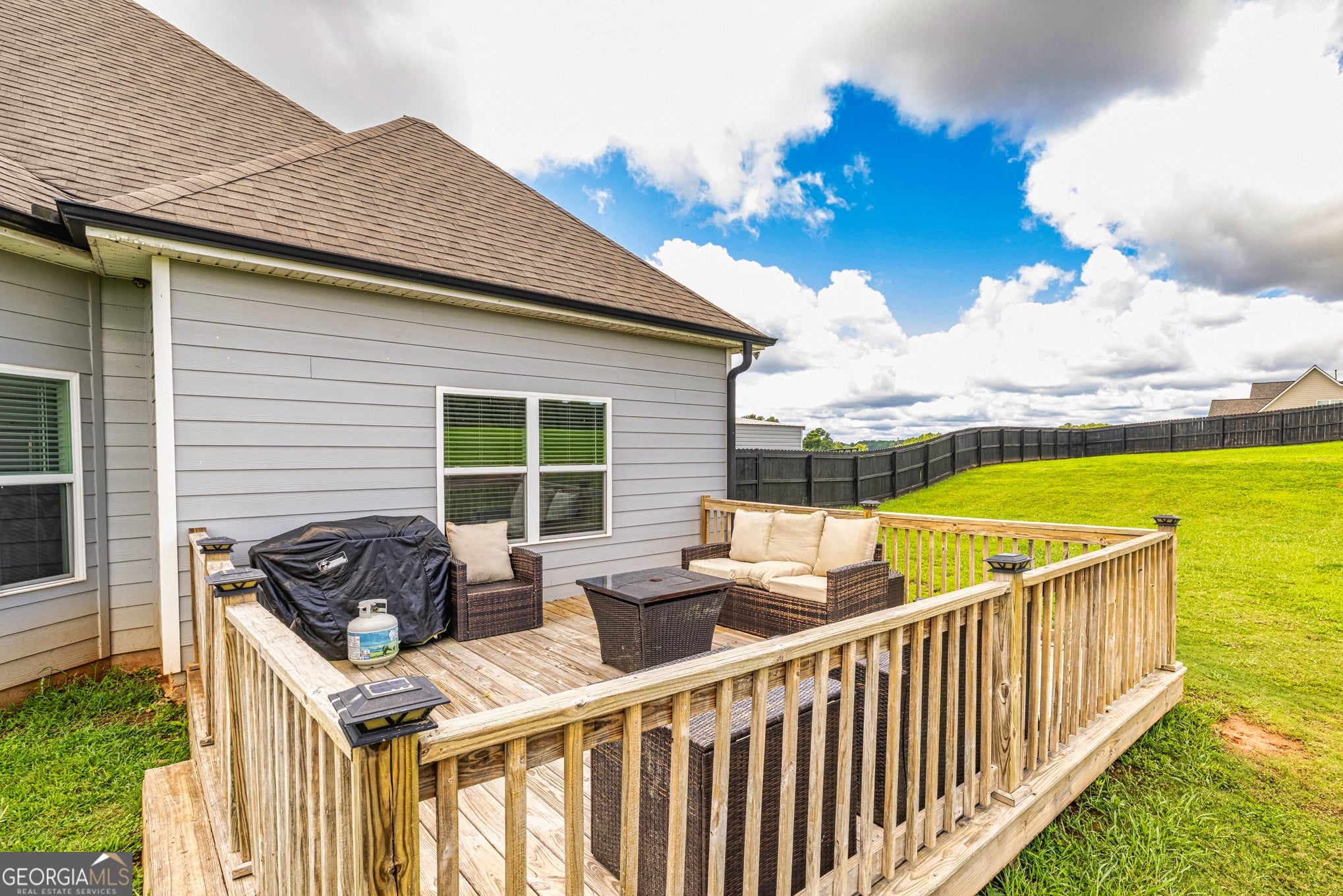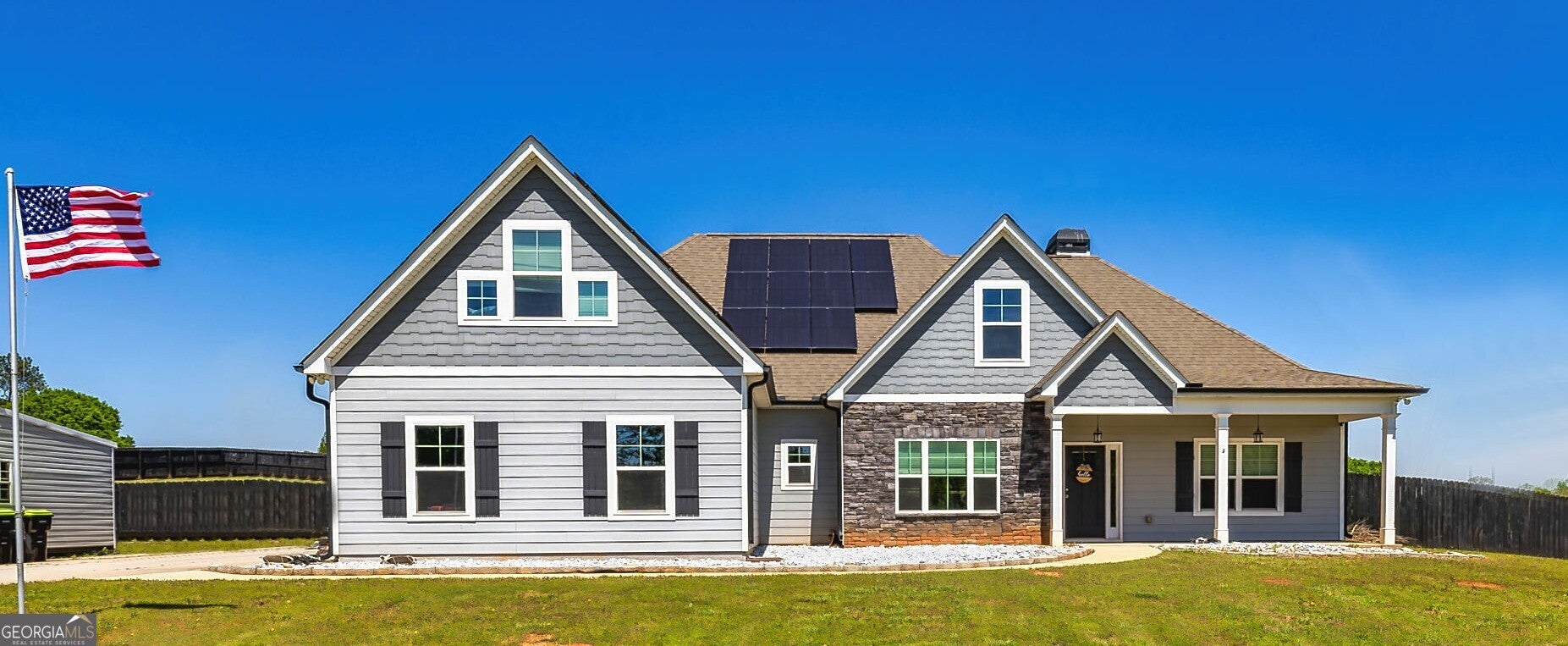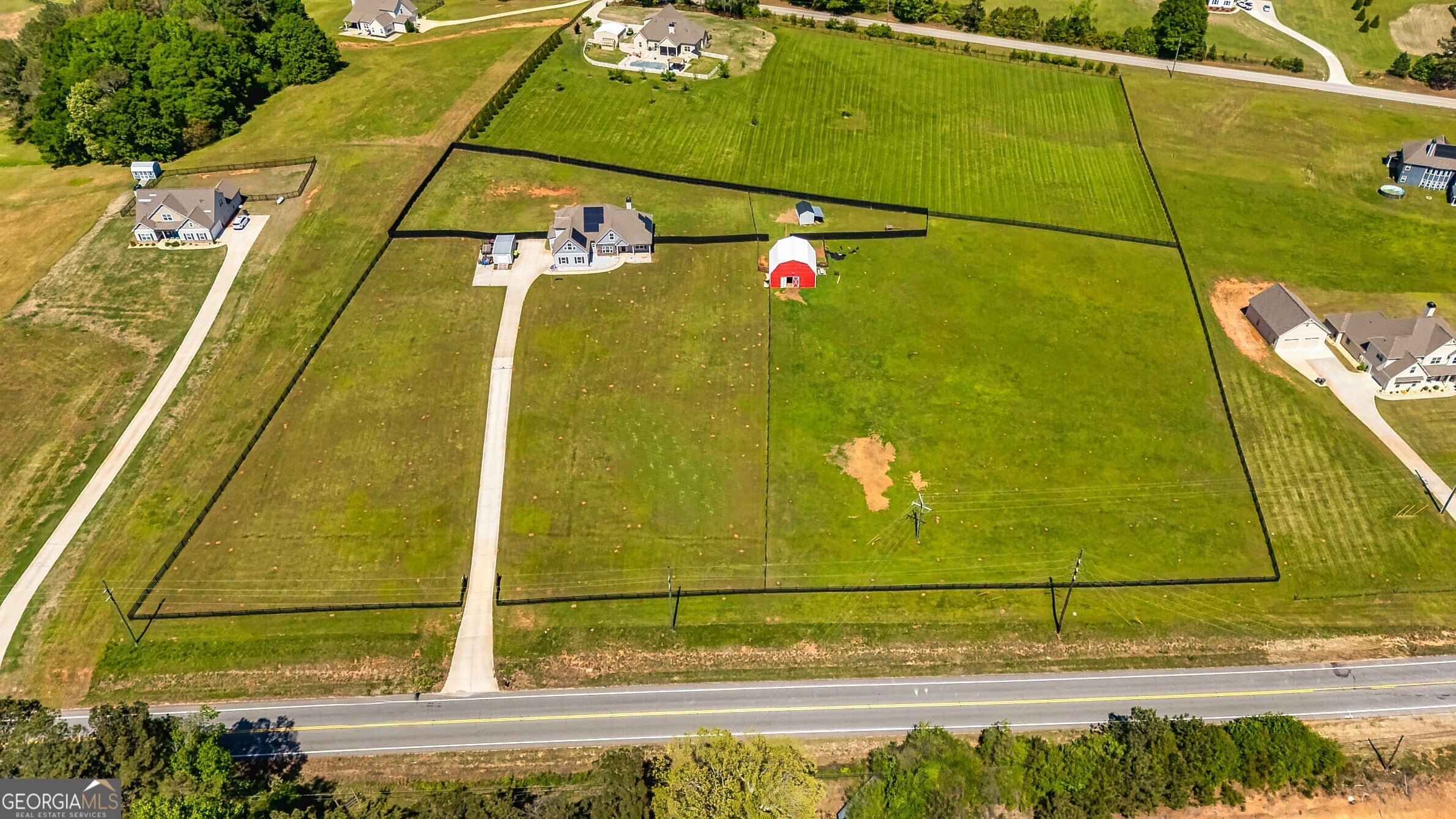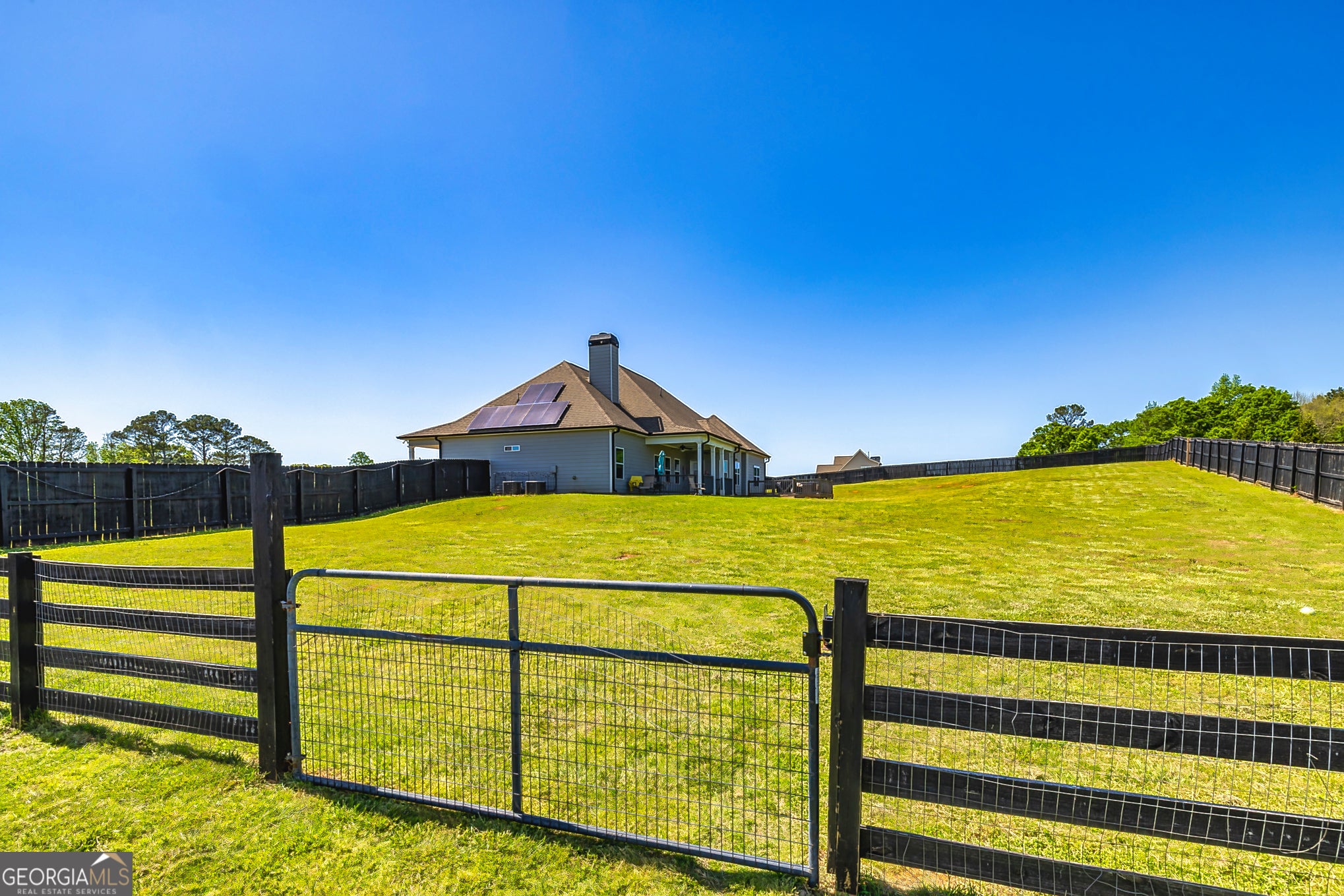 5-Acre Fenced Mini-Farm Paradise - Ready for Horses, Goats & Your Vision? Tired of tight lots and rules? Discover this fully fenced 5-acre retreat, perfectly positioned just 15 minutes from Newnan, Piedmont Hospital, and easy access to Atlanta Airport (30-45 min). Ideal for equestrian setups, livestock, or hobby farming. The barn offers three spacious, animal-ready stalls with room to expand. Electric gated entry provides security and that true ranch feel. Solar panels keep utility bills low while the land offers open pasture and endless possibilities-no HOA restrictions. Inside the move-in-ready home: Spacious main-level primary suite with spa bath, two additional bedrooms, open family room with wood-burning fireplace, formal dining, eat-in kitchen, oversized mudroom/laundry. Upstairs private guest suite with full bath and walk in closet and extra storage. Enjoy two outdoor entertaining spaces overlooking your acreage-perfect for bonfires, family gatherings, or quiet evenings. Energy-efficient, versatile, and ready for your animals and adventures. Dont miss this rare blend of rural freedom and convenience-schedule a showing today!