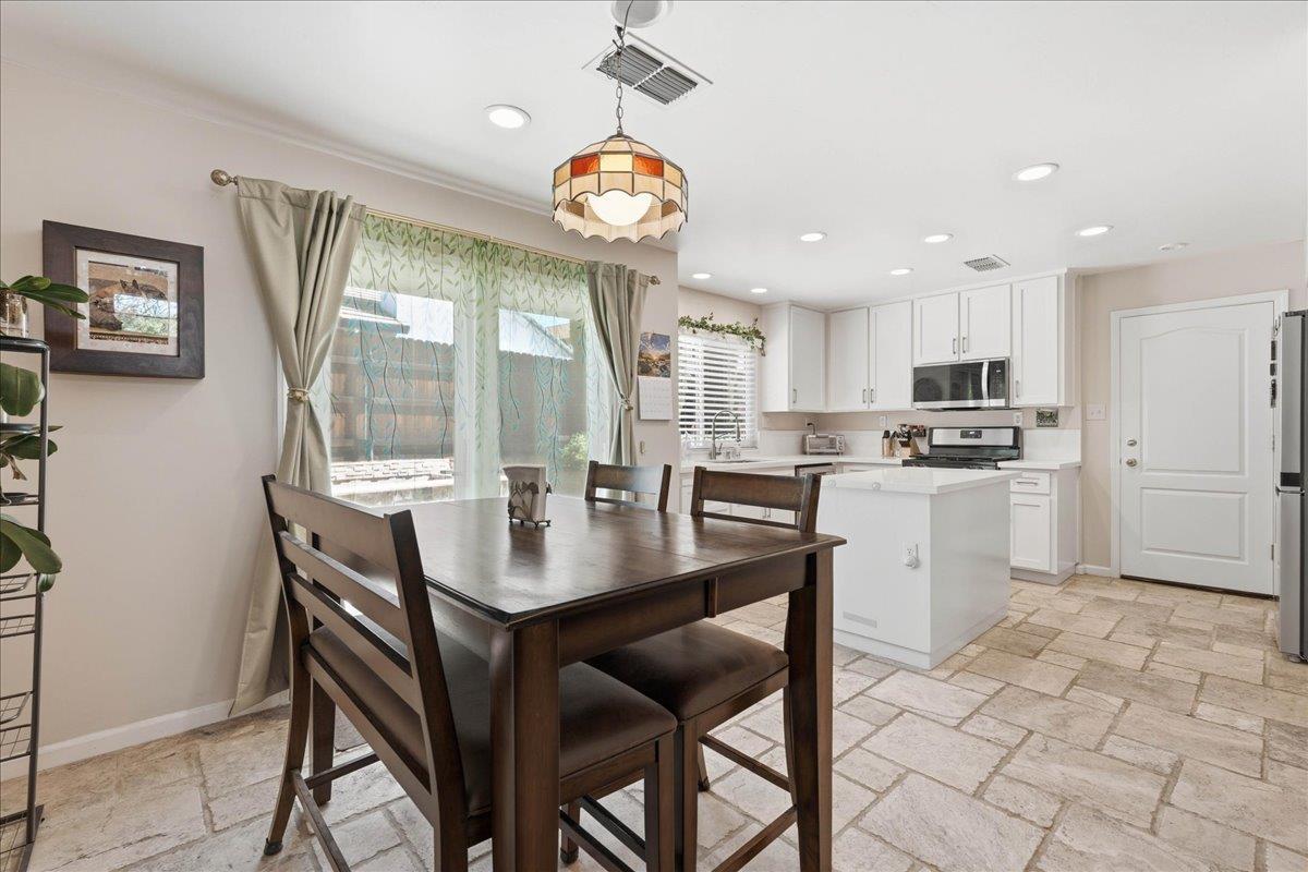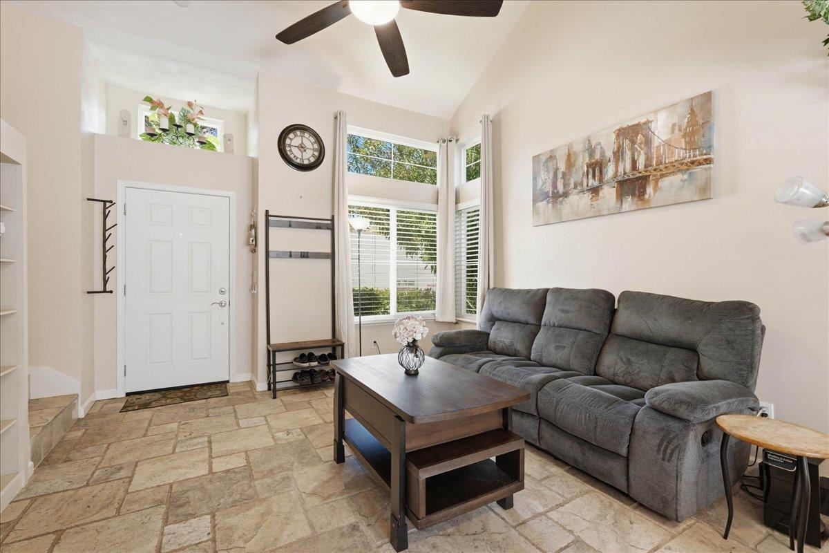 Welcome to this well-maintained home in Folsom, offering 3 bedrooms and 2.5 bathrooms in a desirable gated community. The updated kitchen features stainless steel appliances, a center island, gas range, and soft-close cabinets and drawers. The living room offers tall ceilings along with a cozy wood-burning fireplace with a gas starter.