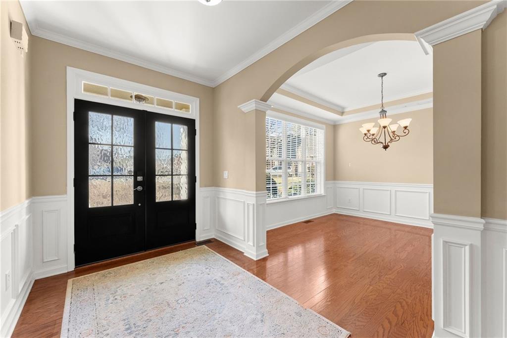 Discover the perfect blend of lake-life convenience, neighborhood charm, and timeless architectural details in this beautifully situated brick-front home on a quiet cul-de-sac in the River Falls community near Lake Lanier. A welcoming covered front porch with custom double entry doors sets the tone, inviting you into a warm and thoughtfully designed interior.