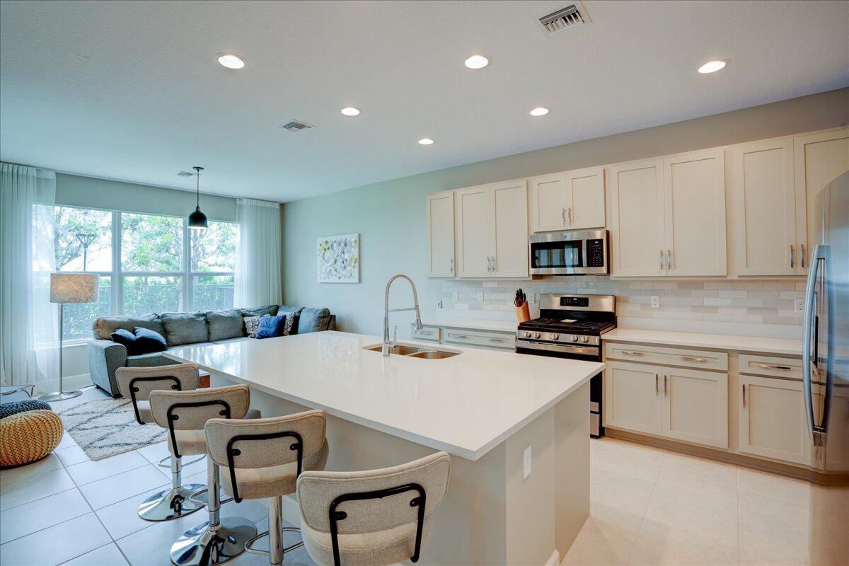 FOR SALE - Welcome to this beautifully upgraded Sierra model in GL Homes highly sought-after 55 community of Valencia Grove at Riverland in Port St. Lucie. Offering 3 bedrooms, 2 bathrooms, and 2,064 square feet under air, this thoughtfully designed residence blends comfort, functionality, and a light coastal aesthetic. Inside, the open-concept floor plan is enhanced by added high-hat lighting and ceiling fans throughout, creating a bright and inviting living space ideal for both everyday living and entertaining. The chef-inspired kitchen features upgraded Level 4 soft beige cabinetry, a spacious center island with additional storage, and a vented microwave—perfectly positioned to anchor the heart of the home. . The flexible third bedroom, currently configured as a den, offers added privacy with stylish pocket doors, making it ideal for a home office, media room, or guest space. The interior has been freshly painted, further enhancing the homes clean, move-in-ready appeal. Select furnishings are negotiable, offering an easy, turnkey opportunity for buyers. Additional upgrades include a laundry room with a utility sink, an upgraded security system, an epoxy-coated garage floor, a screened front porch, and a widened paver driveway and walkway all of which elevate the homes curb appeal. Perfectly positioned just moments from the scenic Riverland Paseo, residents enjoy convenient access to the Sports & Racquet Club, Arts & Culture Center, and Social Hall. Beyond the gates, youre minutes from Cleveland Clinic, premier shopping and dining, and spring training with the New York Mets at Clover Park. Enjoy resort-style living with world-class amenities including a full-service clubhouse, restaurant and outdoor bar, multiple resort and lap pools, a state-of-the-art fitness center, arts and culture studios, and over 40 tennis and pickleball courts. Dont miss this opportunity to own a beautifully upgraded Sierra in one of Port St. Lucies premier 55 communities.