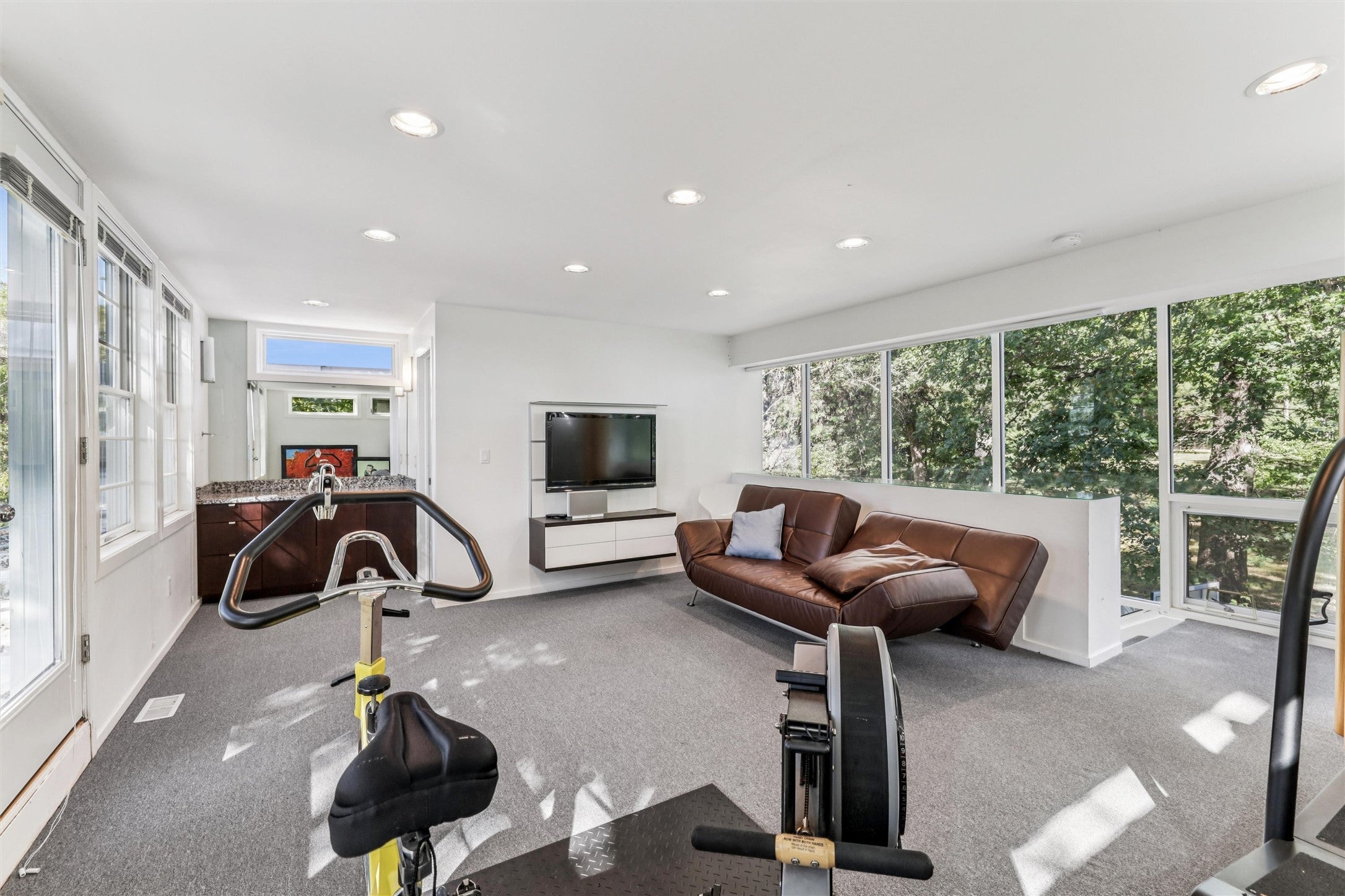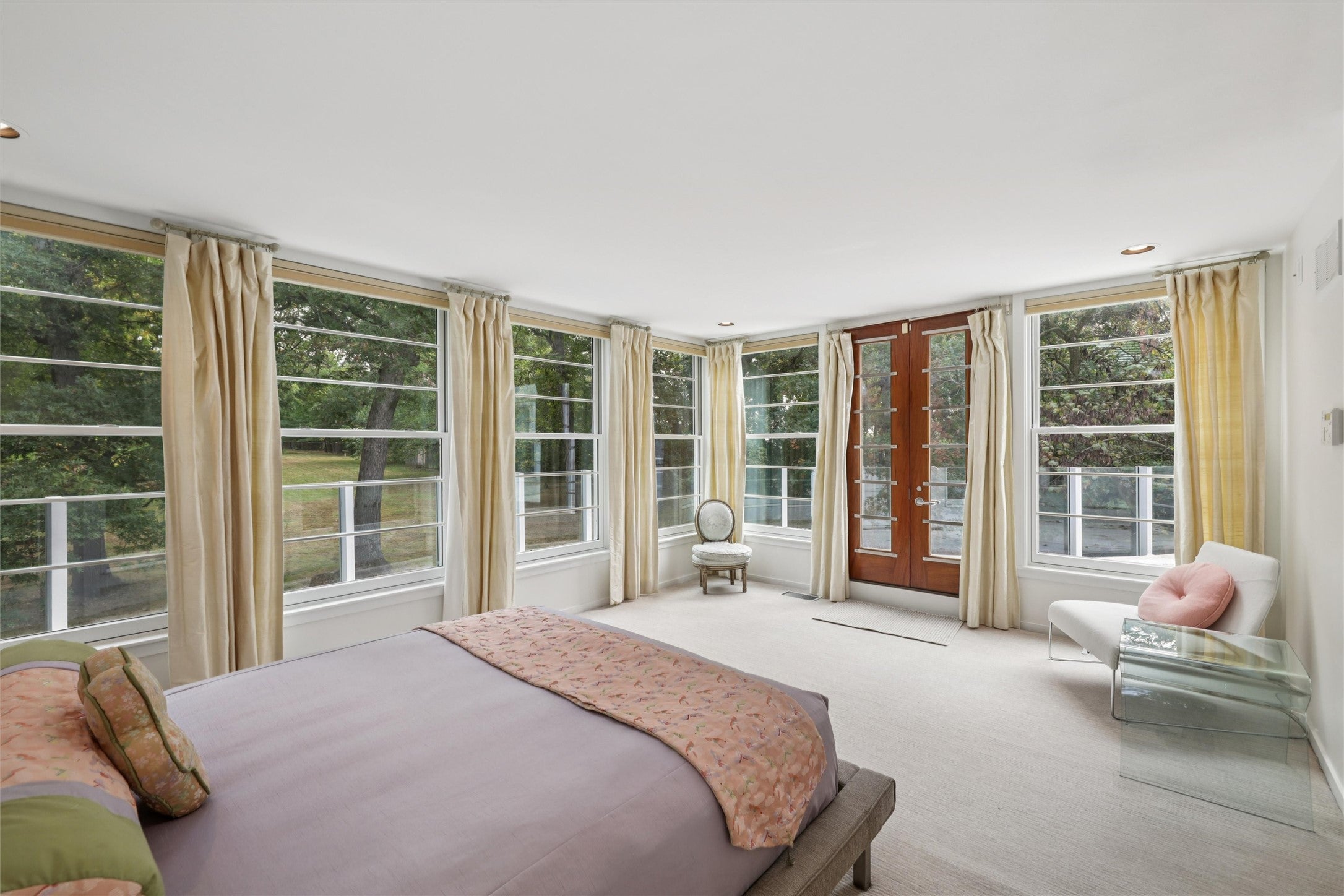 Rare find. International/Moderne architectural gem that was The Des Moines Register front page news in 1935. Spacious private lot, mature trees, picturesque views. Well-maintained gorgeous floor-to-ceiling glass, hardwood floors, modern amenities. Enter a glass door to a long foyer with views & storage or welcome guests to a central foyer. Grand living room features curved wall of glass, fireplace, 2 seating areas & dining area. Sunshine glasswall breakfast area with heated floor opens to a beautiful enclosed screen porch. Commercial kitchen has large SubZero fridge/freezer, dual wall ovens, gas cooktop, commercial vent & bath. Main floor includes cozy library with hand carved woodwork, 2nd fireplace, bedroom/office with views & powder room ( bath). 2nd story features five bedrooms. Main stairwell leads to a large landing. Primary suite boasts office, dressing area, bedroom overlooking backyard, walkout private glass balustrade terrace.En-suite has marble heated-tile floor, double shower, tub, dual floating vanity, floating toilet. 2nd floor also has 3 spacious bedrooms with views, bath, laundry room. A glass-walled back stairwell leads to guest wing large 6th bedroom with sunrise/sunset views, 3/4 bath. Basement features rec/game room, storage & 2nd laundry room. Backyard has excellent potential for pool/poolhouse & charming barn that could become an art studio.Other features: tri-zone HVAC, large water heater, 2nd detached garage, electric shades, loads of green space.