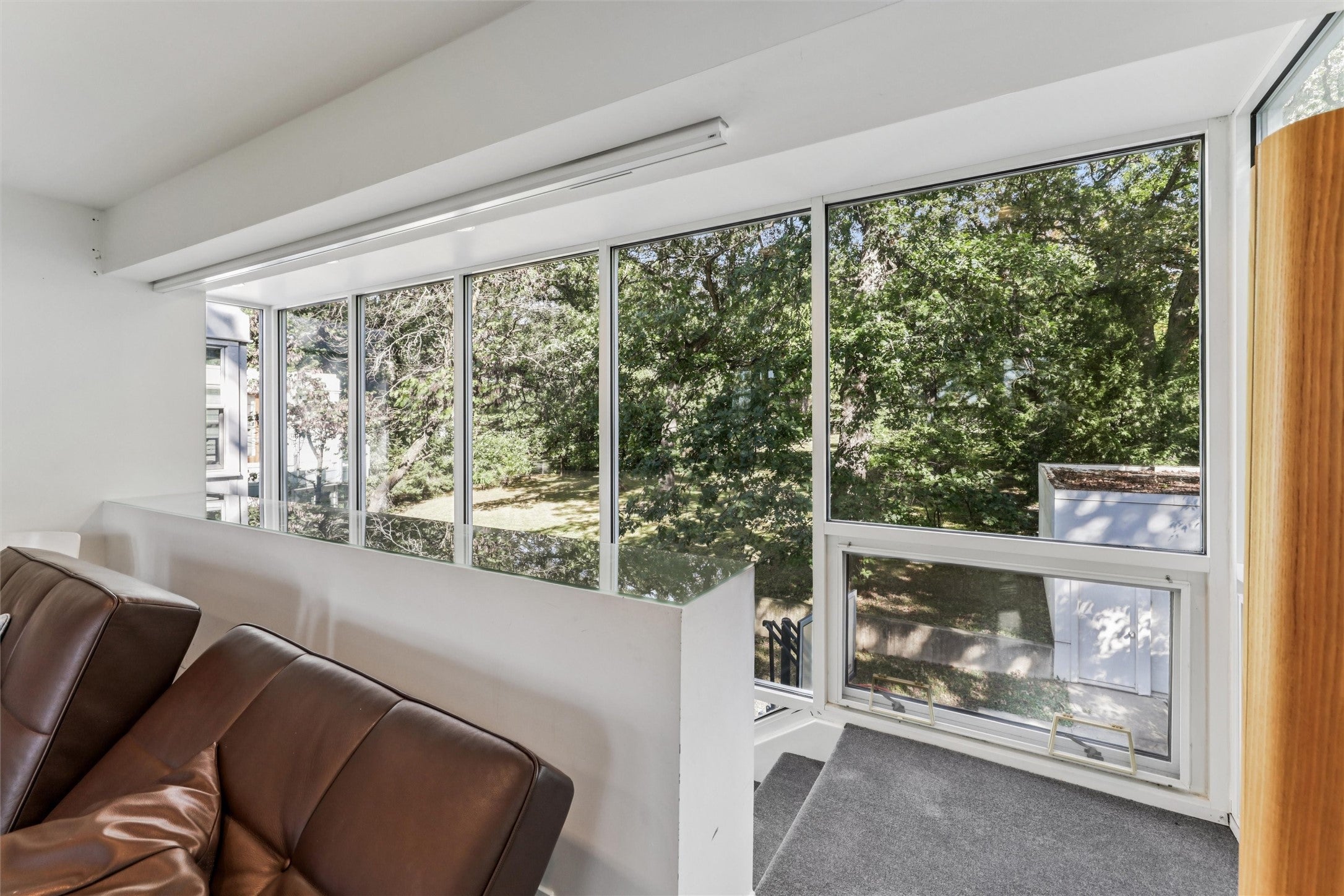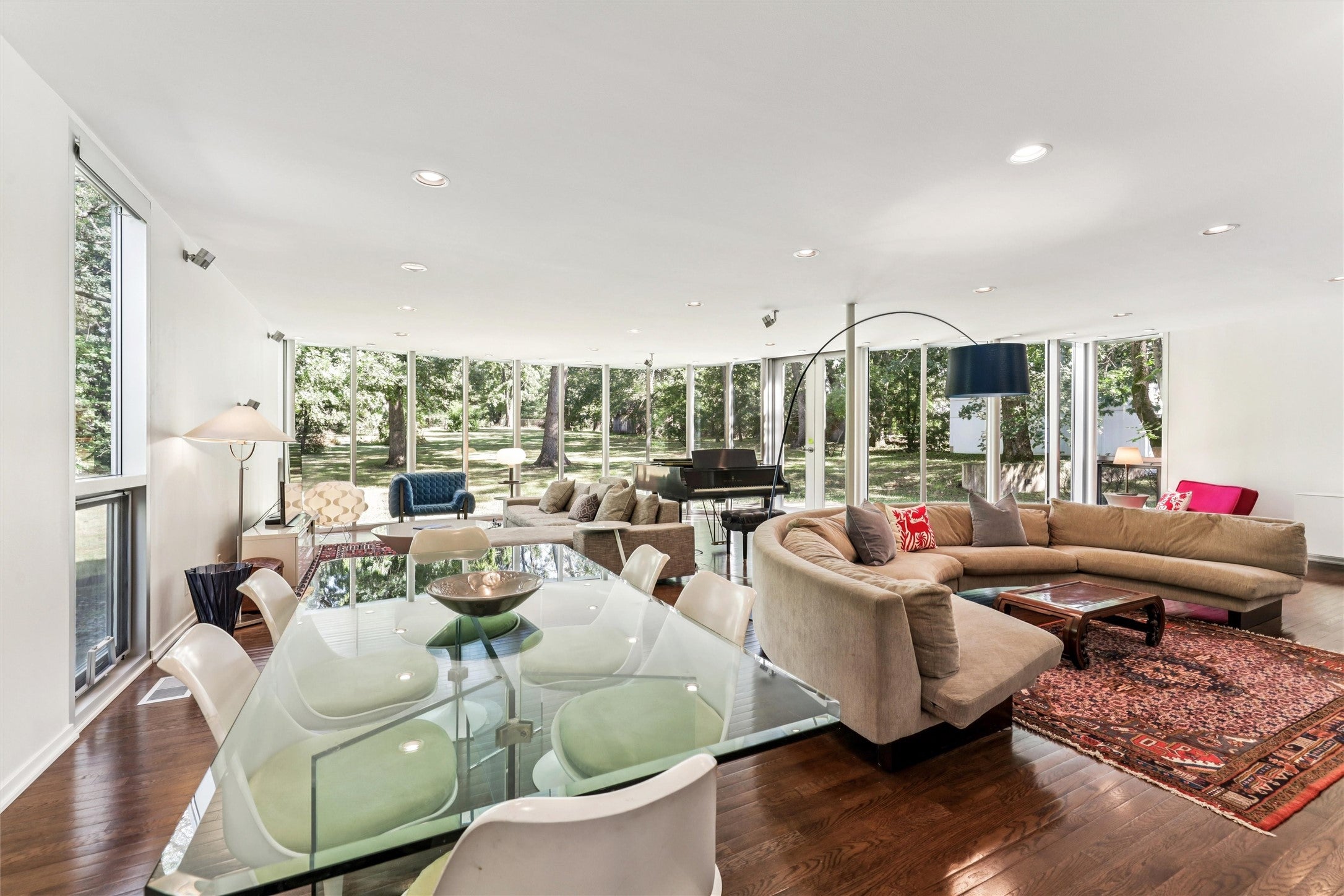 Rare find. International/Moderne architectural gem that was The Des Moines Register front page news in 1935. Spacious private lot, mature trees, picturesque views. Well-maintained gorgeous floor-to-ceiling glass, hardwood floors, modern amenities. Enter a glass door to a long foyer with views & storage or welcome guests to a central foyer.