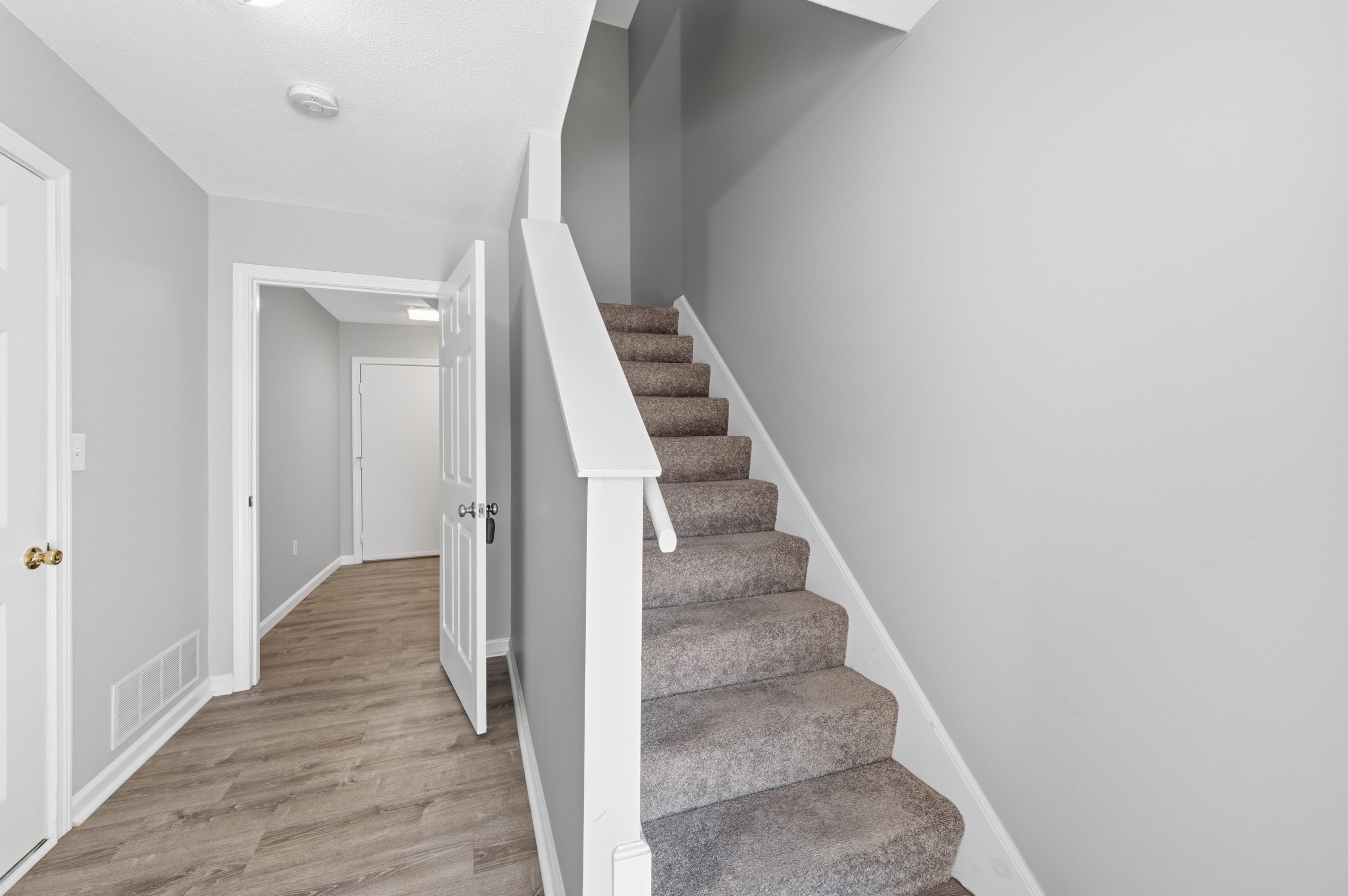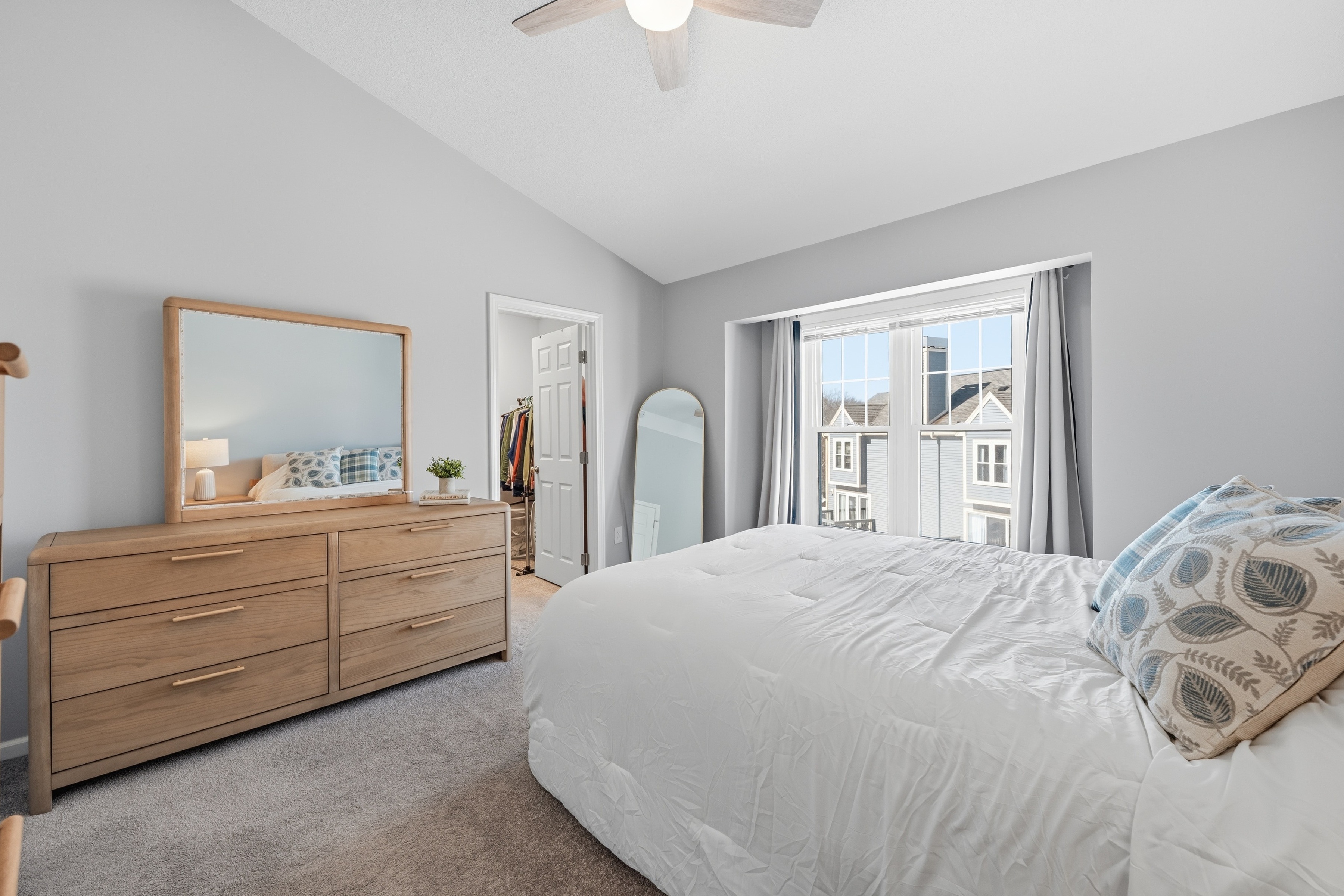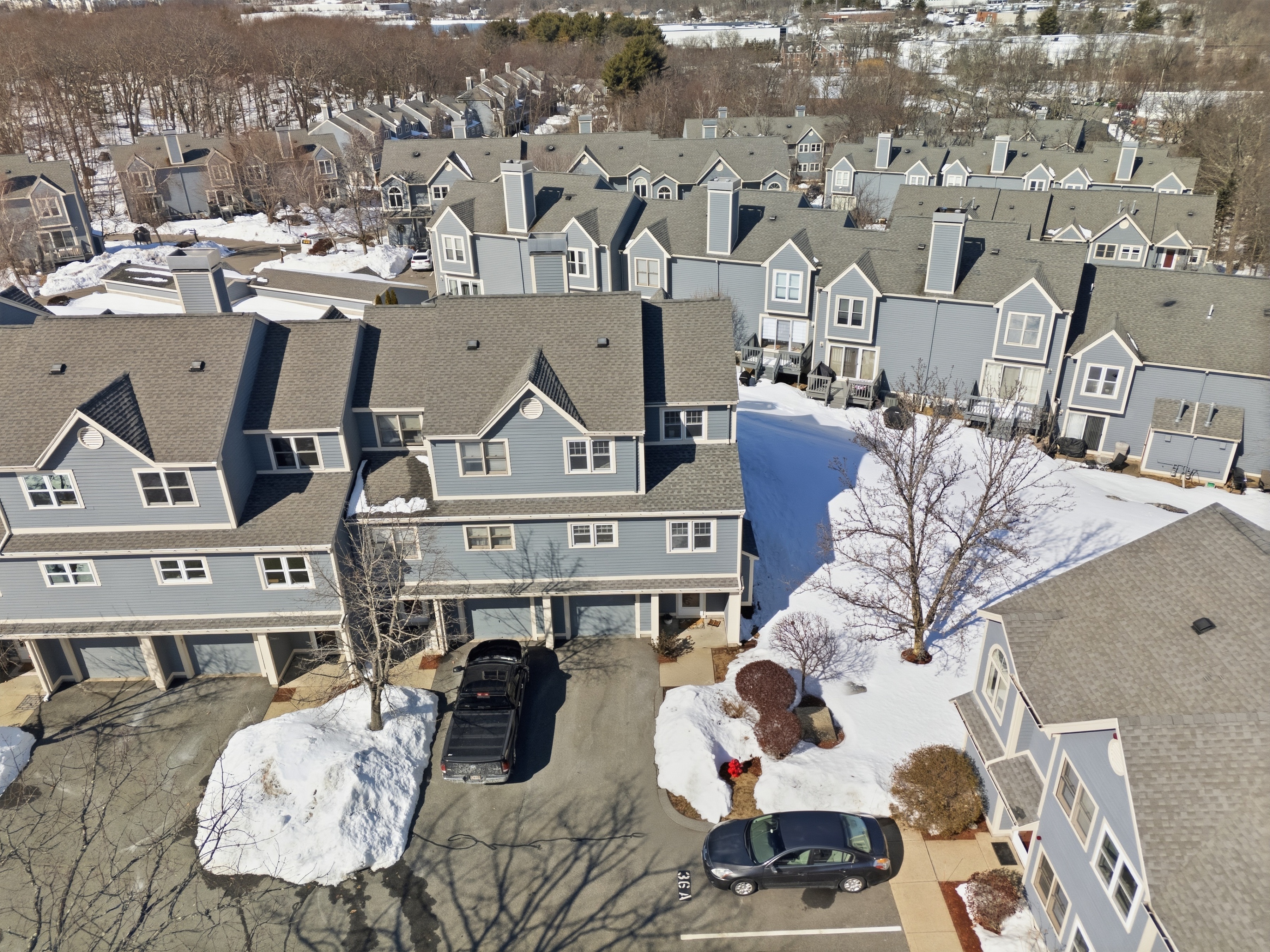 Pride of ownership shines in this rare opportunity to own a private end-unit townhouse at the very back of the desirable Stoneybrook complex, with no units behind you and peaceful surroundings. Inside, the home feels bright and open with a beautifully renovated vaulted-ceiling kitchen featuring quartz countertops, white shaker cabinetry, stainless steel appliances, recessed lighting, and a large pantry, plus a sunny dining area. The spacious and bright living room opens to a private deck—perfect for morning coffee or entertaining. Upstairs are two generous bedrooms with soaring ceilings, including a primary bedroom with a walk-in closet. Both baths have been refreshed with new flooring and upgraded vanities. Major updates include a brand-new water heater, furnace and central air in 2023, adding comfort and efficiency. The lower level offers a one-car garage and laundry area, and residents enjoy access to the community in-ground pool. Move-in ready and easy to love. Come home today!