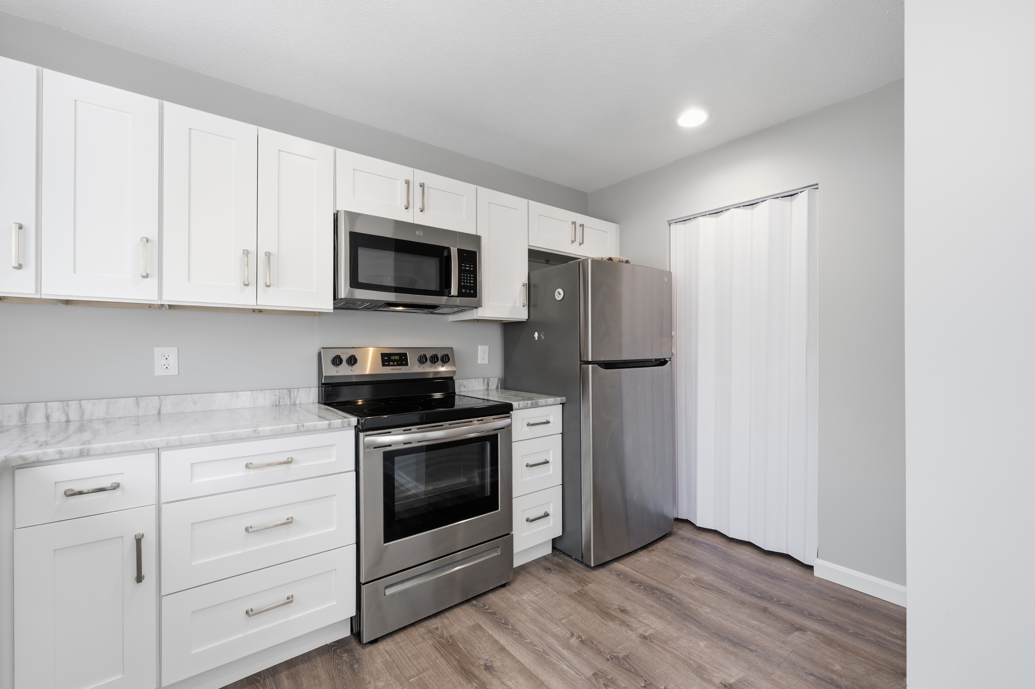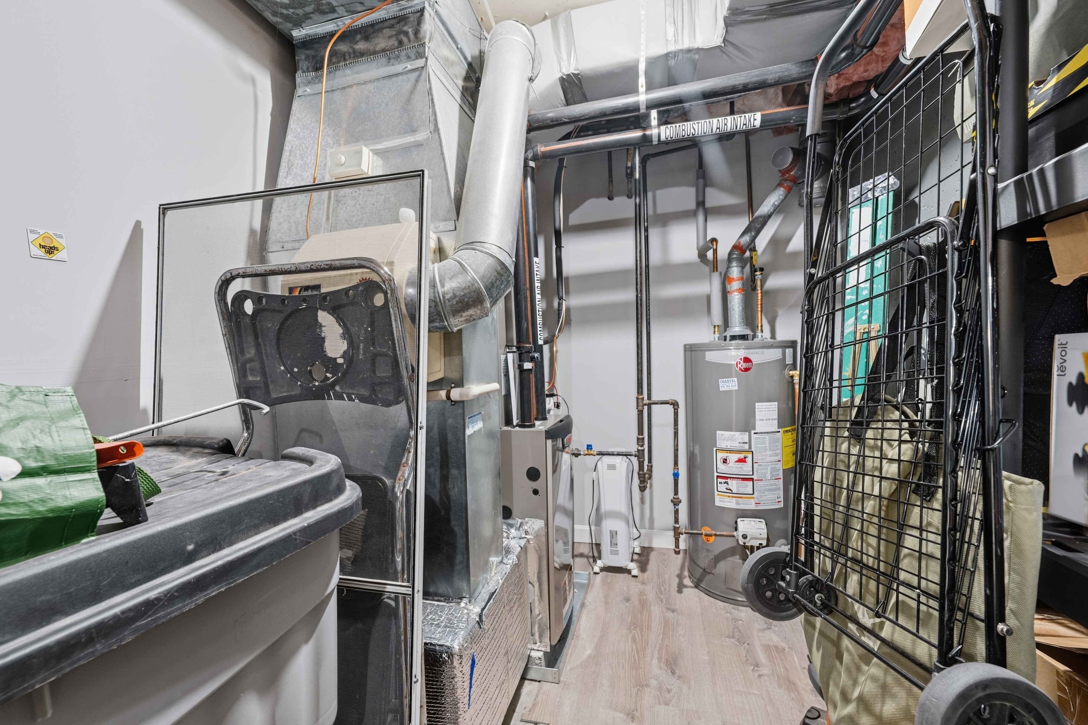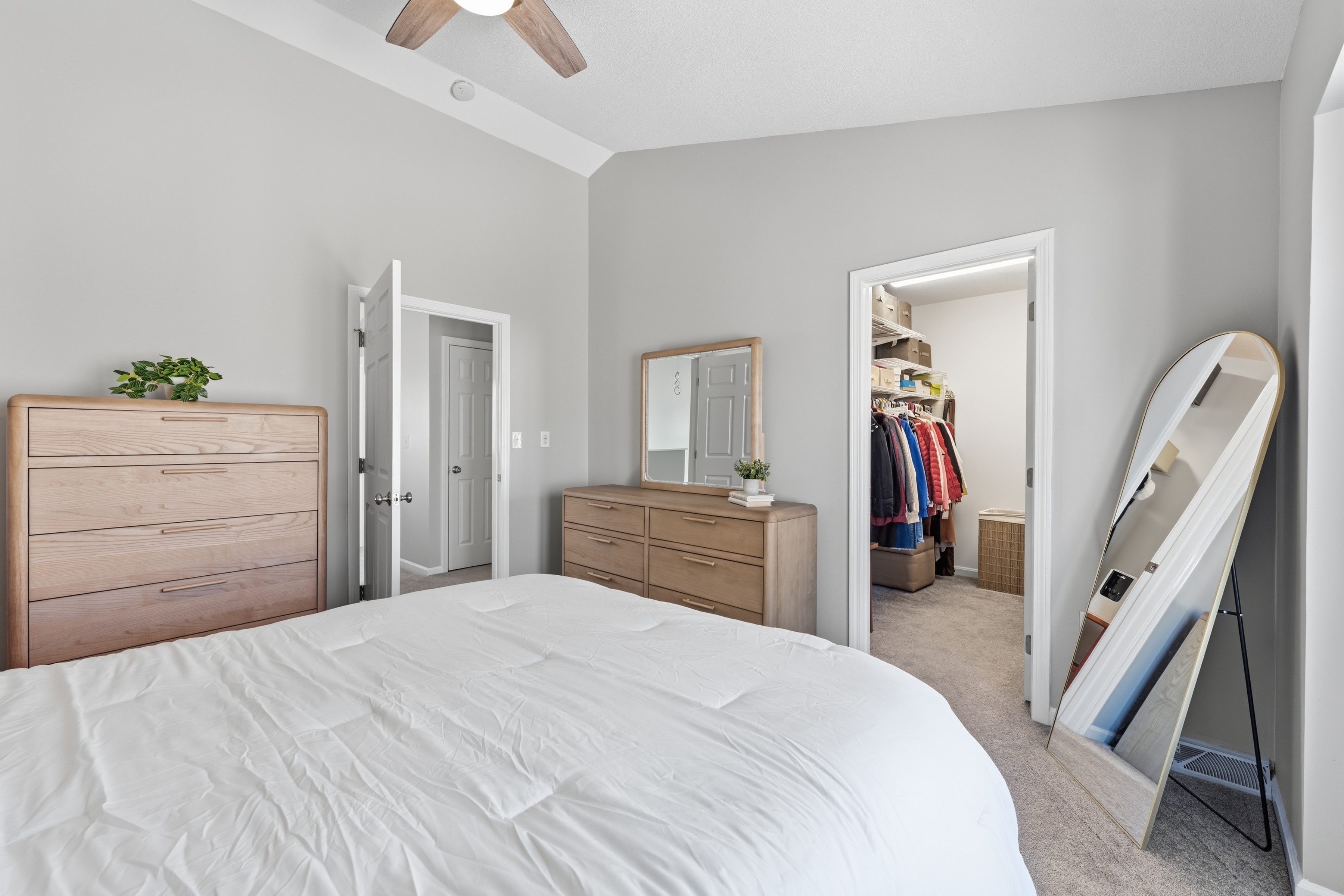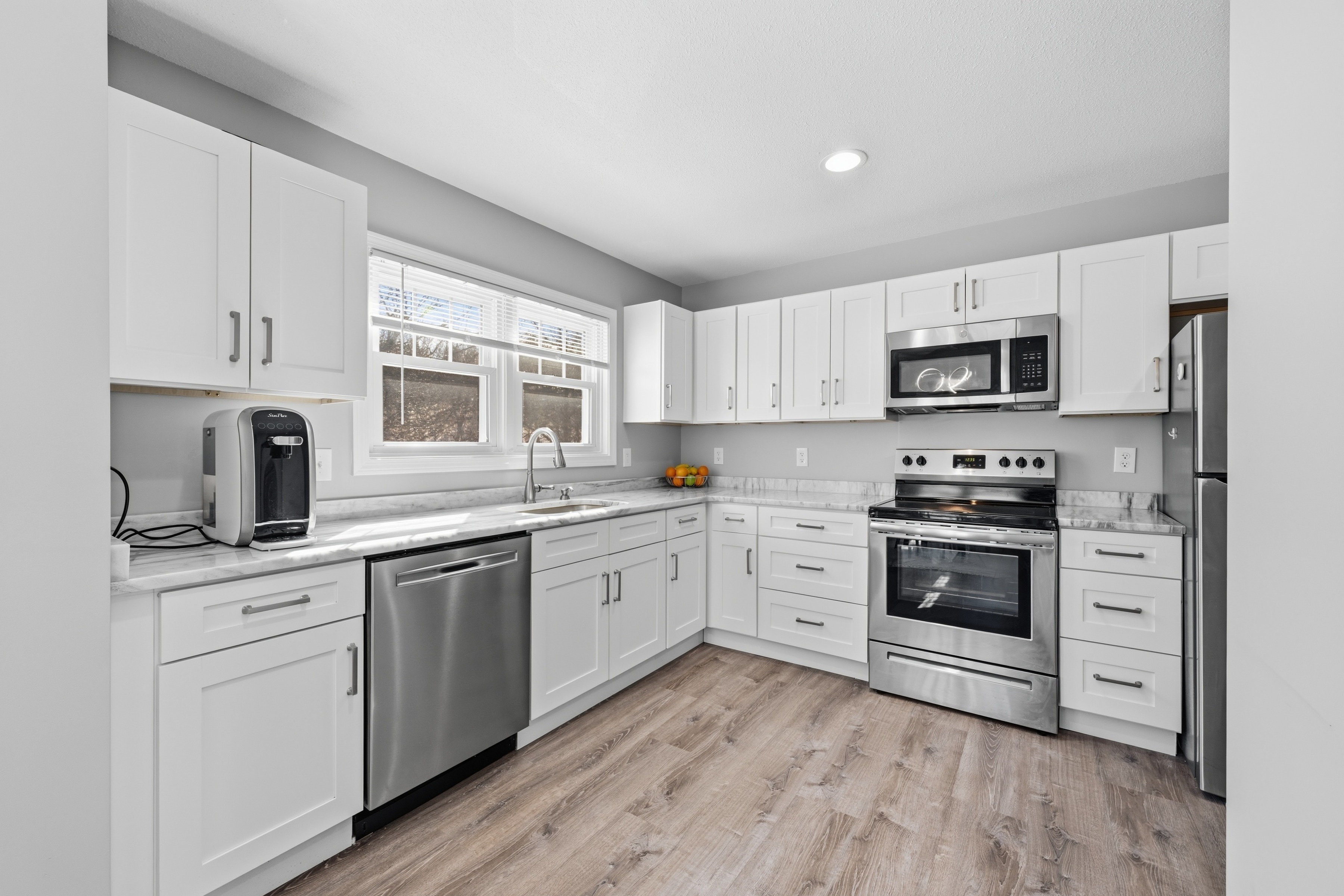 Pride of ownership shines in this rare opportunity to own a private end-unit townhouse at the very back of the desirable Stoneybrook complex, with no units behind you and peaceful surroundings. Inside, the home feels bright and open with a beautifully renovated vaulted-ceiling kitchen featuring quartz countertops, white shaker cabinetry, stainless steel appliances, recessed lighting, and a large pantry, plus a sunny dining area. The spacious and bright living room opens to a private deck—perfect for morning coffee or entertaining. Upstairs are two generous bedrooms with soaring ceilings, including a primary bedroom with a walk-in closet. Both baths have been refreshed with new flooring and upgraded vanities. Major updates include a brand-new water heater, furnace and central air in 2023, adding comfort and efficiency. The lower level offers a one-car garage and laundry area, and residents enjoy access to the community in-ground pool. Move-in ready and easy to love. Come home today!