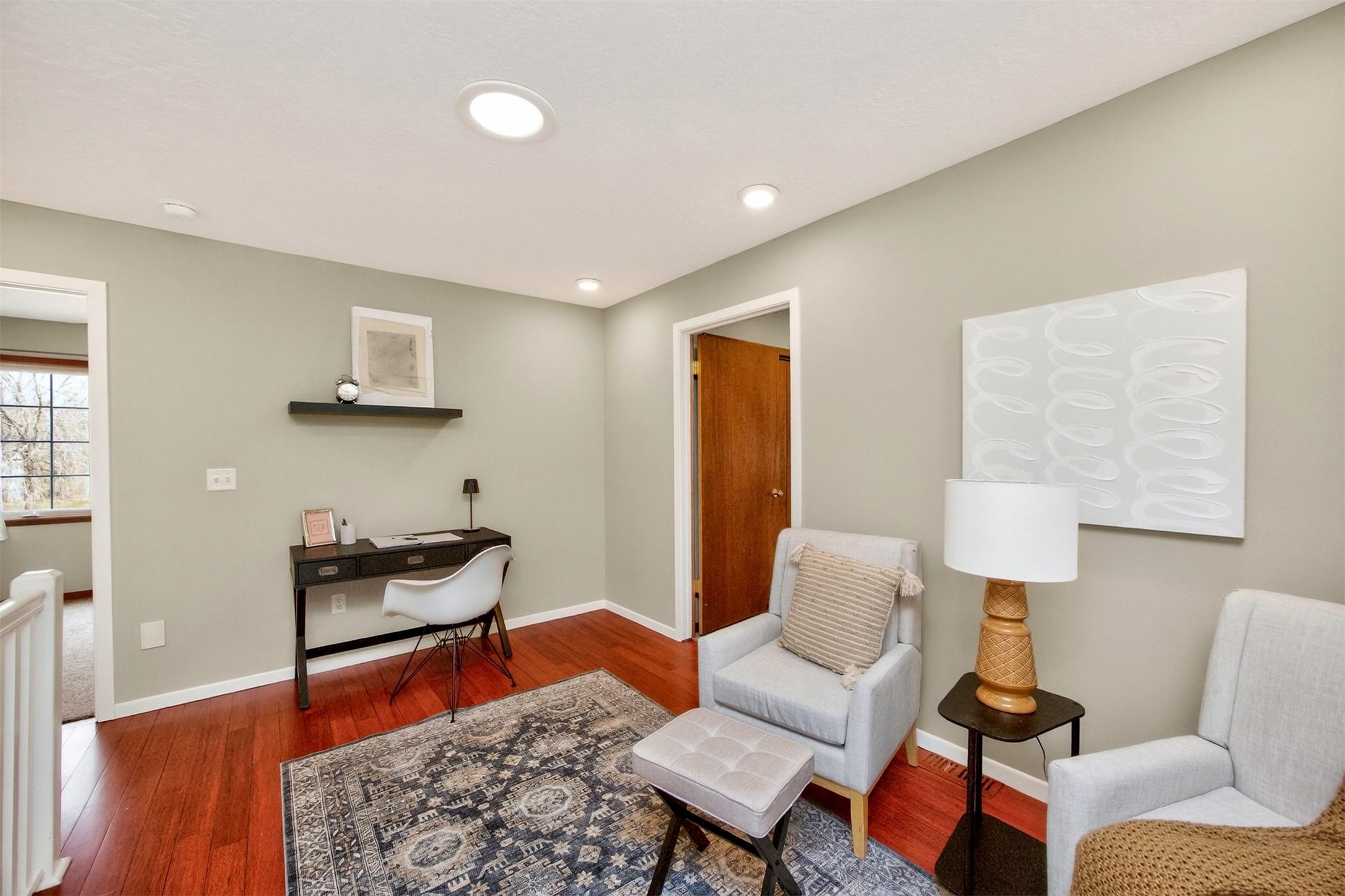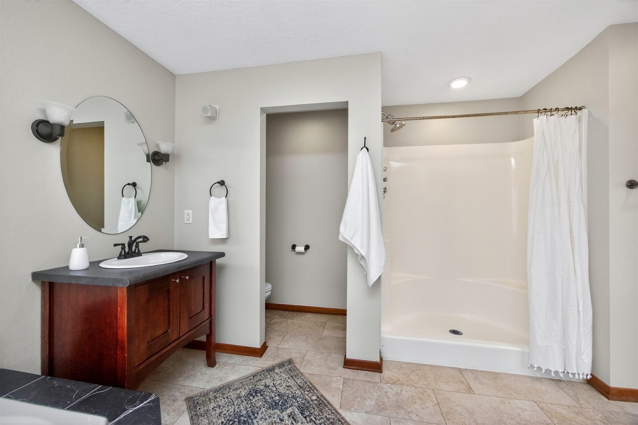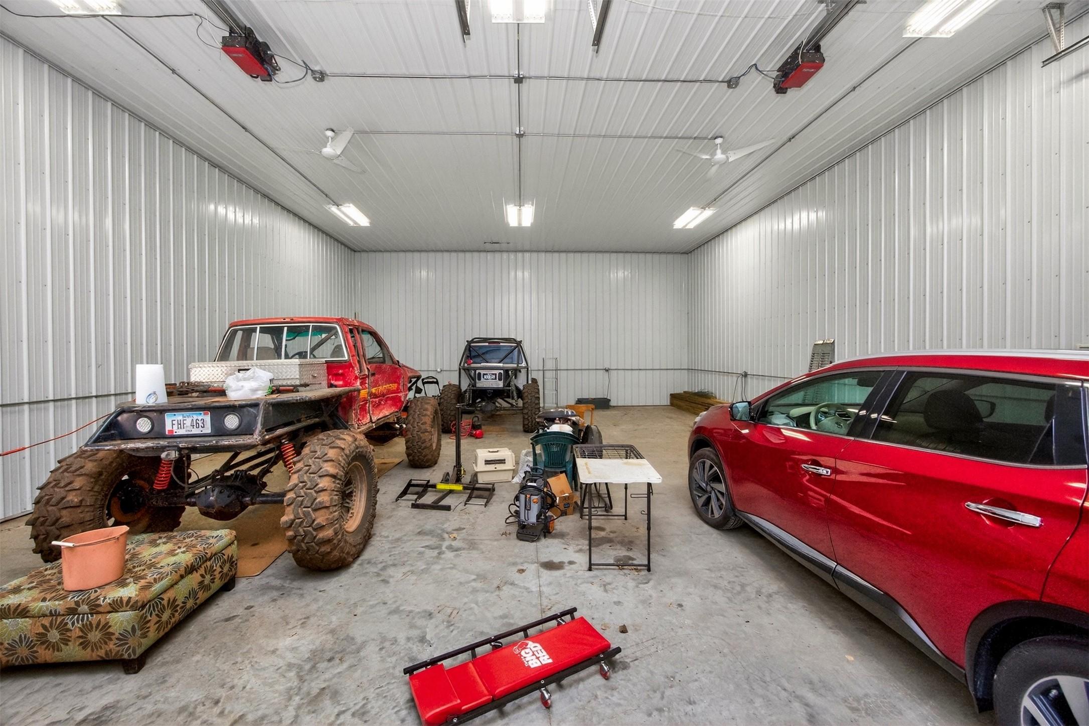 Rare opportunity to own a unique in-town acreage on .9 acres with exceptional amenities space both inside out. This property features an impressive 38x48 insulated outbuilding w/ 14-ft doors, electric, ready for heat perfect for hobbies, storage or a workshop. In addition to the 2-car attached garage, youll find an extra garage at the walkout level ideal for lawn equipment for added convenience. The main floor has been beautifully remodeled, showcasing a stunning kitchen w/ hardwood floors, solid core doors, gas stove center island--perfect for entertaining everyday living. Additional highlights include geothermal heating, plumbed for central vac thoughtful updates throughout. Upstairs enjoy the convenience of 2nd floor laundry, a versatile loft area generously sized bedrooms--each w/ its own private bath. Step outside to relax on the new deck or unwind in the screened porch, all surrounded by mature trees that provide a peaceful, private setting just minutes from town and award winning Johnston schools.