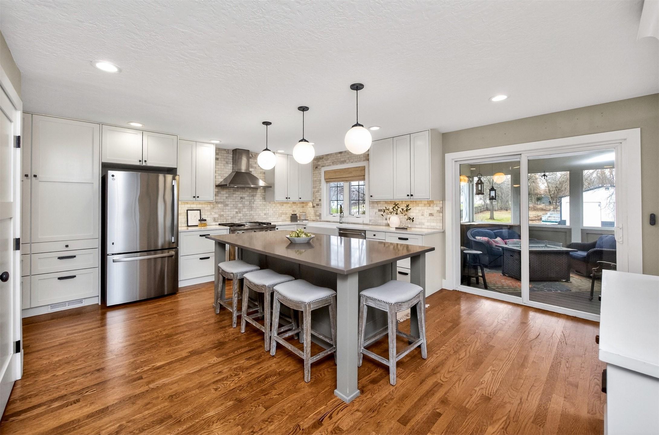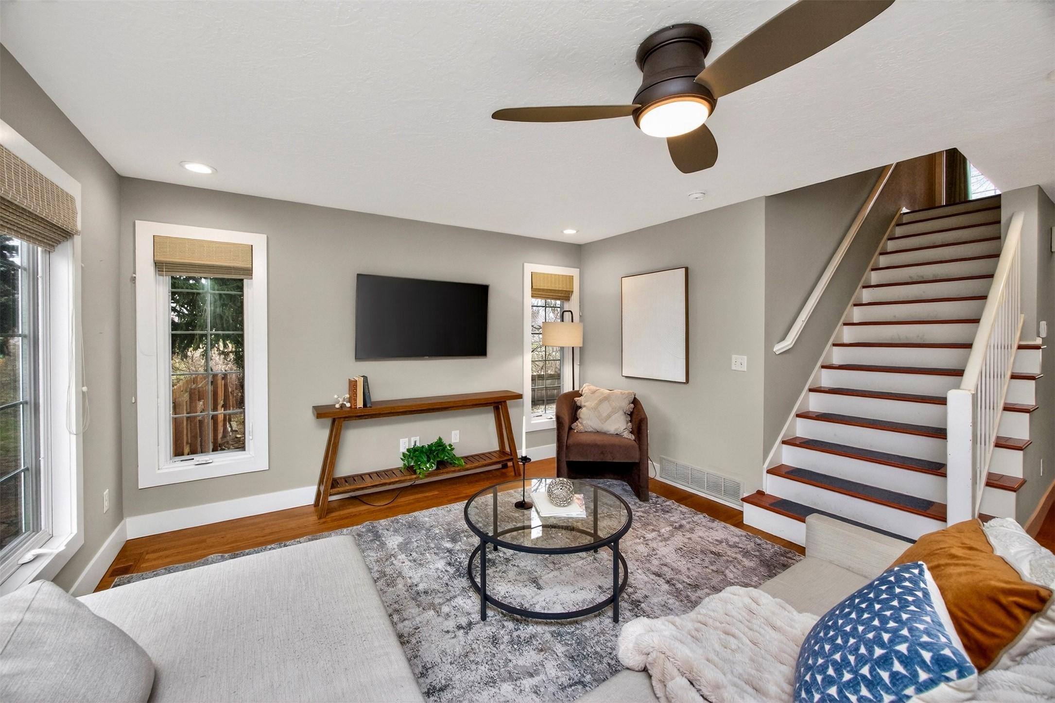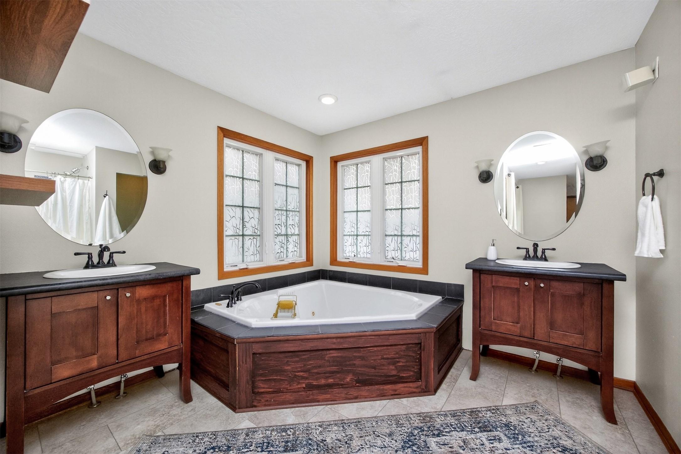 Rare opportunity to own a unique in-town acreage on .9 acres with exceptional amenities space both inside out. This property features an impressive 38x48 insulated outbuilding w/ 14-ft doors, electric, ready for heat perfect for hobbies, storage or a workshop. In addition to the 2-car attached garage, youll find an extra garage at the walkout level ideal for lawn equipment for added convenience. The main floor has been beautifully remodeled, showcasing a stunning kitchen w/ hardwood floors, solid core doors, gas stove center island--perfect for entertaining everyday living. Additional highlights include geothermal heating, plumbed for central vac thoughtful updates throughout. Upstairs enjoy the convenience of 2nd floor laundry, a versatile loft area generously sized bedrooms--each w/ its own private bath. Step outside to relax on the new deck or unwind in the screened porch, all surrounded by mature trees that provide a peaceful, private setting just minutes from town and award winning Johnston schools.