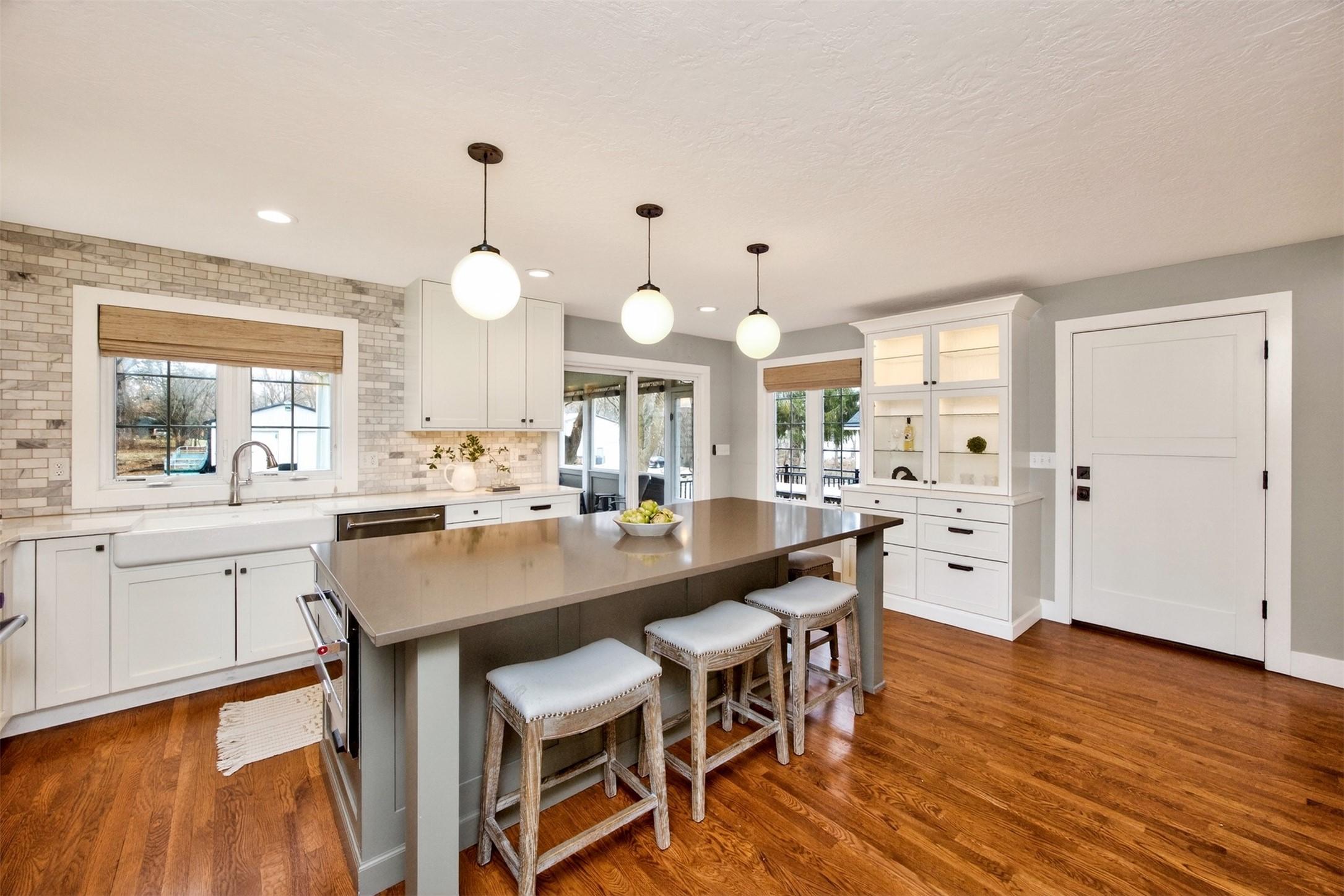 Must see three-bedroom, three-bathroom, 2900 square-foot home on Pine Island Lake with 410 feet of frontage. The main level of the home features a large wraparound deck with composite decking, great views from the kitchen and living area, including three sliding glass doors to the deck.