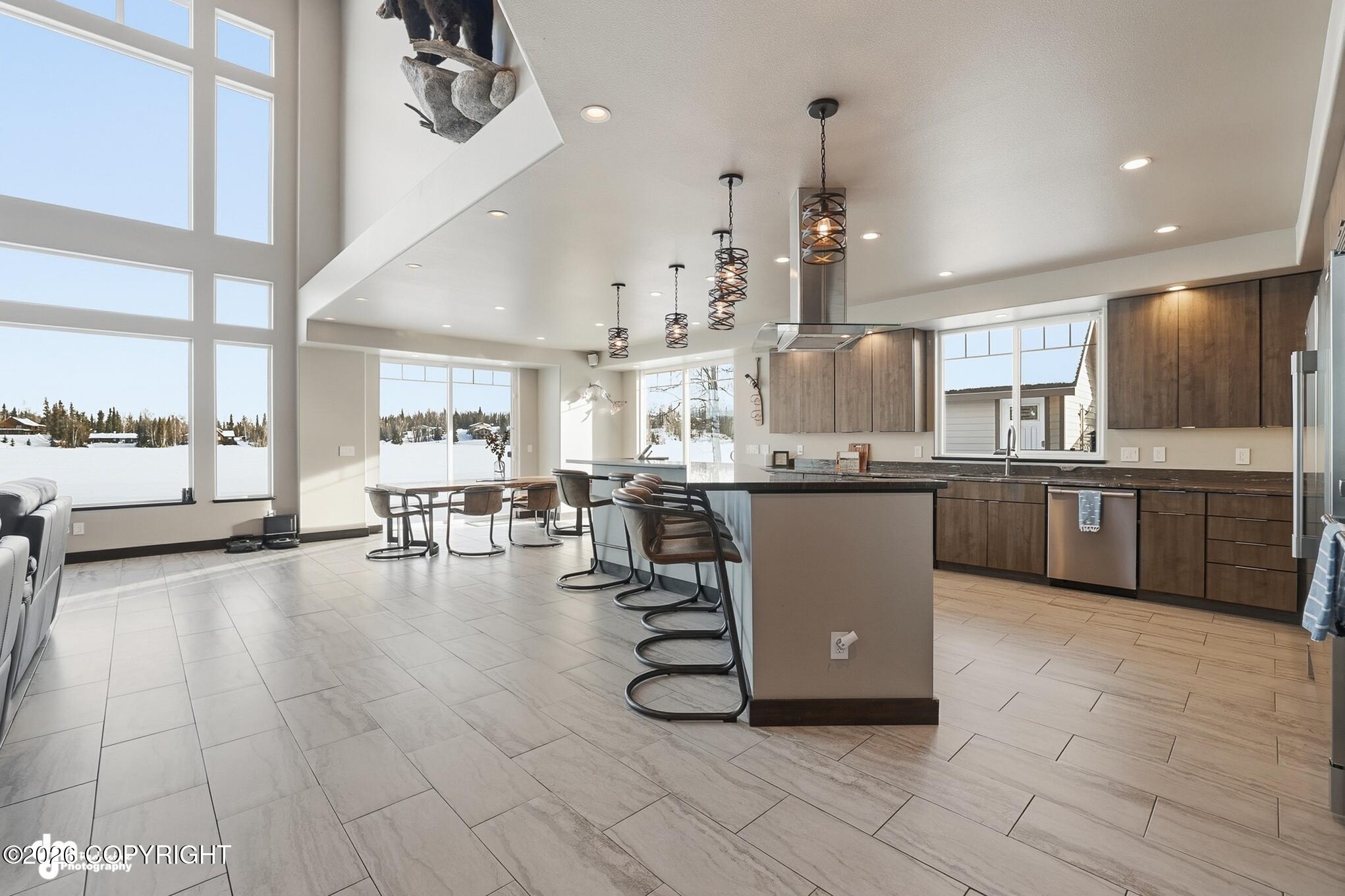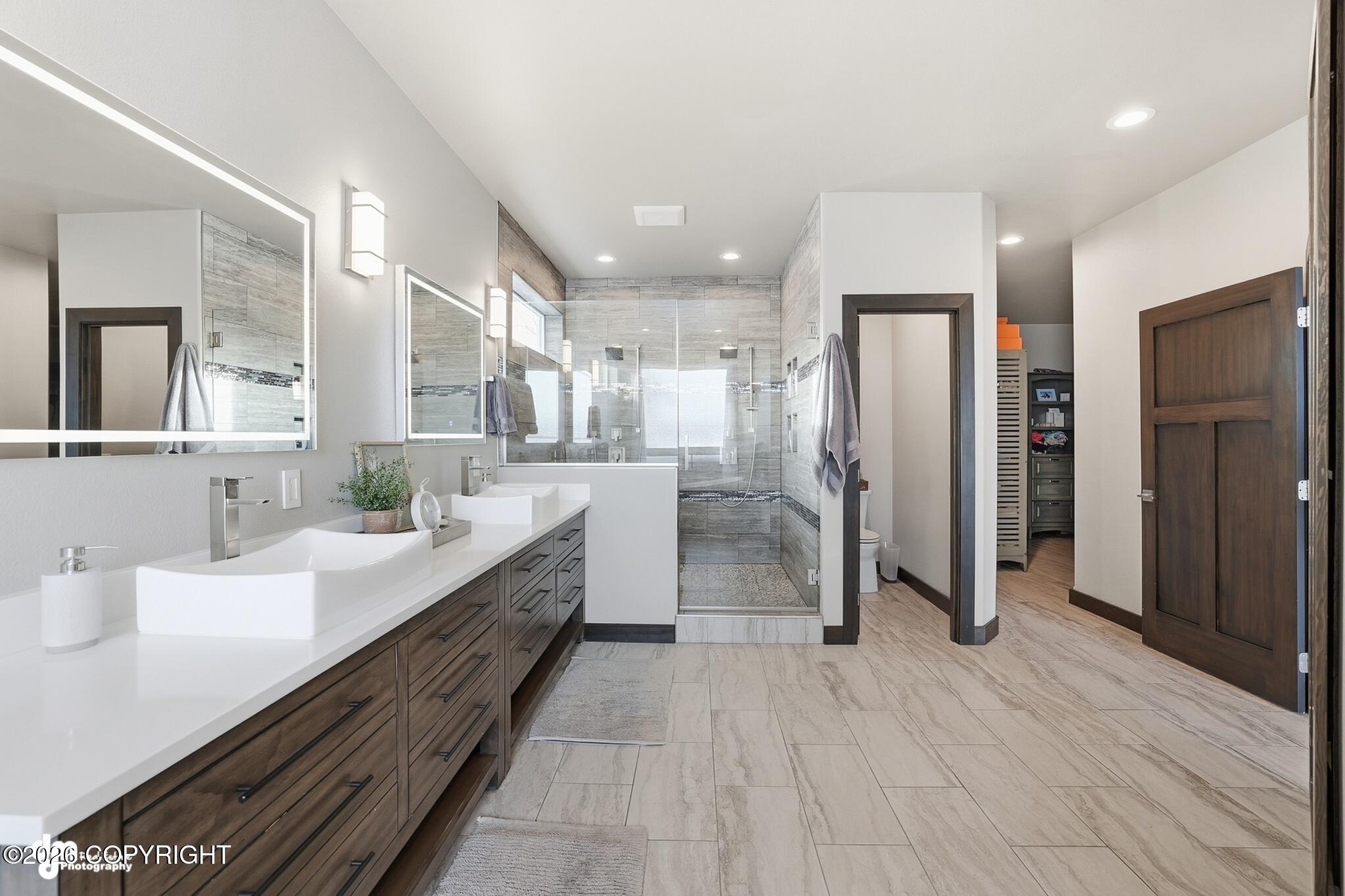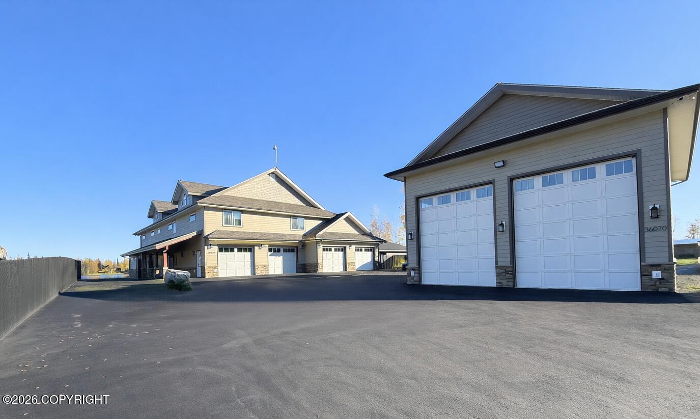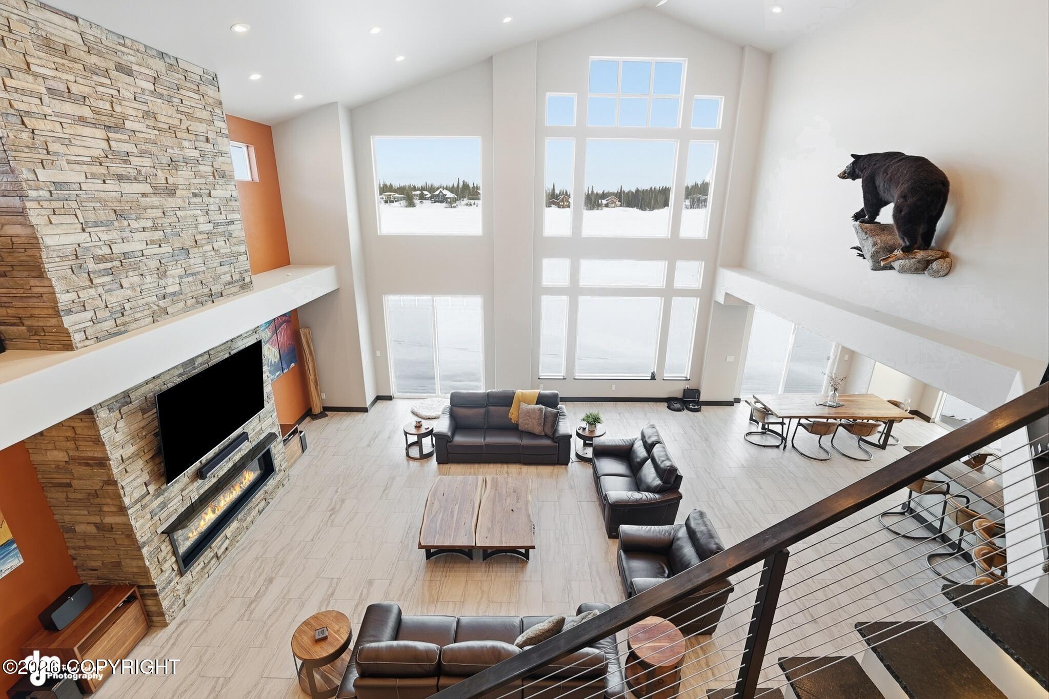 Experience luxury lakefront living on the shores of Longmere Lake in this 100% custom-built home offering 5,676 SF with 5 bedrooms, 6 baths-including 3 private ensuites. This home blends elevated comfort with unforgettable views. The primary suite on the main level is a true retreat, showcasing killer views & a spa-inspired bath complete with walk-in double shower, soaking tub & walk-in closet. The open-concept living, dining & kitchen areas are flooded with natural light & framed by breathtaking lake views. The living room boasts 24' vaulted ceilings, custom granite stairs with chiseled edges & a stunning full-height stone fireplace that anchors the space with warmth and style. The chef's kitchen is equally remarkable, featuring high-end features, bar top seating, 2 dishwashers, a side-by-side full freezer & refrigerator unit, an induction cooktop, and an oversized walk-in pantry. Enjoy over 1,400 SF of deck with a hot tub, plus a 960 SF private dock for ultimate lakefront living. Additional features include a main-floor office with French doors, spacious great room with wet bar, two laundry rooms, attached 4-car garage & a detached 1,320 SF shop with 12' x14' overhead doors. Exceptional craftsmanship, storage galore & premier lakefront lifestyle - this home is truly special!