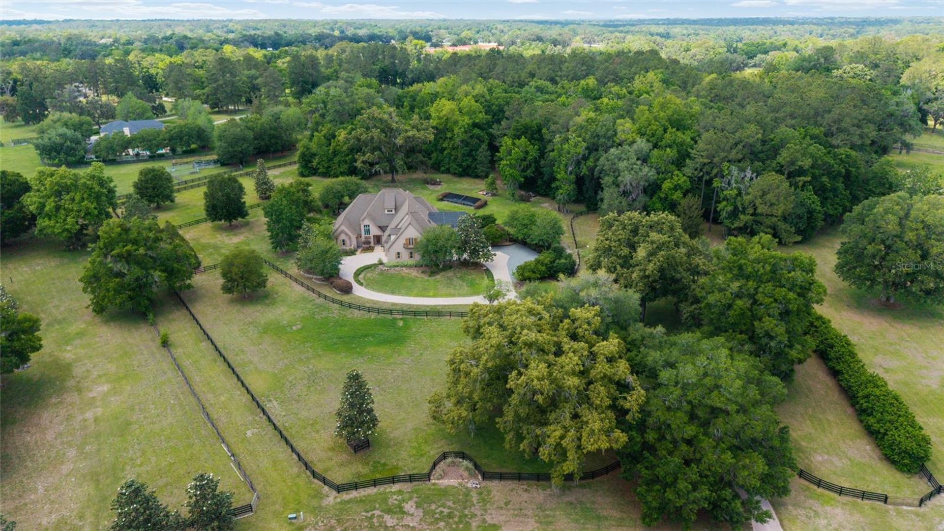 One or more photo(s) has been virtually staged. PRIVATE 10-ACRE ESTATE IN PANTHER RIDGEThis exceptional estate offers the ultimate in privacy and security, featuring its own private gate and a fully fenced 10-acre property. As you enter, a picturesque circular driveway and charming country-style front porch create a warm and inviting first impression.Step through the double glass doors into a bright and elegant living room, where large French doors frame stunning views of the pool and outdoor living space. The formal dining room is beautifully accented with architectural arches, adding timeless character. A front-facing bedroom provides the perfect opportunity for a private office or guest suite.The heart of the home is the spacious kitchen, designed for both functionality and entertaining. It opens seamlessly to the family room and features double wall ovens, a large custom pantry, a central island, and an expansive eat-in area surrounded by oversized windows. The family room boasts soaring ceilings and a gorgeous wood-burning fireplace, with French doors leading directly to the pool area for effortless indoor-outdoor living.The primary suite is a peaceful retreat, complete with French doors, dual closets, and a spacious en-suite bathroom featuring a Jacuzzi tub, walk-in shower, and dual vanities. This home also offers a rare second primary suite on the main level, with its own private bathroom including a Jacuzzi tub and walk-in showerideal for multi-generational living or extended guests.Additional living space includes multiple guest bedrooms, two upstairs bedrooms with a shared bathroom, and a large bonus room. A unique feature under the staircase includes a custom-built space designed to accommodate a 30-gallon aquarium.Built with safety and resilience in mind, the home includes a reinforced concrete hurricane shelter with solid poured walls, a reinforced ceiling, and exterior locking doors. Additional features include hurricane-impact window film, a full security system with internet protocol cameras, and a commercial-grade Generac liquid-cooled QuietSource 25kW standby generator, supported by a 1,000-gallon propane tankcapable of powering the home for weeks.The property also features a fenced dog run and is perfectly suited for animal lovers.The 10-acre grounds are truly breathtaking, complete with a stocked pond for fishing and a large barn 30x 40. Located in the sought-after Panther Ridge community, residents enjoy access to scenic horse and walking trails. This equestrian-friendly neighborhood welcomes horses and chickens (no roosters), cows, offering a true country lifestyle while remaining just minutes from shopping, dining, and everyday conveniences.