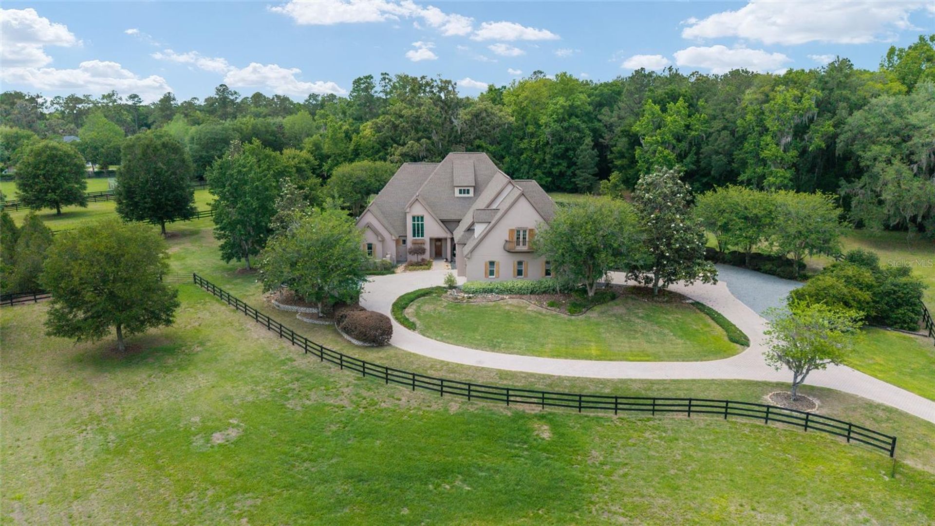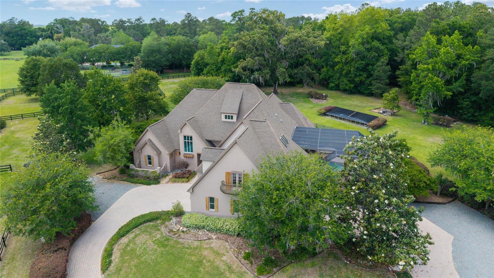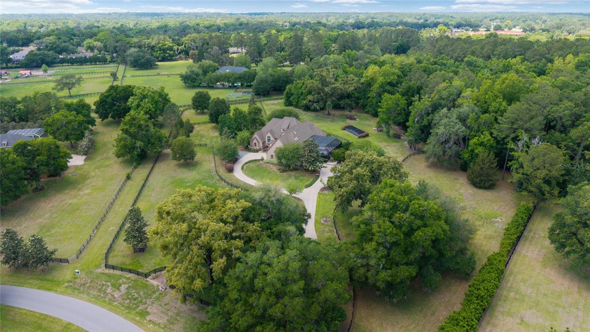 Nestled within the prestigious Country Club Farms and set across more than 5 private acres, this exceptional custom estate offers a rare blend of refined luxury, thoughtful design, and equestrian-friendly living — all just minutes from downtown Ocala, championship golf, the Country Club of Ocala, and top-rated schools. With bridle trail access woven throughout the community and the option to acquire an additional neighboring 6 acres, this property presents a truly rare opportunity to create a private legacy estate in one of Ocala’s most coveted settings. Built with enduring quality and timeless craftsmanship, the residence features 10-foot ceilings, extensive crown molding, solid-core doors throughout, 40-year architectural shingles, surround sound, and an abundance of custom storage and closet space. A private residential elevator connects both levels, offering ease and accessibility while enhancing the home’s sense of quiet luxury. The heart of the home is a beautifully appointed chef’s kitchen, complemented by a butler’s pantry and flowing seamlessly into the formal dining room and an elegant study or library with a gas fireplace, ideal for intimate gatherings or peaceful evenings. The expansive family room offers a second fireplace, while a separate living or game room opens directly to the outdoor entertaining spaces, creating a natural flow between indoor and outdoor living. The primary suite is privately situated on the first floor, creating a serene retreat, and is joined by an additional guest bedroom and full bath on the main level. Upstairs, three additional ensuite bedrooms and a theater room, which may also serve as a playroom, den, or flexible bonus space, provide exceptional comfort and versatility for family and guests alike. Outdoors, the estate transforms into a private resort-style sanctuary. A solar-heated saltwater pool is surrounded by pavered patios, fire pit seating, and screened entertaining areas, all framed by mature landscaping and tranquil views that offer privacy and serenity in every direction. Designed for both luxury and function, the property also includes a four-car garage, a full-house generator, a whole-home water filtration system, and two private wells — one dedicated to irrigation and one servicing the residence. Recent upgrades include three new air conditioning systems in 2024, a new water heater in 2024, a new dishwasher in 2024, a new washer in 2025, and a new dryer in 2024, offering peace of mind and modern efficiency. The property is fully fenced and thoughtfully designed with paddocks, a dog run, and direct bridle trail access, making it ideally suited for equestrian living while remaining just minutes from modern conveniences. This is not simply a home — it is a refined estate where privacy, elegance, and lifestyle converge in perfect harmony.