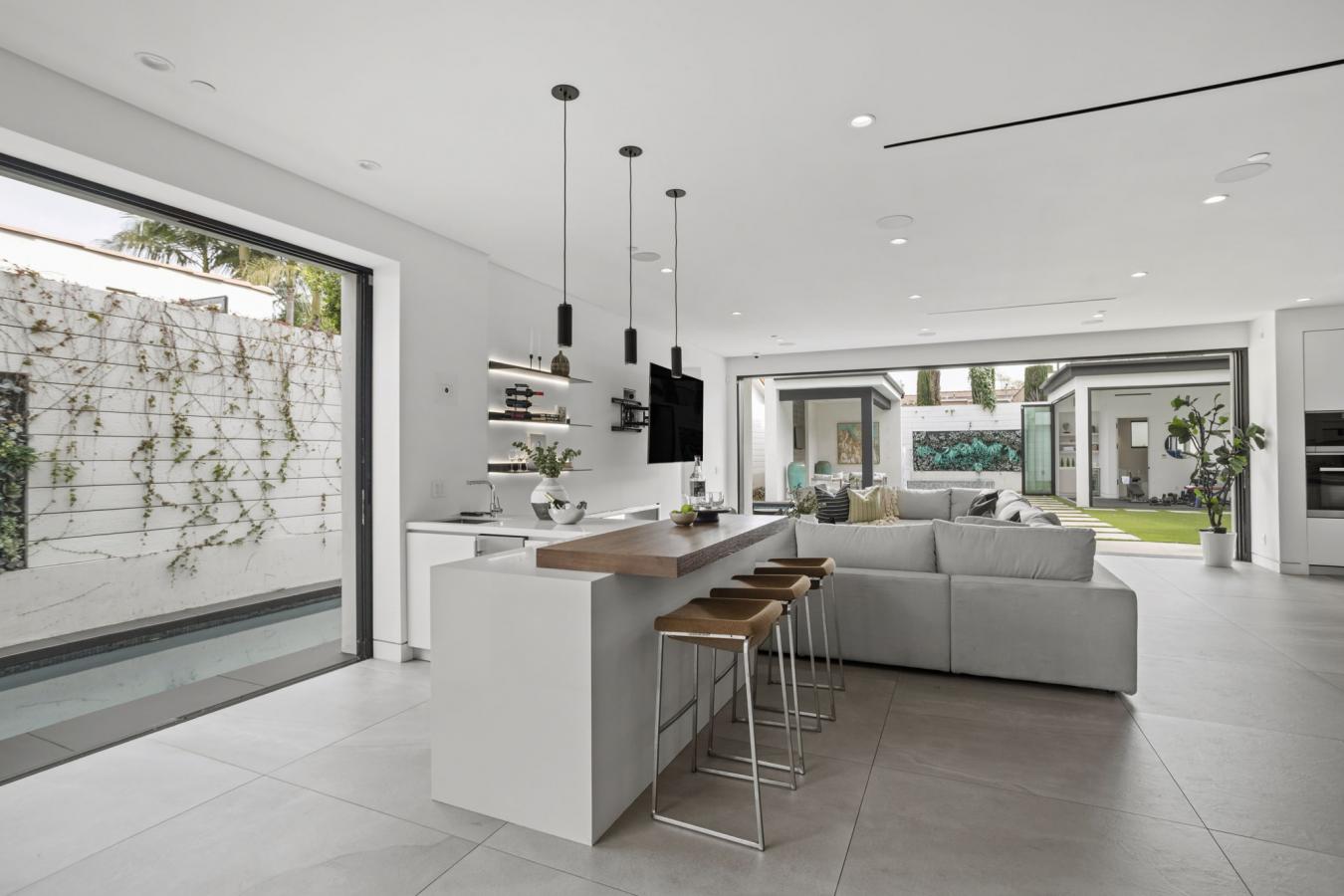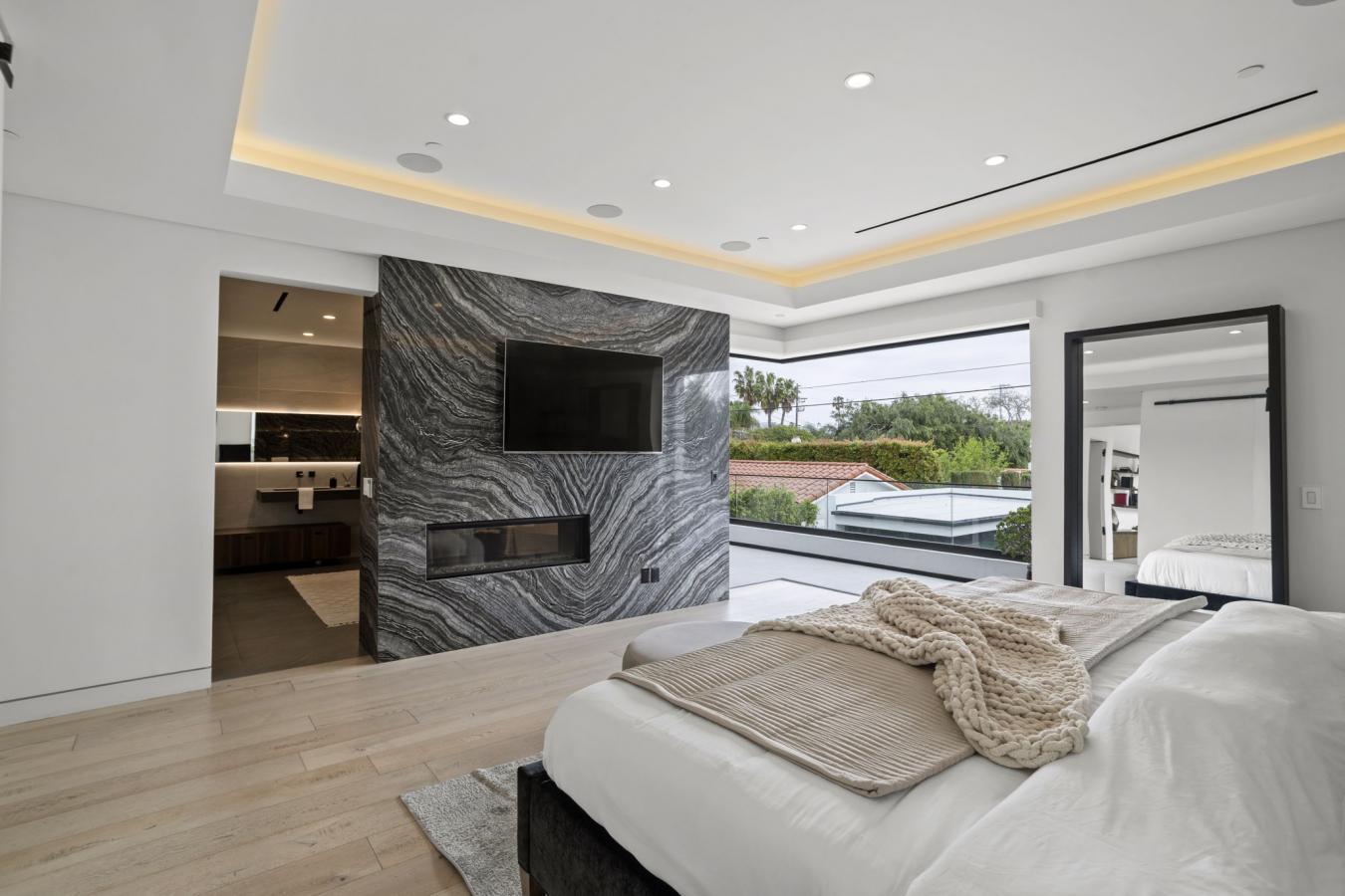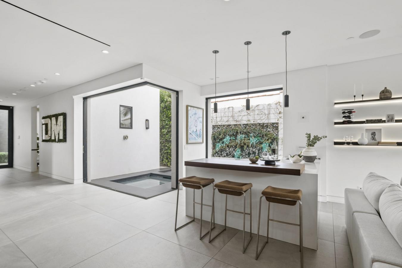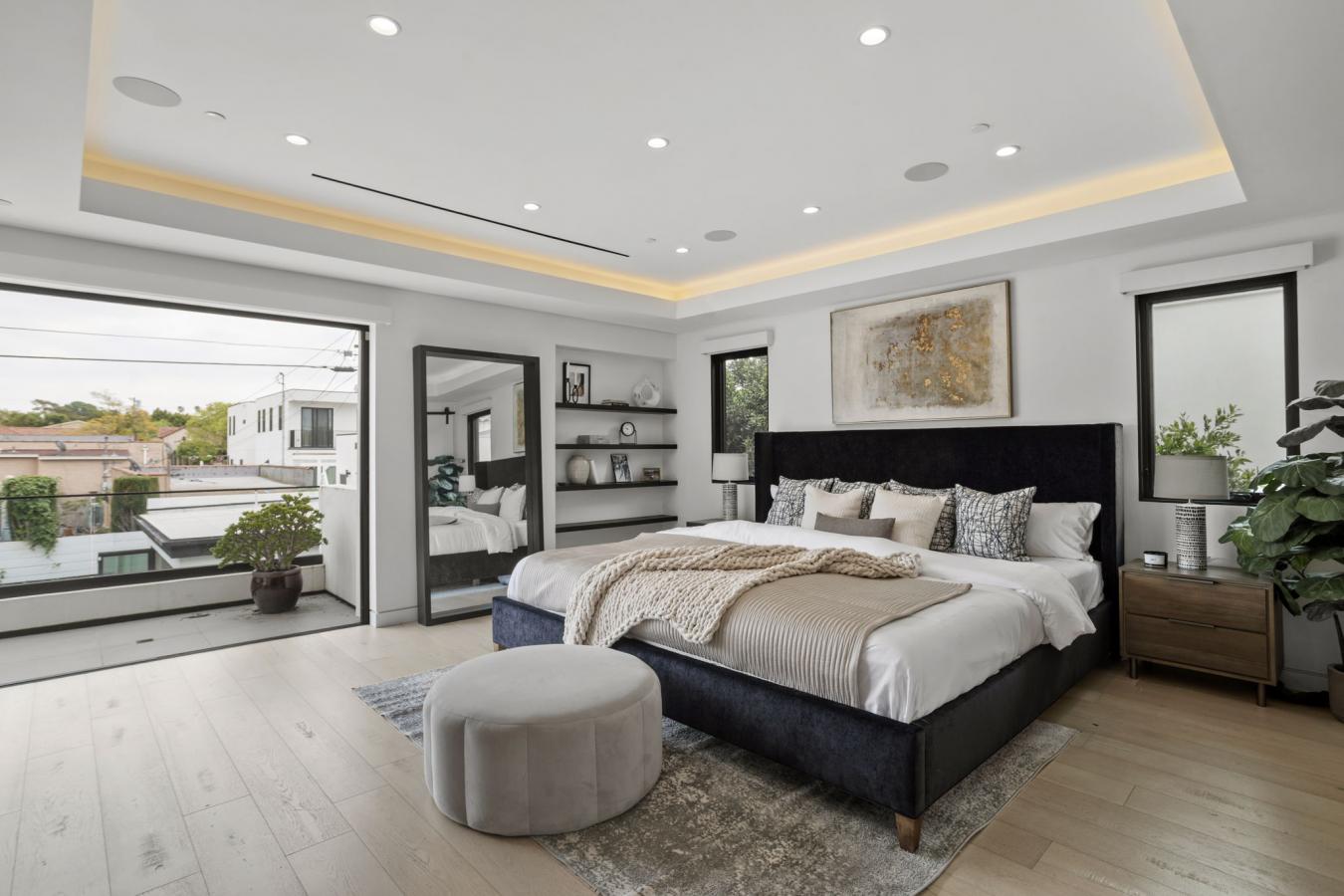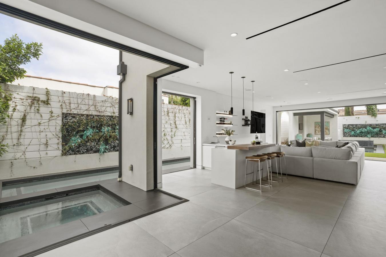 Introducing 538 N. Alta Vista. A quintessential modern masterpiece nestled in the highly coveted area of Beverly Grove. This 5-bedroom, 6-bathroom home exudes opulence throughout its expansive 4700 sq ft main & guest house footprint. Architectural ingenuity was obviously the focus when constructing this villa situated close enough to the Beverly Center & Grove nightlife & dining but insulated & secluded in a proximity that affords the ultimate privacy. Upon entering the dually gated courtyard, you are escorted through an impressive 10-foot pivot glass entry door, which immediately draws your attention to a grand foyer. A convenient 1st-floor spacious in-law junior suite with an en-suite bath ushers you toward a seamless glass floating staircase mimicked by Fleetwood pocket glass sliders throughout the entire home. The open chefs kitchen mixes flawless execution of backlit designer Italian cabinetry and Carrara marble countertops with waterfall edges and Miele Pureline series appliances, including an espresso station, dual ovens, and a blend-in fridge and freezer. A grand, high-ceiling living room with a see-through 6 ft fireplace allows views into the resort-inspired backyard boasting a 70 ft saltwater lap pool featuring 2 Jacuzzis shadowing the perimeter of the villa, dividing space between the grilling lounge and turf areas, the covered cabana, and the ADU/yoga room. Venetian plastered walls allow a soft landing upstairs, where you are met with a huge laundry room, a Williams Rhapsody piano, 3 junior suites & a primary suite, all boasting balconies, chest-high privacy film, and automated window shades. The primary is its own breathtaking sanctuary featuring a linear 4 ft. Heatilator fireplace & AC registers, a wrap-around balcony, & an oversized walk-in closet with jewelry & a meticulous accessory valet. The primary bath features Novello Italian dual vanities, a sumptuous Roma Resin soaking tub, and a seamless walk-in steam shower with dual rainfalls and matte black Graff hardware. Finally, another floating staircase takes you to an unparalleled rooftop deck featuring a wet bar with refrigeration, a gas fire pit, and ample seating for 50, all put to lighting and surround sound conducted by Control 4 with the Hollywood sign as a backdrop. This is not an exaggeration. Find satisfaction and security in this home with a complete 4k live streaming security system, Denon Pro Series surround sound, and complete smart home functionality. Furnishings and artwork pricing available upon request.