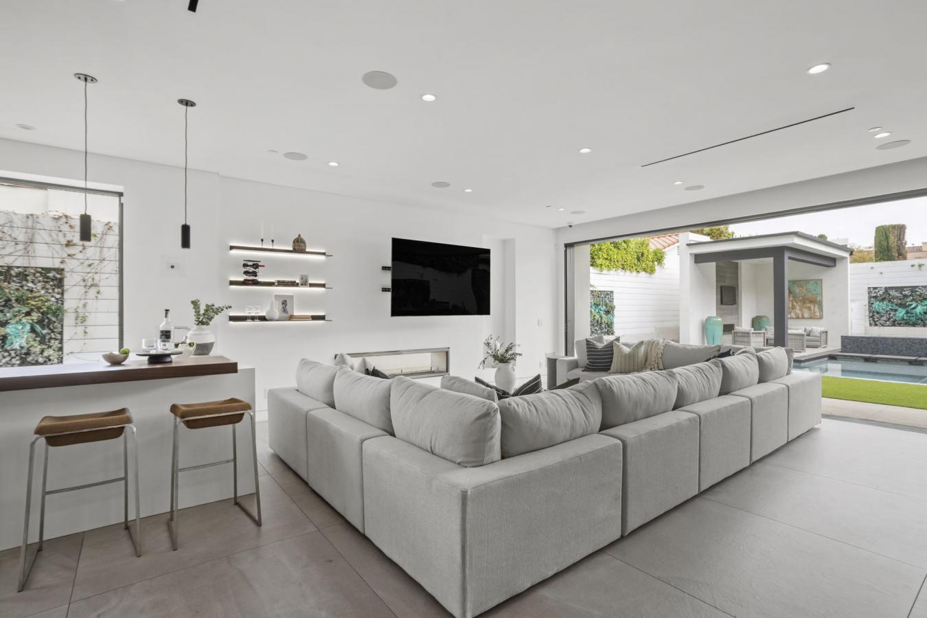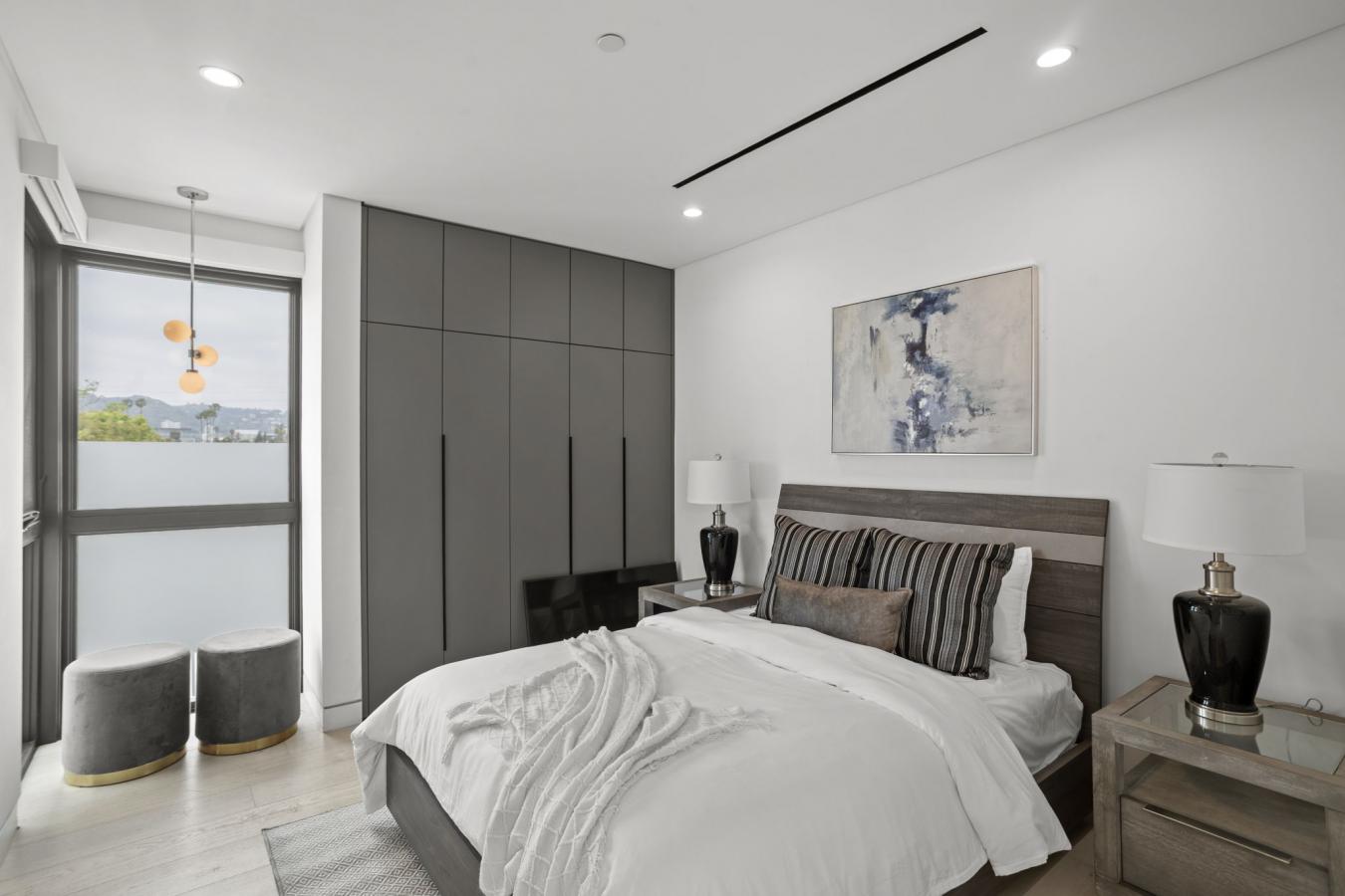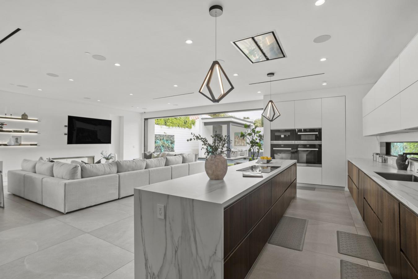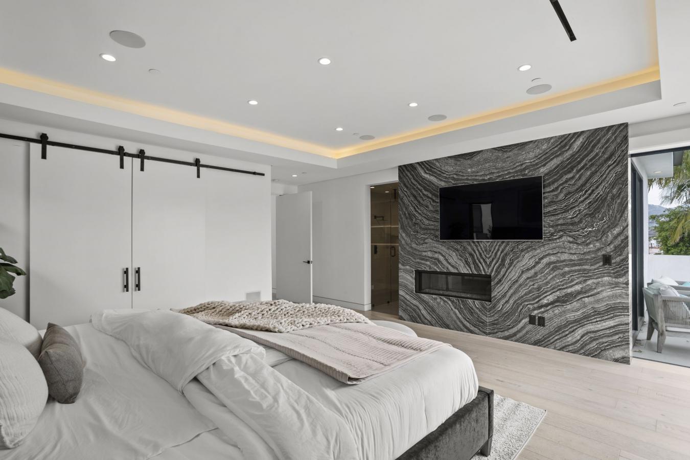 Introducing 538 N. Alta Vista. A quintessential modern masterpiece nestled in the highly coveted area of Beverly Grove. This 5-bedroom, 6-bathroom home exudes opulence throughout its expansive 4700 sq ft main & guest house footprint. Architectural ingenuity was obviously the focus when constructing this villa situated close enough to the Beverly Center & Grove nightlife & dining but insulated & secluded in a proximity that affords the ultimate privacy. Upon entering the dually gated courtyard, you are escorted through an impressive 10-foot pivot glass entry door, which immediately draws your attention to a grand foyer. A convenient 1st-floor spacious in-law junior suite with an en-suite bath ushers you toward a seamless glass floating staircase mimicked by Fleetwood pocket glass sliders throughout the entire home. The open chefs kitchen mixes flawless execution of backlit designer Italian cabinetry and Carrara marble countertops with waterfall edges and Miele Pureline series appliances, including an espresso station, dual ovens, and a blend-in fridge and freezer. A grand, high-ceiling living room with a see-through 6 ft fireplace allows views into the resort-inspired backyard boasting a 70 ft saltwater lap pool featuring 2 Jacuzzis shadowing the perimeter of the villa, dividing space between the grilling lounge and turf areas, the covered cabana, and the ADU/yoga room. Venetian plastered walls allow a soft landing upstairs, where you are met with a huge laundry room, a Williams Rhapsody piano, 3 junior suites & a primary suite, all boasting balconies, chest-high privacy film, and automated window shades. The primary is its own breathtaking sanctuary featuring a linear 4 ft. Heatilator fireplace & AC registers, a wrap-around balcony, & an oversized walk-in closet with jewelry & a meticulous accessory valet. The primary bath features Novello Italian dual vanities, a sumptuous Roma Resin soaking tub, and a seamless walk-in steam shower with dual rainfalls and matte black Graff hardware. Finally, another floating staircase takes you to an unparalleled rooftop deck featuring a wet bar with refrigeration, a gas fire pit, and ample seating for 50, all put to lighting and surround sound conducted by Control 4 with the Hollywood sign as a backdrop. This is not an exaggeration. Find satisfaction and security in this home with a complete 4k live streaming security system, Denon Pro Series surround sound, and complete smart home functionality. Furnishings and artwork pricing available upon request.