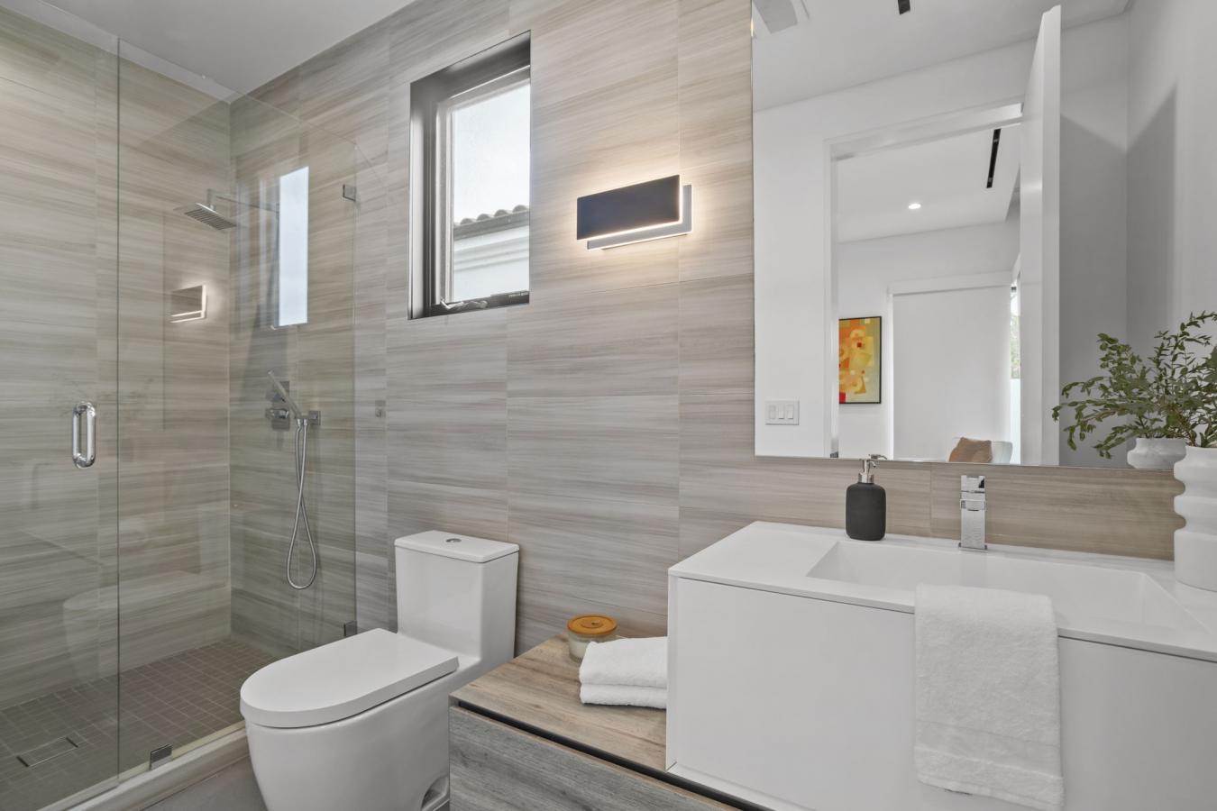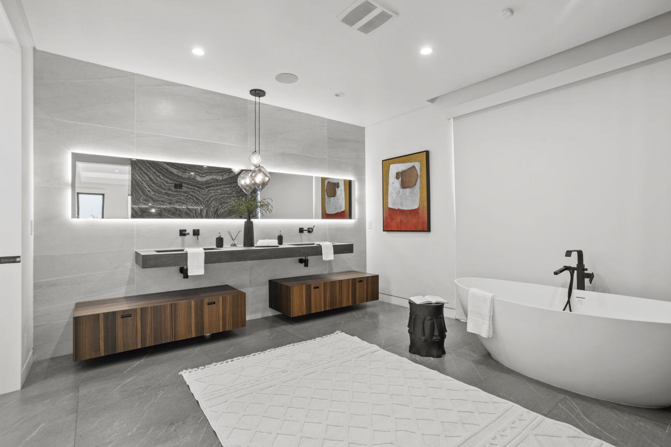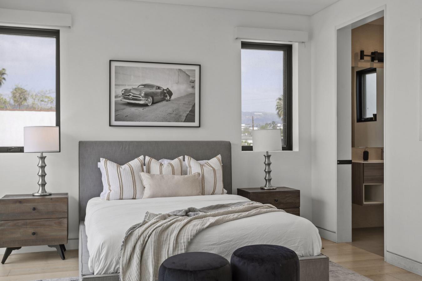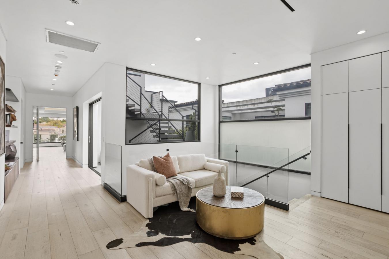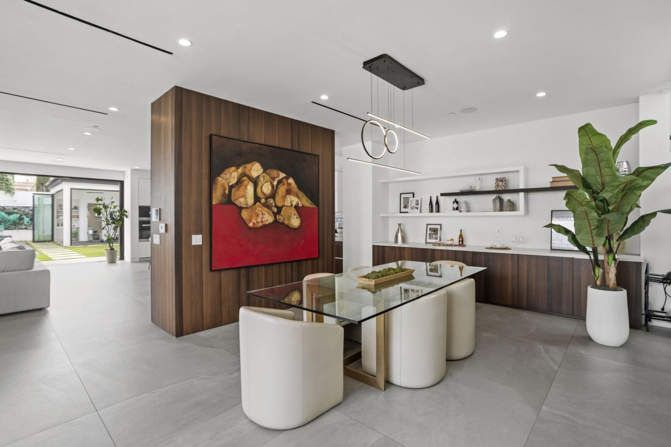 Introducing 538 N. Alta Vista. A quintessential modern masterpiece nestled in the highly coveted area of Beverly Grove. This 5-bedroom, 6-bathroom home exudes opulence throughout its expansive 4700 sq ft main & guest house footprint. Architectural ingenuity was obviously the focus when constructing this villa situated close enough to the Beverly Center & Grove nightlife & dining but insulated & secluded in a proximity that affords the ultimate privacy. Upon entering the dually gated courtyard, you are escorted through an impressive 10-foot pivot glass entry door, which immediately draws your attention to a grand foyer. A convenient 1st-floor spacious in-law junior suite with an en-suite bath ushers you toward a seamless glass floating staircase mimicked by Fleetwood pocket glass sliders throughout the entire home. The open chefs kitchen mixes flawless execution of backlit designer Italian cabinetry and Carrara marble countertops with waterfall edges and Miele Pureline series appliances, including an espresso station, dual ovens, and a blend-in fridge and freezer. A grand, high-ceiling living room with a see-through 6 ft fireplace allows views into the resort-inspired backyard boasting a 70 ft saltwater lap pool featuring 2 Jacuzzis shadowing the perimeter of the villa, dividing space between the grilling lounge and turf areas, the covered cabana, and the ADU/yoga room. Venetian plastered walls allow a soft landing upstairs, where you are met with a huge laundry room, a Williams Rhapsody piano, 3 junior suites & a primary suite, all boasting balconies, chest-high privacy film, and automated window shades. The primary is its own breathtaking sanctuary featuring a linear 4 ft. Heatilator fireplace & AC registers, a wrap-around balcony, & an oversized walk-in closet with jewelry & a meticulous accessory valet. The primary bath features Novello Italian dual vanities, a sumptuous Roma Resin soaking tub, and a seamless walk-in steam shower with dual rainfalls and matte black Graff hardware. Finally, another floating staircase takes you to an unparalleled rooftop deck featuring a wet bar with refrigeration, a gas fire pit, and ample seating for 50, all put to lighting and surround sound conducted by Control 4 with the Hollywood sign as a backdrop. This is not an exaggeration. Find satisfaction and security in this home with a complete 4k live streaming security system, Denon Pro Series surround sound, and complete smart home functionality. Furnishings and artwork pricing available upon request.
