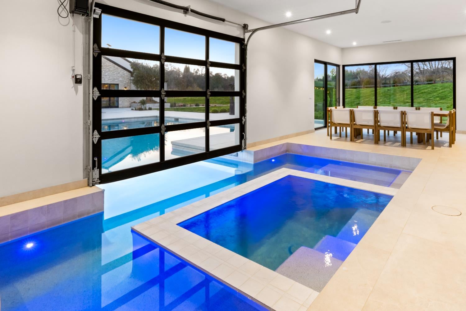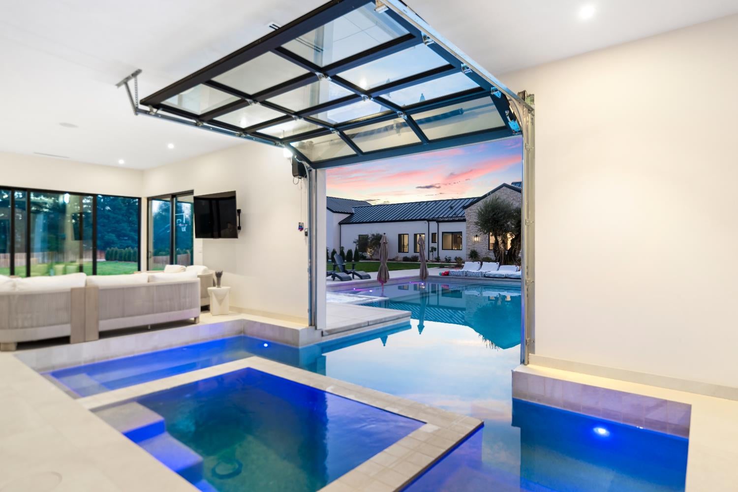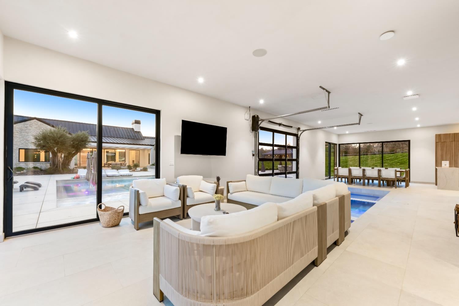 Welcome to an exquisite modern farmhouse in Newcastle, set on 5.9 acres and completed in 2025 with high-end finishes that redefine luxury. This impressive property offers 4,854 square feet of living space, featuring a gourmet kitchen equipped with a Wolf and Subzero appliance package and Restoration Hardware light fixtures. The separate 1,500-square-foot pool house includes a full bathroom, mini kitchen, penny tile steam room, Dry sauna, and entertainment area, all surrounding a stunning 45 x 30 pool with an integrated spa and cold plunge which flow into the pool house. Additional highlights include a remarkable 2,588-square-foot garage that accommodates 8 vehicles, 70 foot deep RV parking in Garage, a striking 41-foot pocket door in the great room and a 32 foot one piece shade for patio, a whole-house water filtration system, and 18 slabs of exquisite Taj Mahal stone throughout. Experience the perfect blend of modern luxury and serene countryside living in this exceptional Modern farmhouse truly a lifestyle opportunity not to be missed! Please review the spec sheet attached