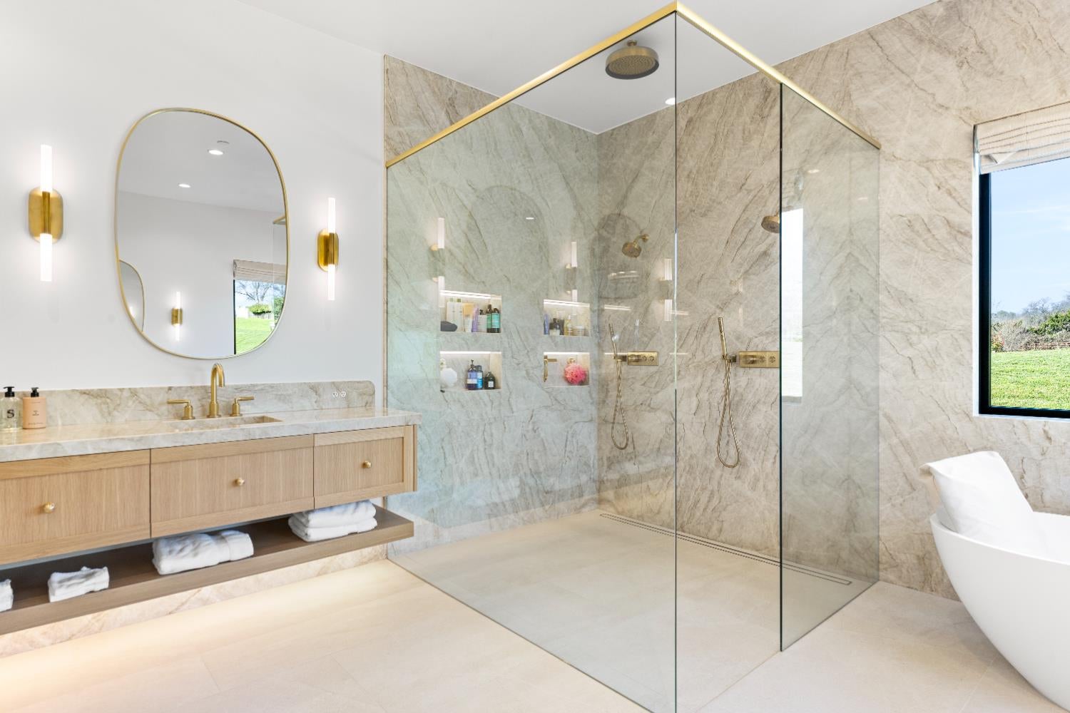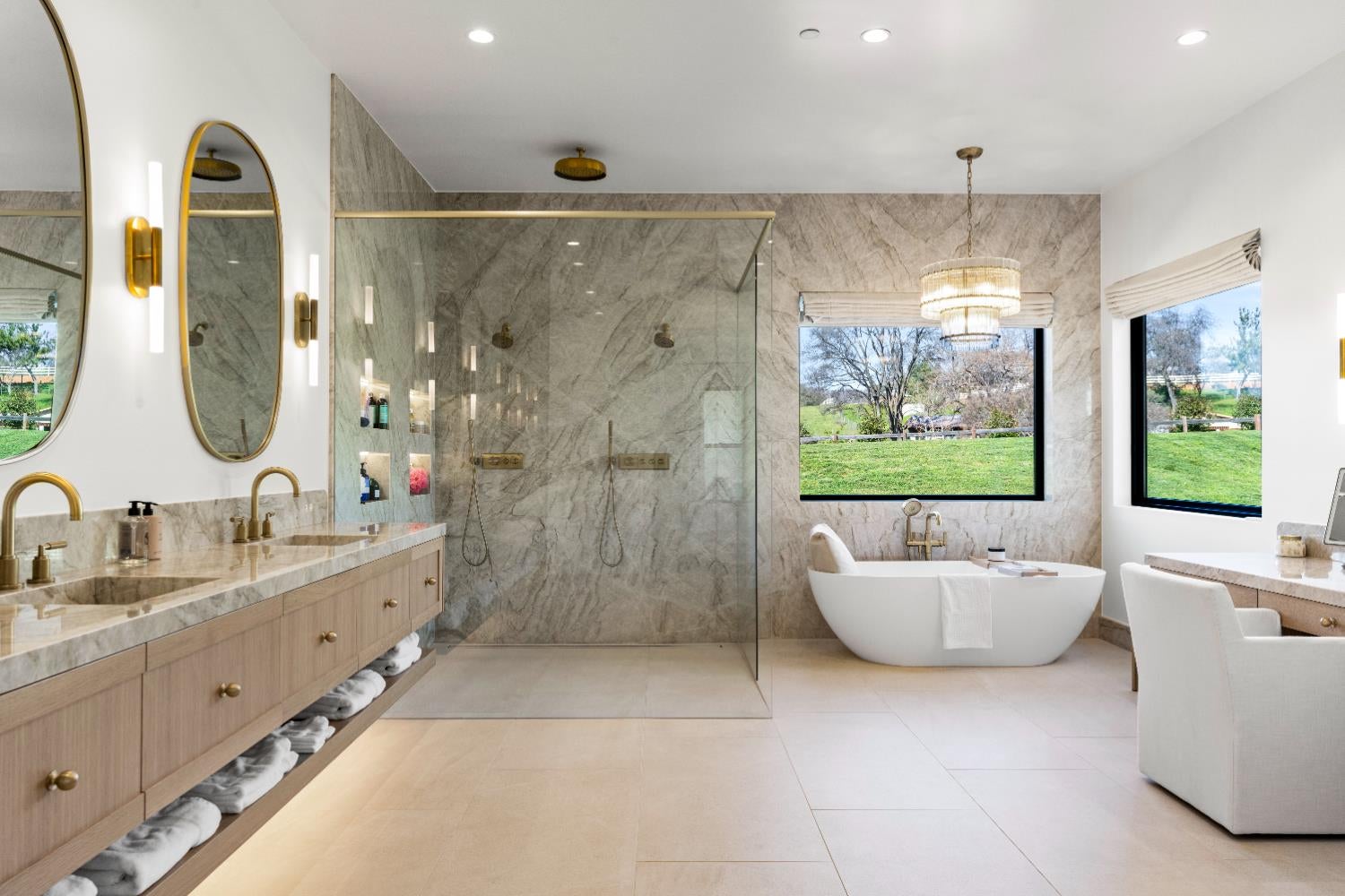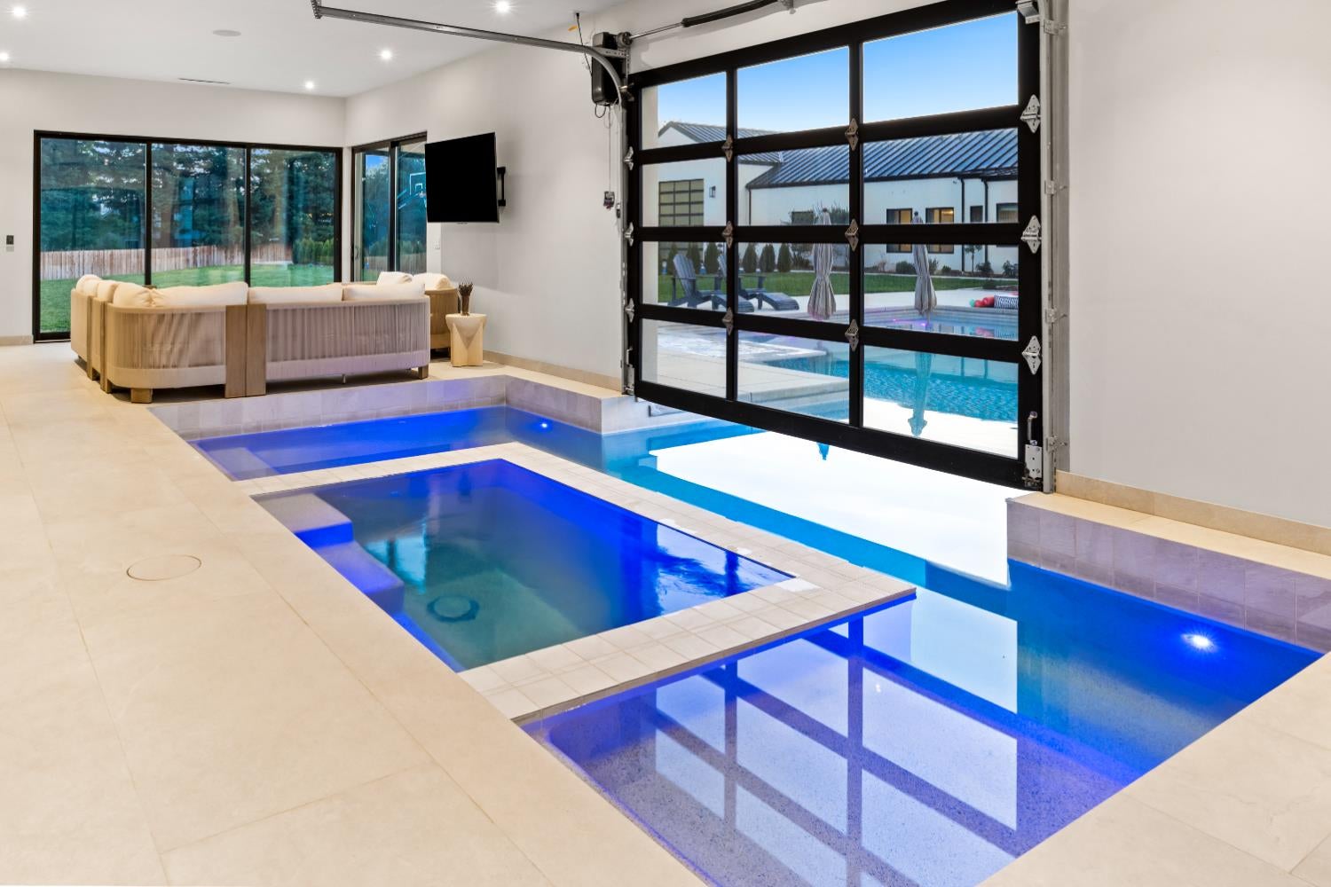 Welcome to an exquisite modern farmhouse in Newcastle, set on 5.9 acres and completed in 2025 with high-end finishes that redefine luxury. This impressive property offers 4,854 square feet of living space, featuring a gourmet kitchen equipped with a Wolf and Subzero appliance package and Restoration Hardware light fixtures. The separate 1,500-square-foot pool house includes a full bathroom, mini kitchen, penny tile steam room, Dry sauna, and entertainment area, all surrounding a stunning 45 x 30 pool with an integrated spa and cold plunge which flow into the pool house. Additional highlights include a remarkable 2,588-square-foot garage that accommodates 8 vehicles, 70 foot deep RV parking in Garage, a striking 41-foot pocket door in the great room and a 32 foot one piece shade for patio, a whole-house water filtration system, and 18 slabs of exquisite Taj Mahal stone throughout. Experience the perfect blend of modern luxury and serene countryside living in this exceptional Modern farmhouse truly a lifestyle opportunity not to be missed! Please review the spec sheet attached