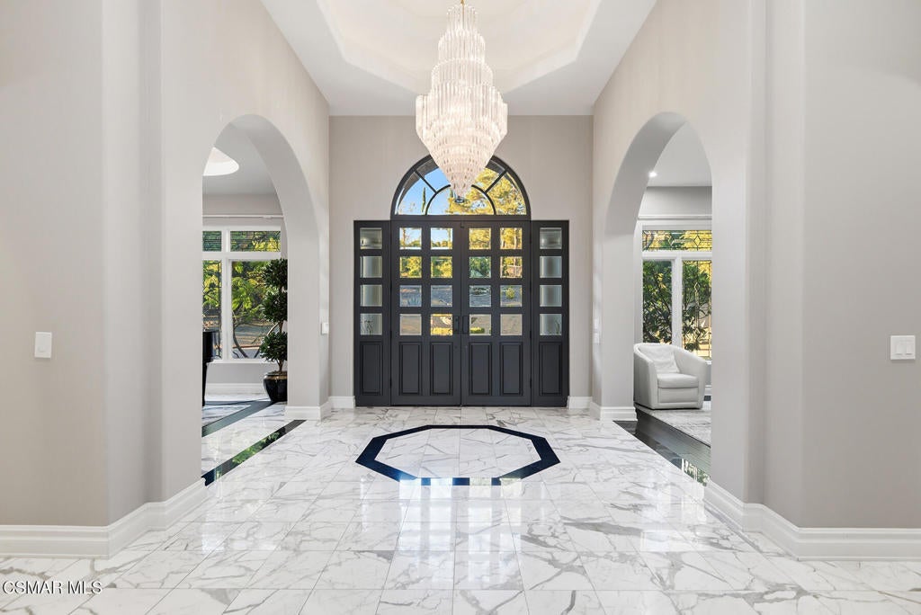 Magnificent SINGLE STORY modern Mediterranean in the exclusive High County community of upper North Ranch! Ideally located behind private gates and down a long driveway is this extensively re-imagined custom estate. Set on a sensational and all usable 2.64 acre lot, is this one of a kind property with complete privacy with a true compound feel! Interior features include a recently remodeled kitchen, new marble and wood floors, custom detailed soaring ceilings and much more. There are 5 bedrooms and a separate office/library. The resort quality grounds boast a remodeled pool, barbecue center, firepit, slatted wood covered patio, tremendous lower level basketball/sports court and an abundance of lush manicured lawns. Among the homes many attributes are a four car garage, large circular motor court, 3 fireplaces and mountain views. A unique single story custom on a tremendous estate size lot!