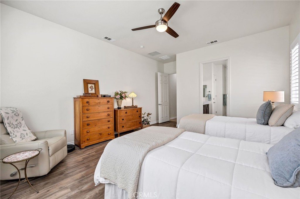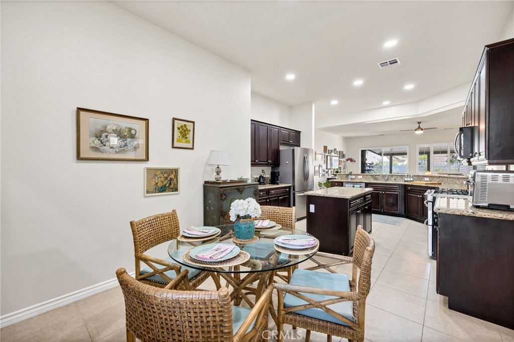 Welcome Home!!! Wonderful flexible floor plan, eating areas in the kitchen and Dining room, cozy fireplace. This home is ready for you! Big Kitchen and open to the living room. Great for entertaining and hosting guests. Dial in your comfort with whole house fans throughout. Spotless home on very quiet senior cul-de-sac. Plantings are easy care and healthy with full irrigation . Move in and live best retirement life! Terrific amenities at your Spacious state of the art clubhouse. Conveniently located for shopping. 55 plus please