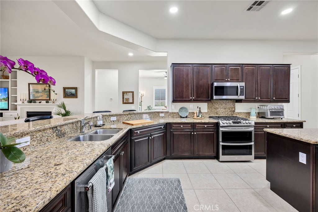 Welcome Home!!! Wonderful flexible floor plan, eating areas in the kitchen and Dining room, cozy fireplace. This home is ready for you! Big Kitchen and open to the living room. Great for entertaining and hosting guests. Dial in your comfort with whole house fans throughout. Spotless home on very quiet senior cul-de-sac. Plantings are easy care and healthy with full irrigation .