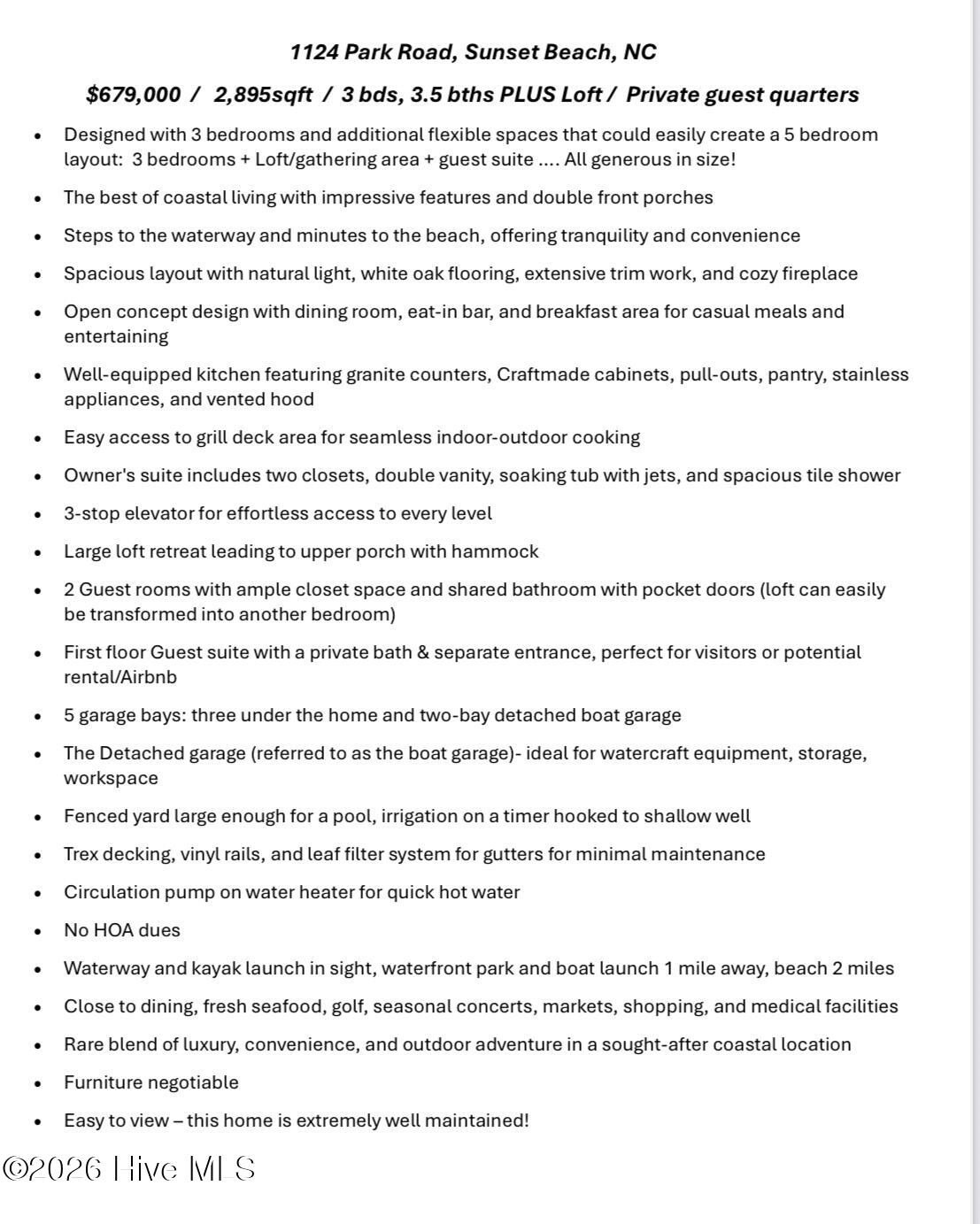 Hwy. 179 (Beach Drive) to Park Road toward the ICW, home on the right.