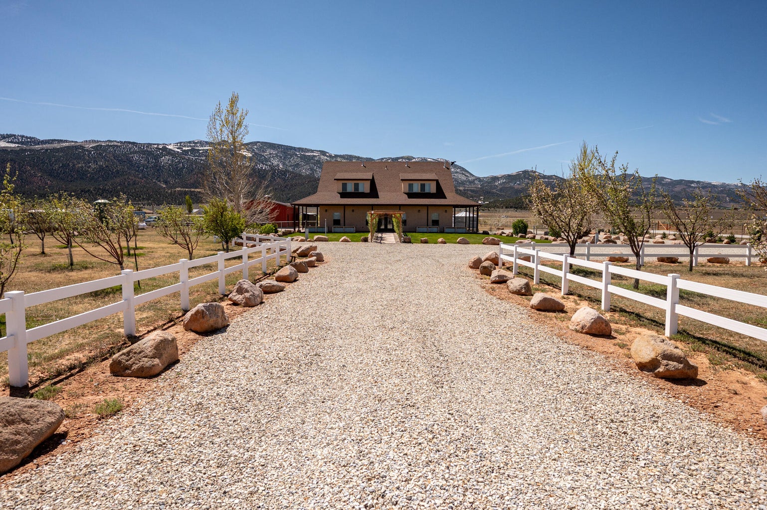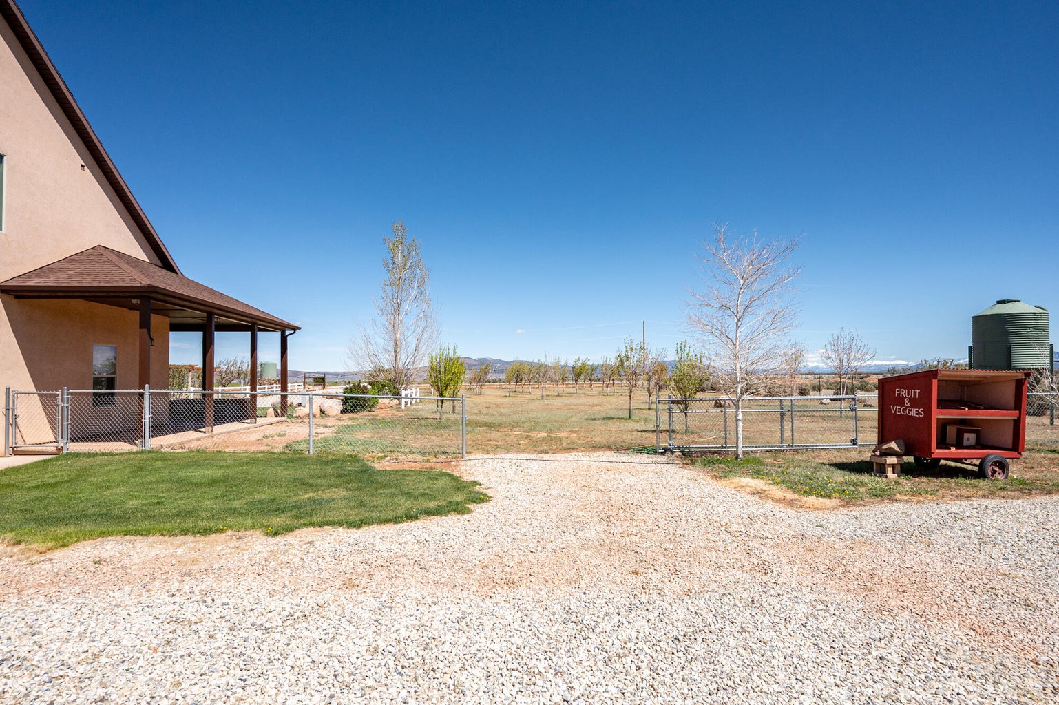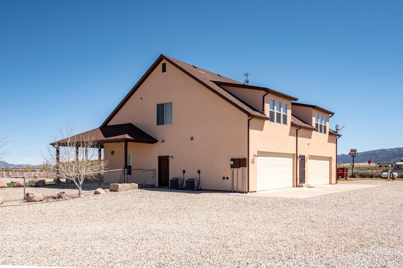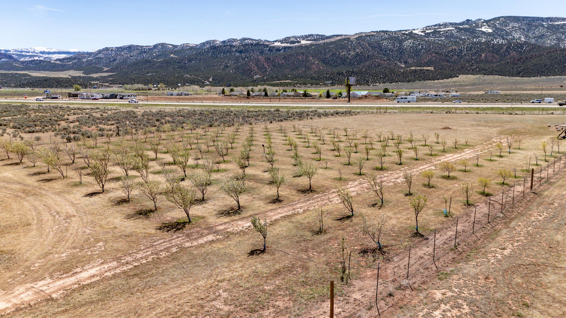 PAROWAN GAP FARM, 5.24 Acres, wraparound porch. 2 separate living quarters upstairs. Ea unit has 1 bedroom, full bath, living, kitchen, dining area. Main floor has open living area, 1/2 bathroom & laundry room. Property has 230 fruit trees, cottonwood & pine all on drip irrigation. Extra water spigots on prop. Irrig grassed front yd w/walkway & Espalier trellis. 7 ac ft water rights (2 w/1917 priority date, 5 w/1954 priority date). 40 X 30 barn w/cement floor & 1 man door & two 10 high drive thru doors. Completely fenced (6 high) w/4 gates. Decorative vinyl driveway rail fencing. 4 separate 50 amp RV electric svcs on lot. 2 RV pedestals in front of home, 1 in barn w/ability to convert to 220V, 1 in back w/access to sewer & water. All driveways covered in gravel, grain silo & greenhouse. Features forced air propane heat & A/C. Ceiling fans in all rooms. 4 car garage apx 1200 sq ft. Both 2 car garages insulated w/heaters in ea. Home has porch lighting, flood lights on each side of garages in back & on barn. Fence w/gates on each side of home that divides lot into front & back area. 1 upstairs unit with oven/range other without. Lots of storage space with walk-in closets and large pantry space.