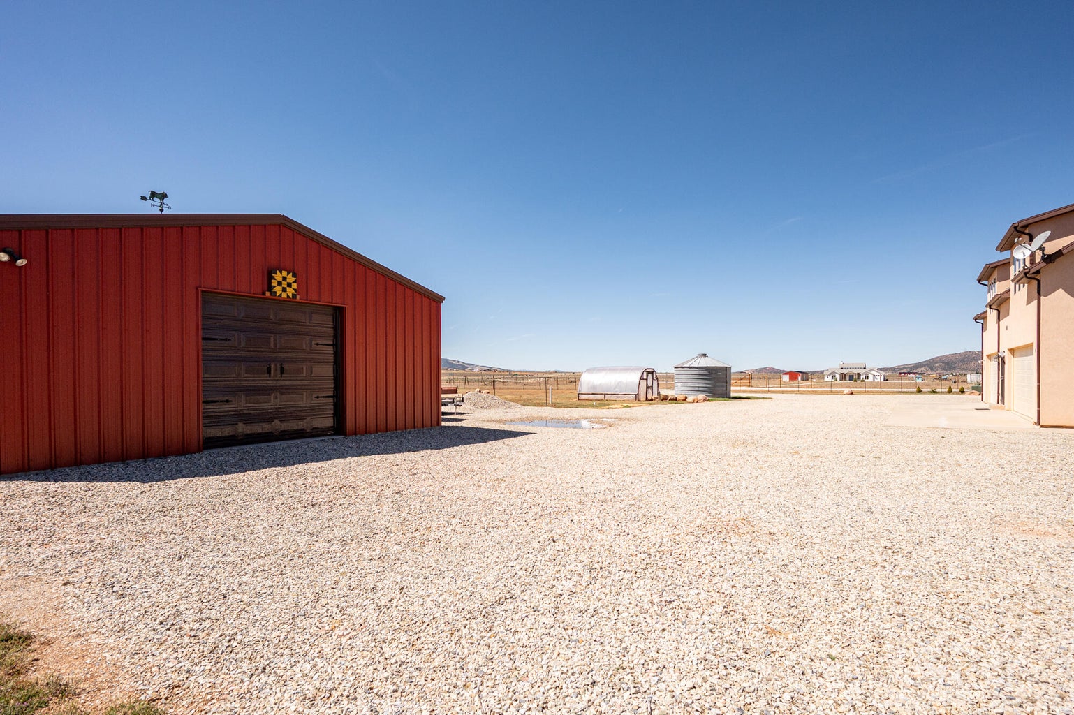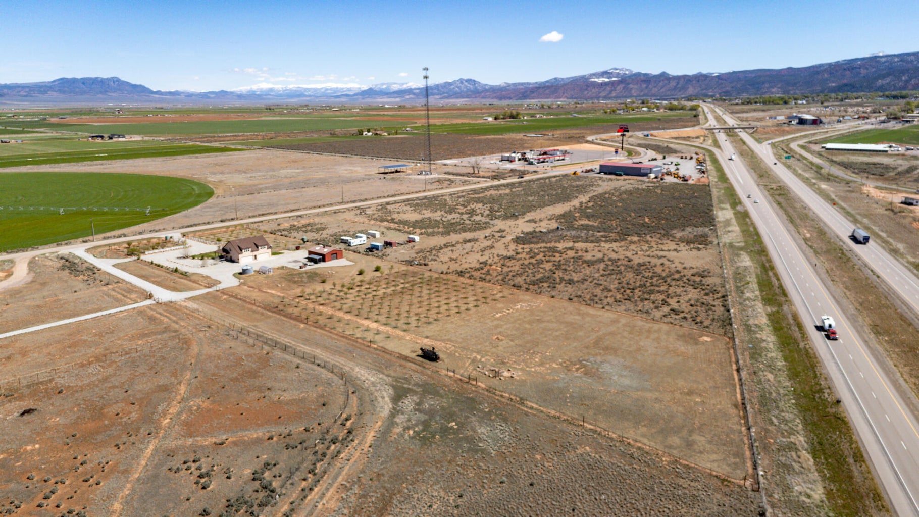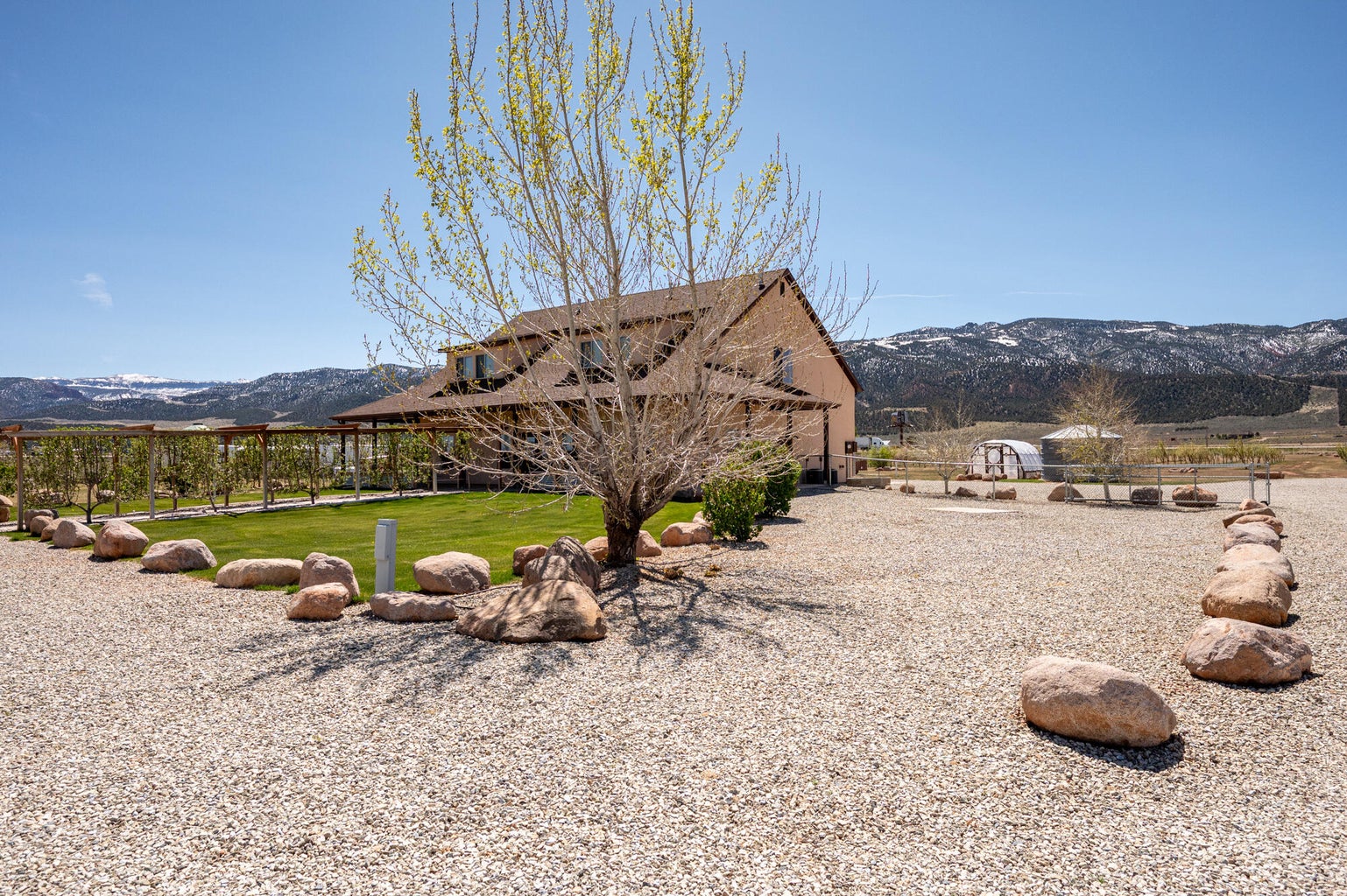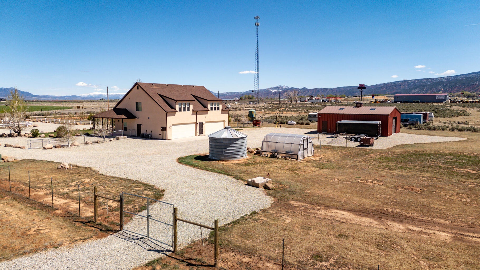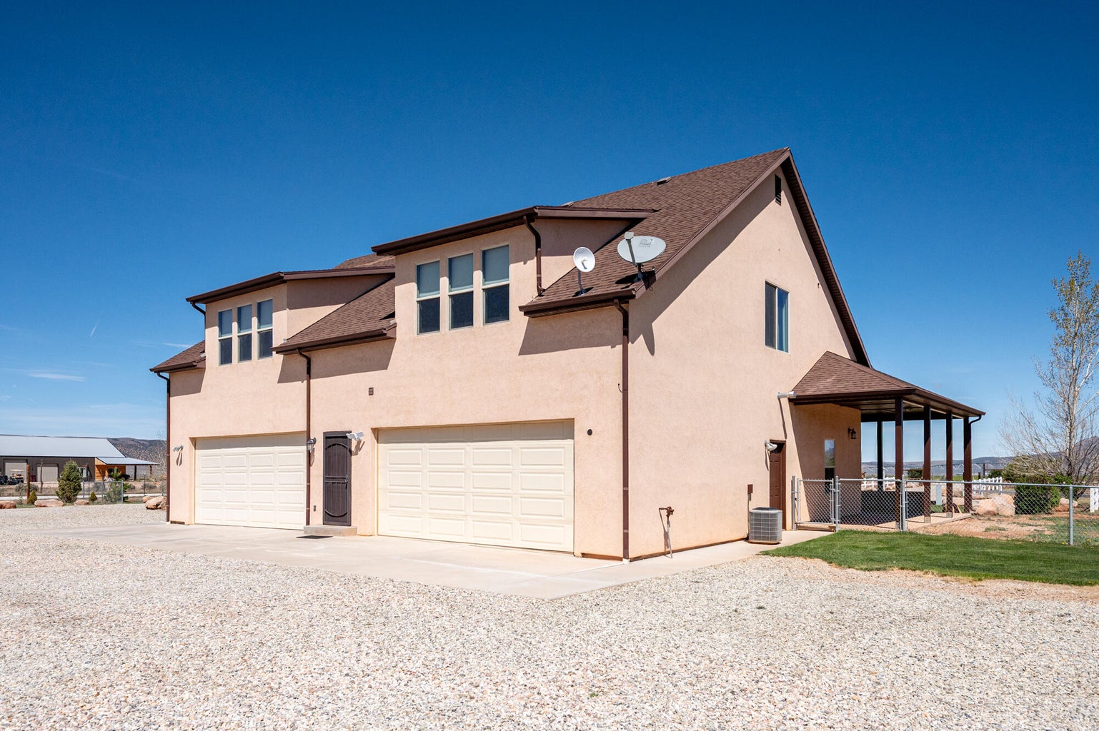 PAROWAN GAP FARM, 5.24 Acres, wraparound porch. 2 separate living quarters upstairs. Ea unit has 1 bedroom, full bath, living, kitchen, dining area. Main floor has open living area, 1/2 bathroom & laundry room. Property has 230 fruit trees, cottonwood & pine all on drip irrigation. Extra water spigots on prop. Irrig grassed front yd w/walkway & Espalier trellis. 7 ac ft water rights (2 w/1917 priority date, 5 w/1954 priority date). 40 X 30 barn w/cement floor & 1 man door & two 10 high drive thru doors. Completely fenced (6 high) w/4 gates. Decorative vinyl driveway rail fencing. 4 separate 50 amp RV electric svcs on lot. 2 RV pedestals in front of home, 1 in barn w/ability to convert to 220V, 1 in back w/access to sewer & water. All driveways covered in gravel, grain silo & greenhouse. Features forced air propane heat & A/C. Ceiling fans in all rooms. 4 car garage apx 1200 sq ft. Both 2 car garages insulated w/heaters in ea. Home has porch lighting, flood lights on each side of garages in back & on barn. Fence w/gates on each side of home that divides lot into front & back area. 1 upstairs unit with oven/range other without. Lots of storage space with walk-in closets and large pantry space.